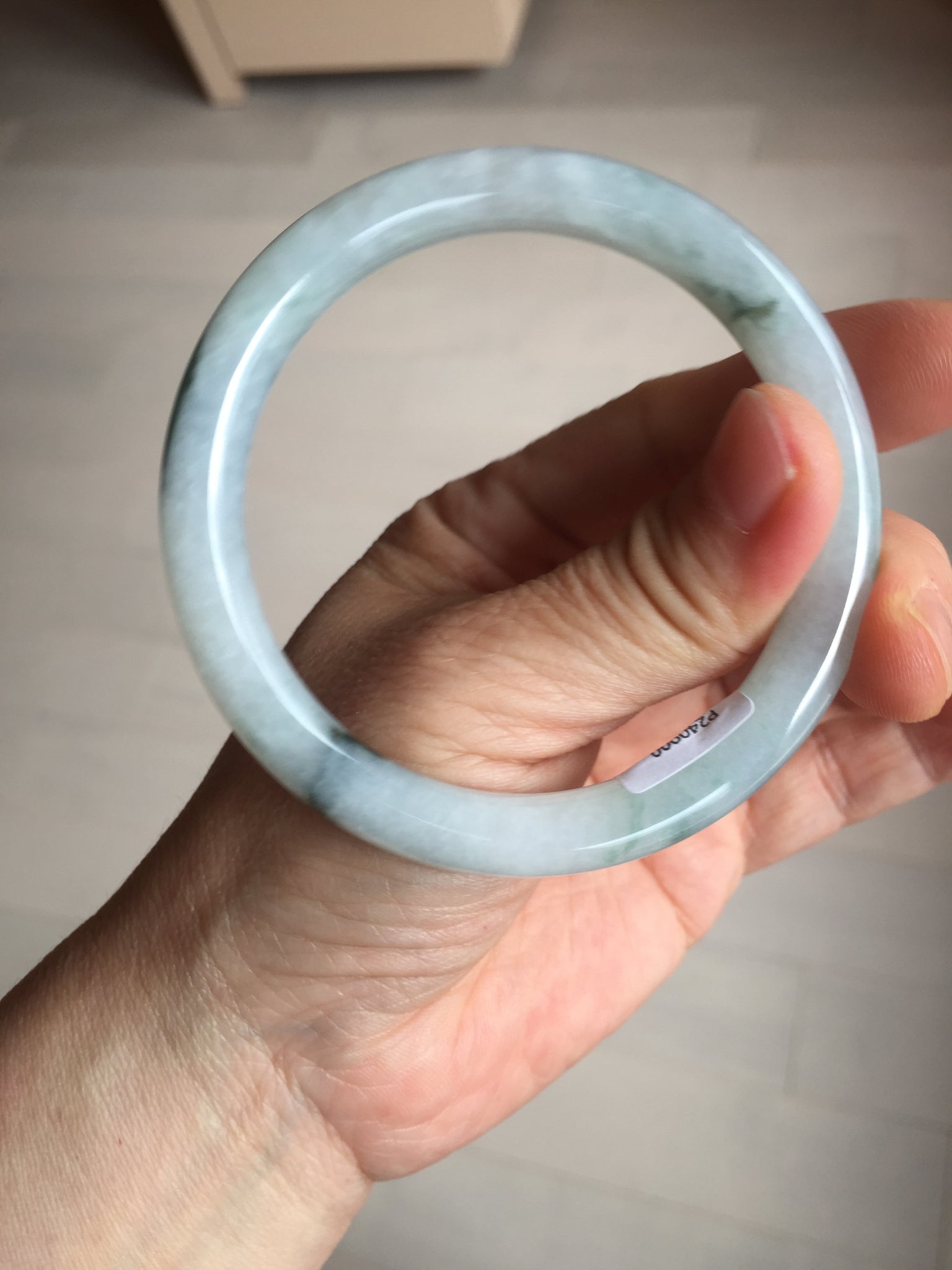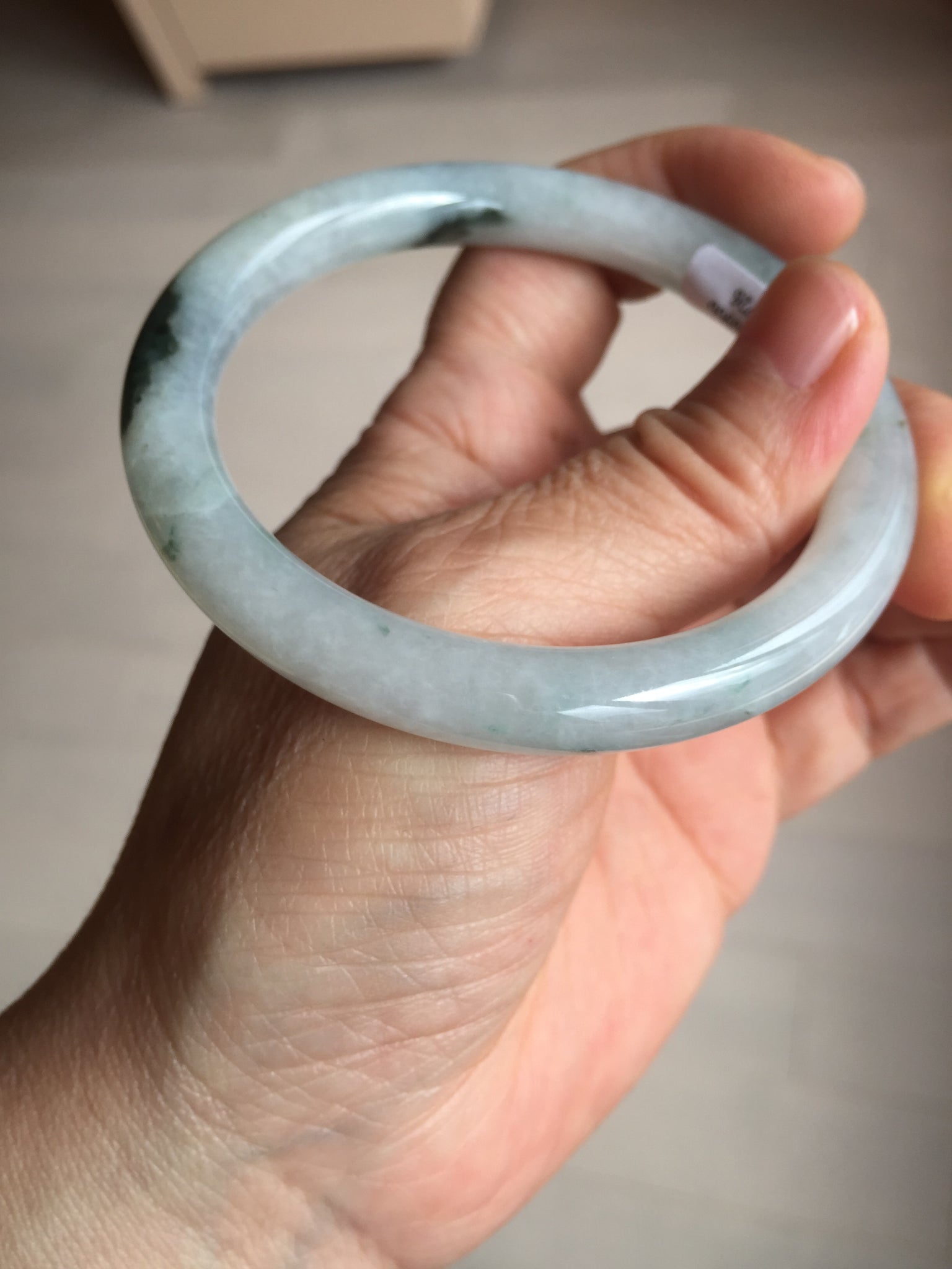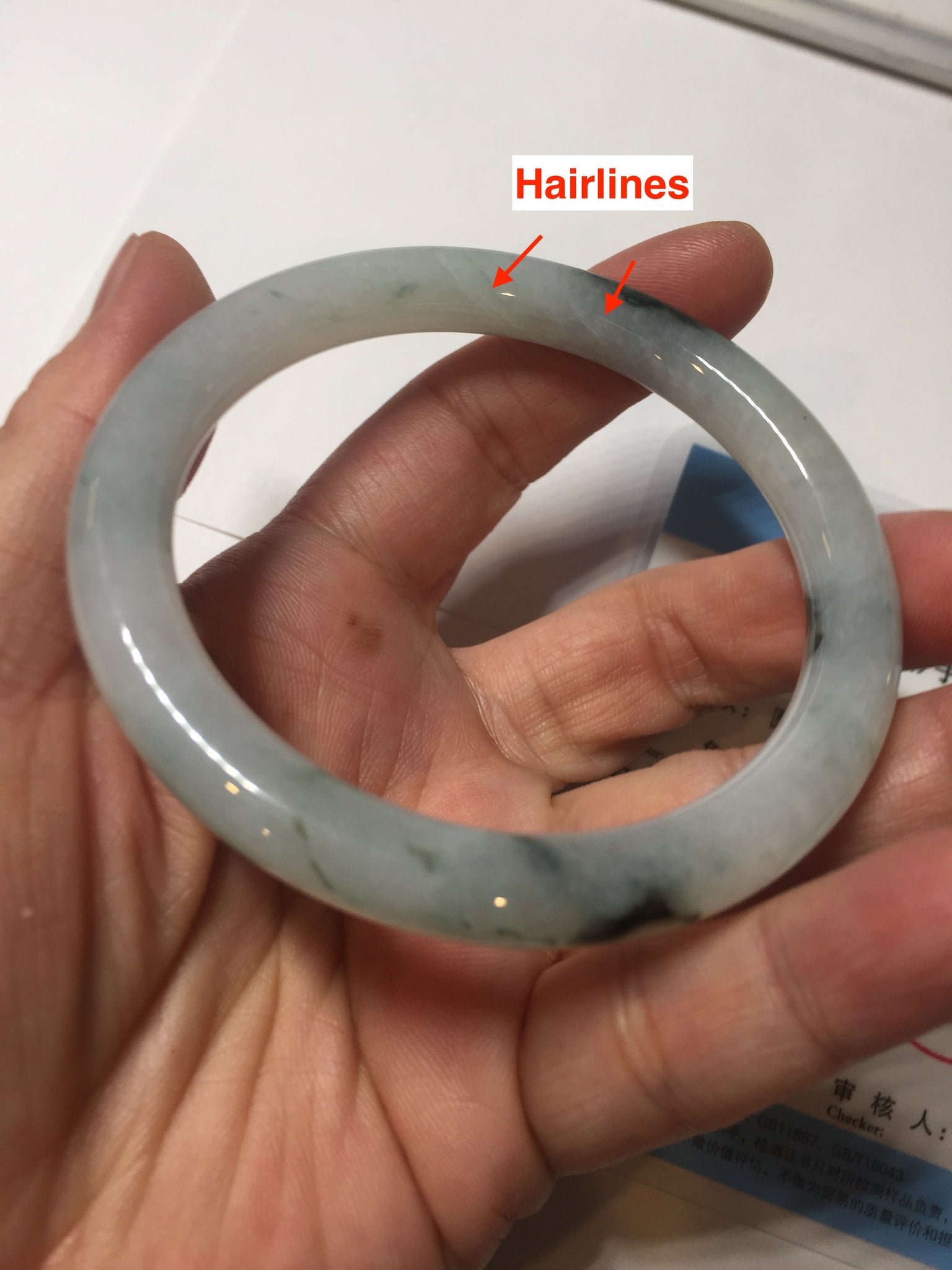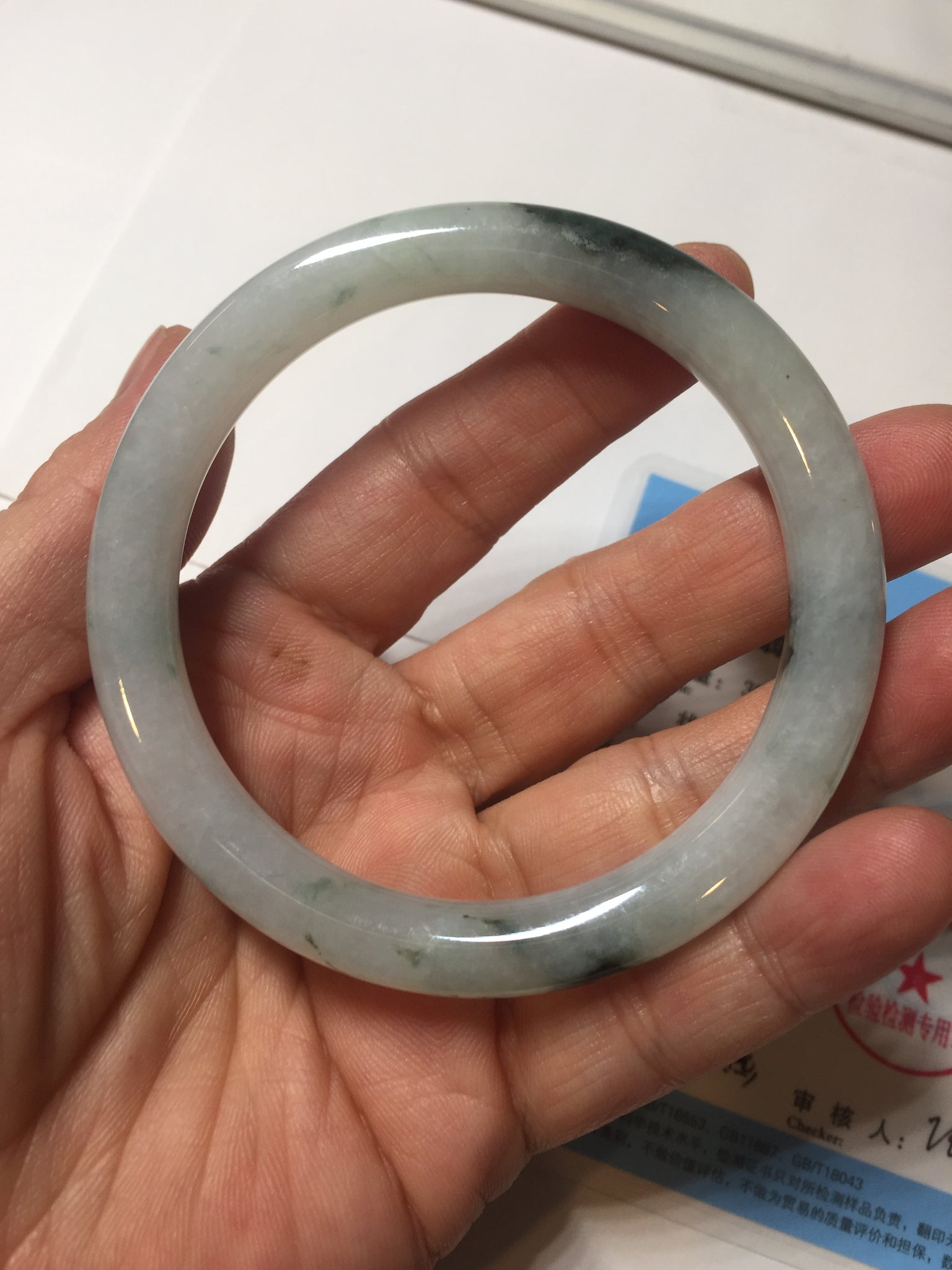 57.5mm Certified Type A 100% Natural icy watery light green with green floating flowers round cut Jadeite Jade bangle AM95-2726