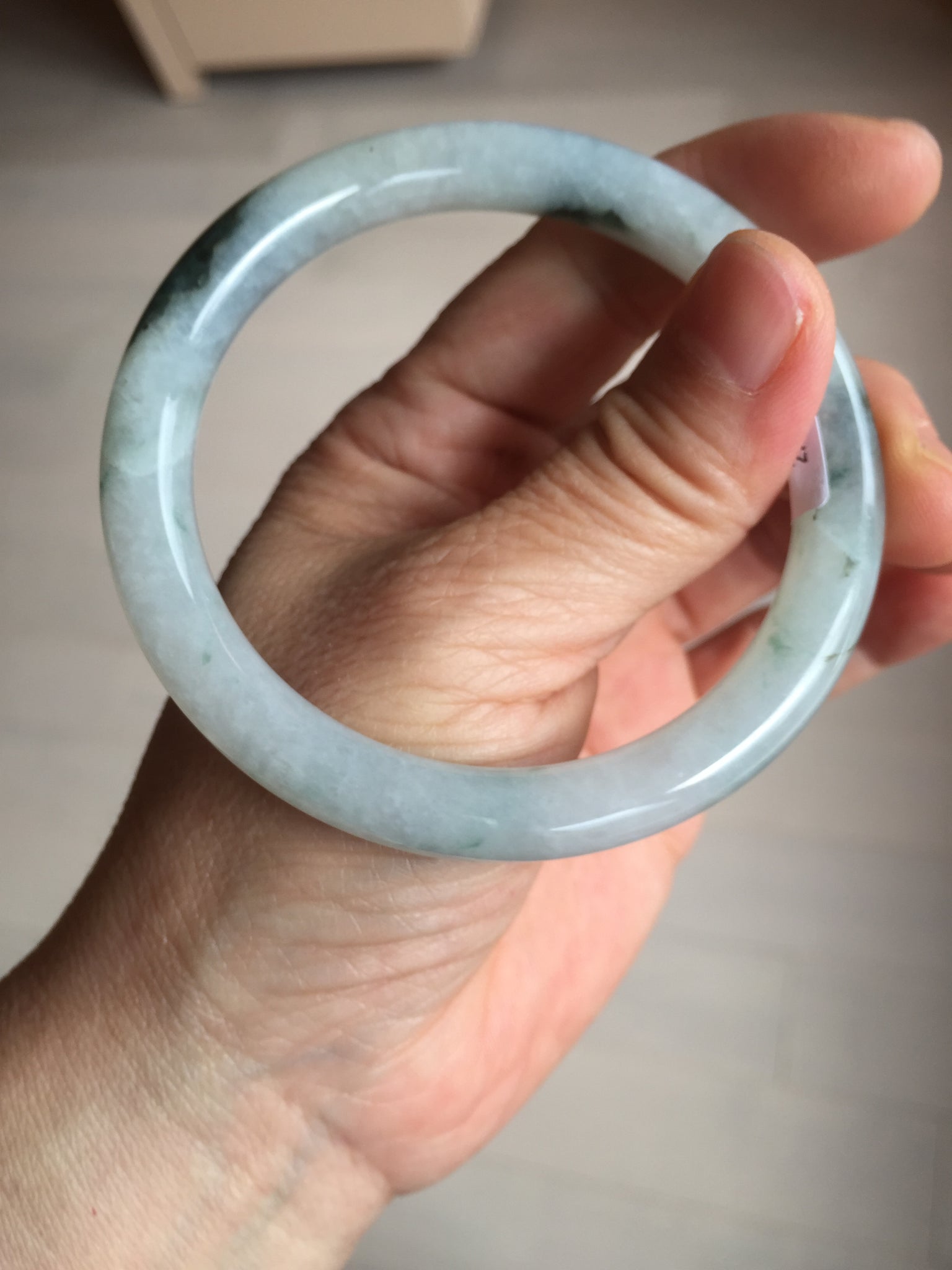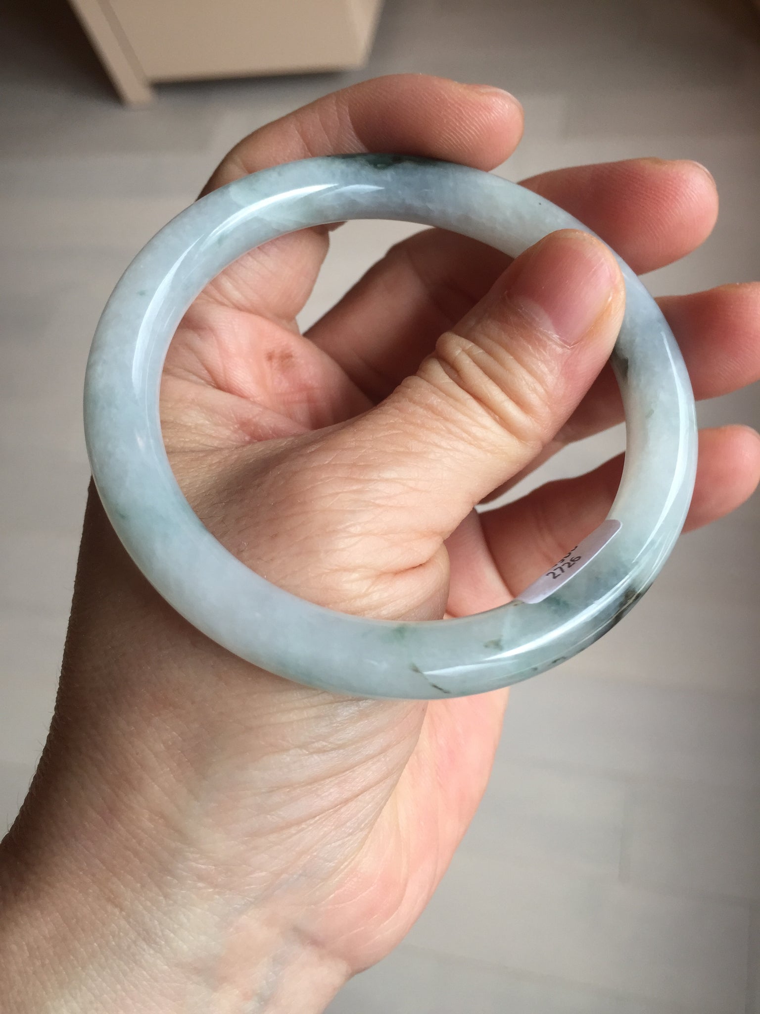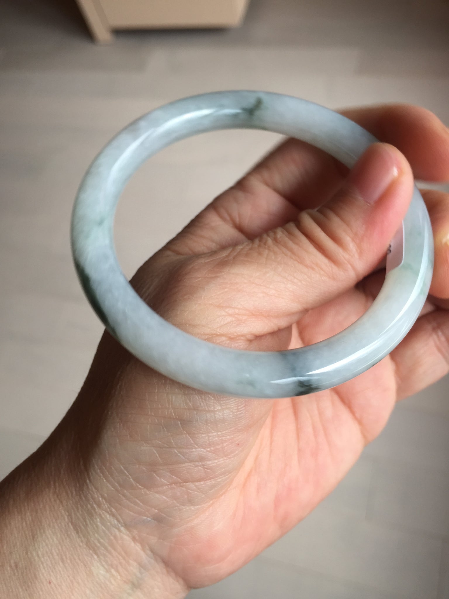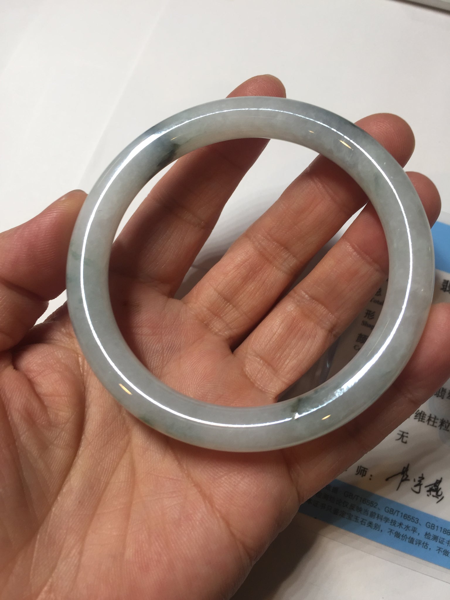 57.5mm Certified Type A 100% Natural icy watery light green with green floating flowers round cut Jadeite Jade bangle AM95-2726