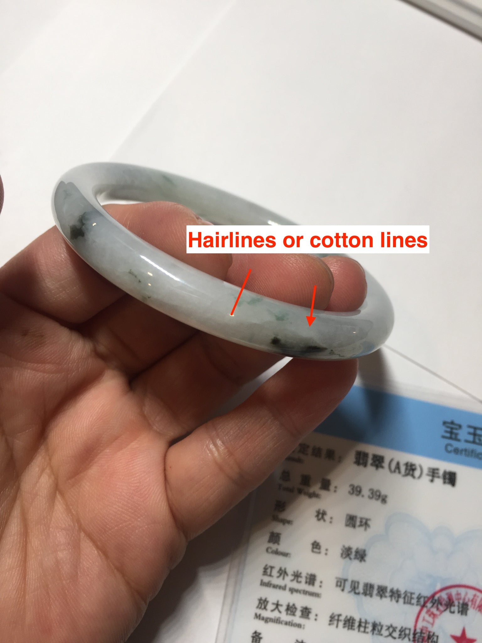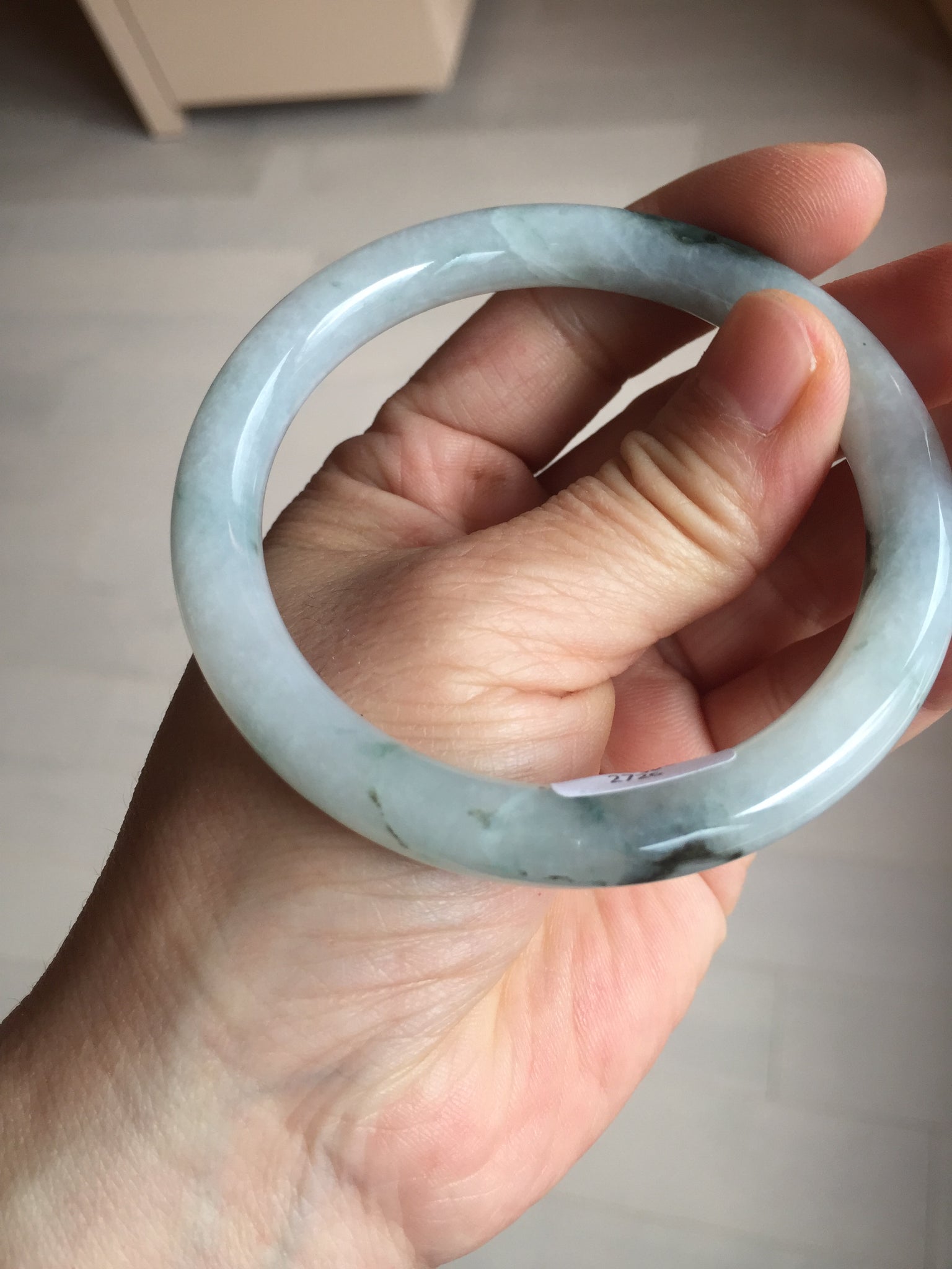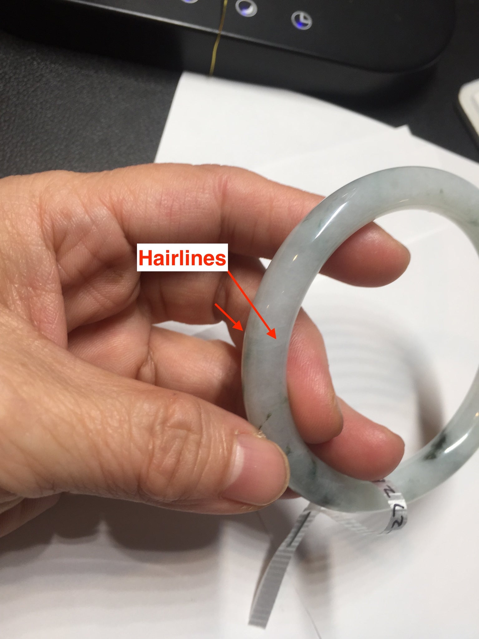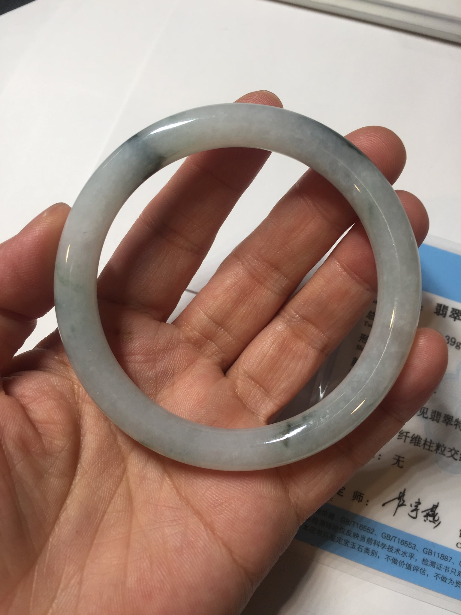 57.5mm Certified Type A 100% Natural icy watery light green with green floating flowers round cut Jadeite Jade bangle AM95-2726