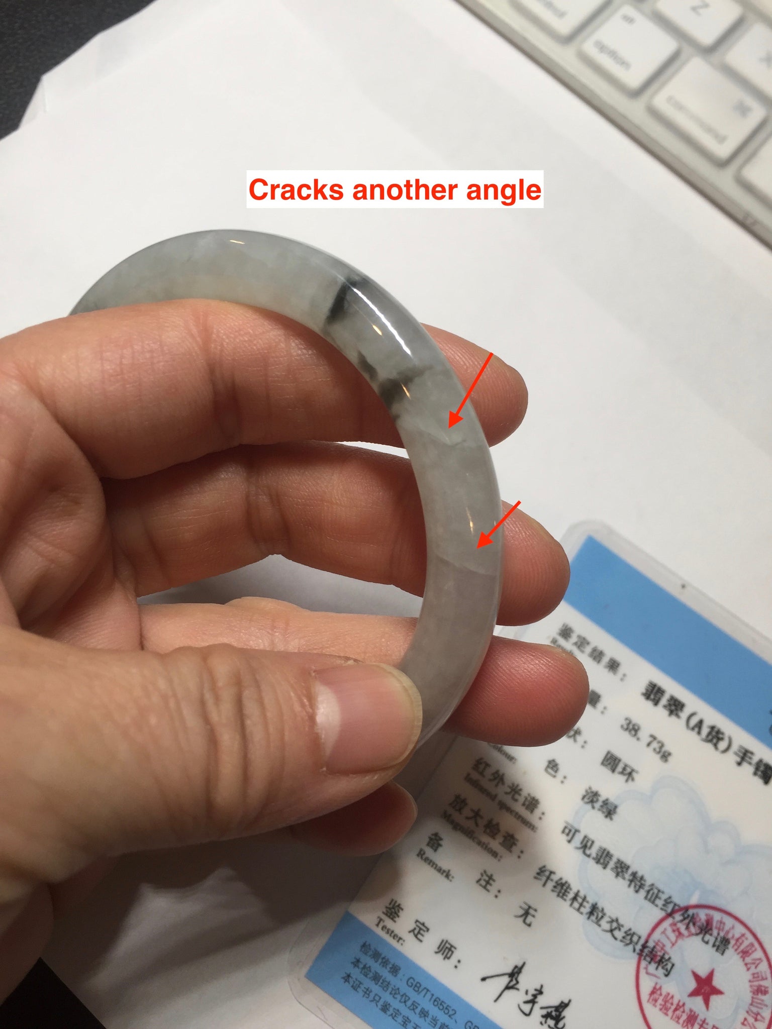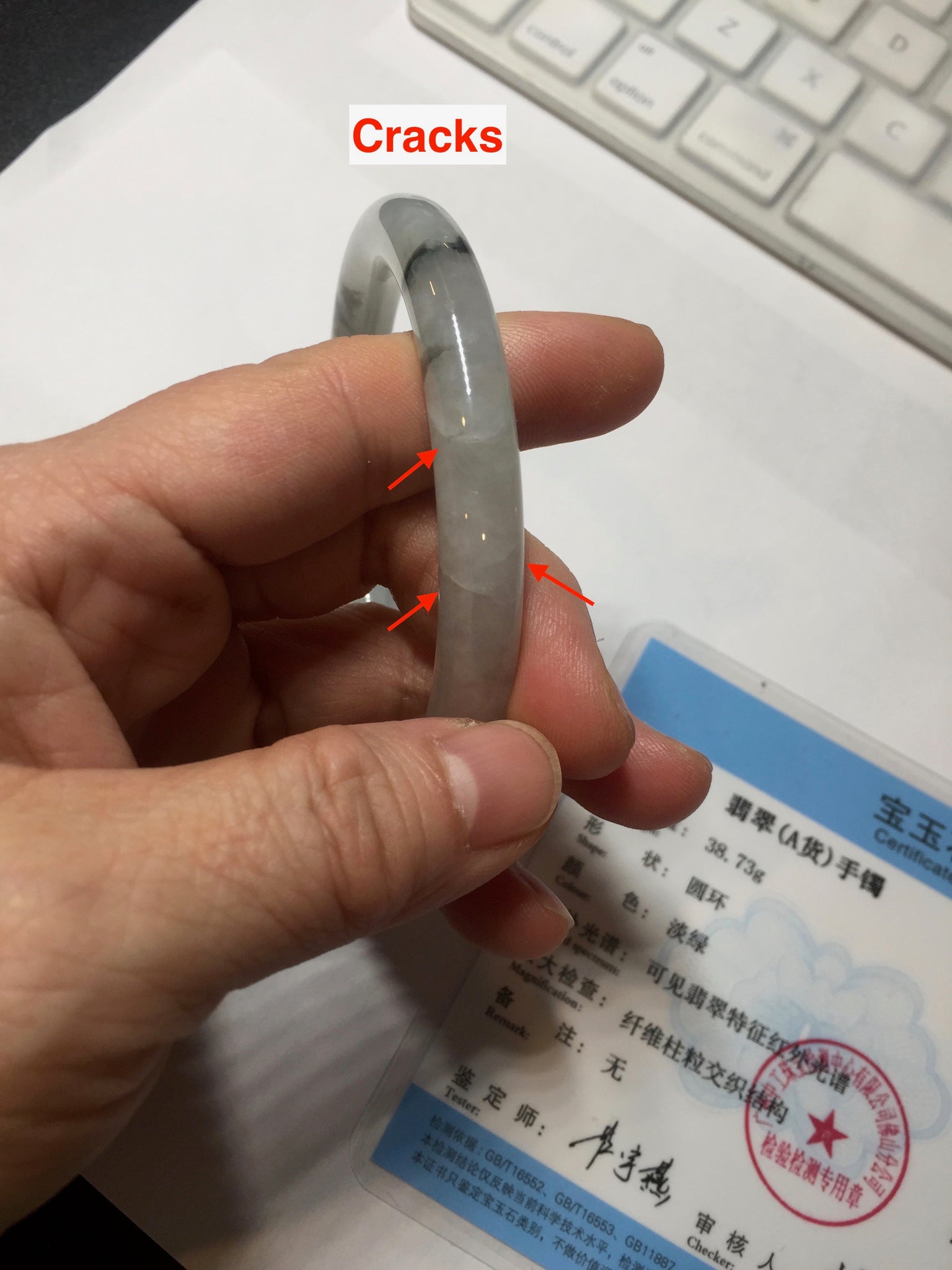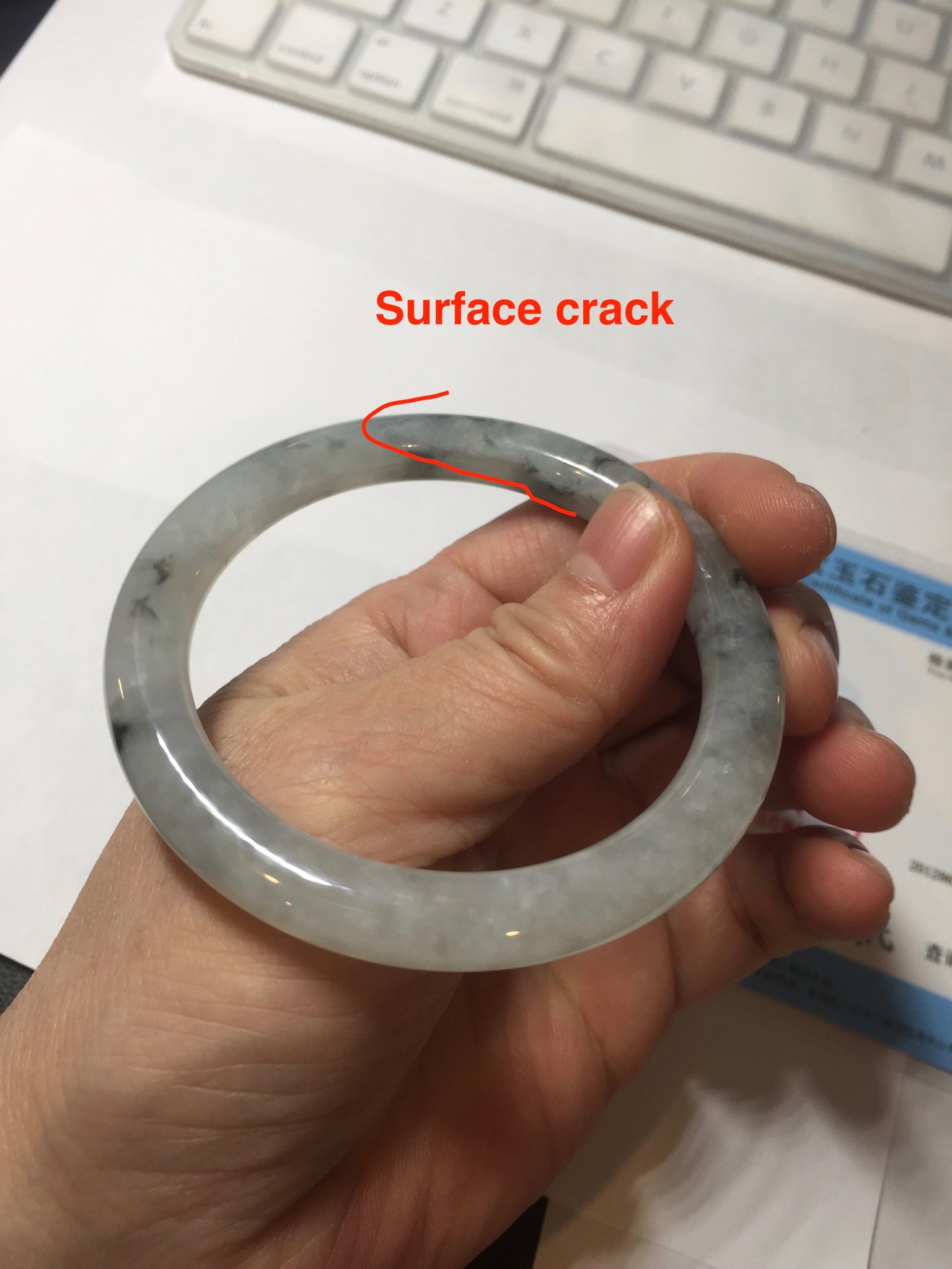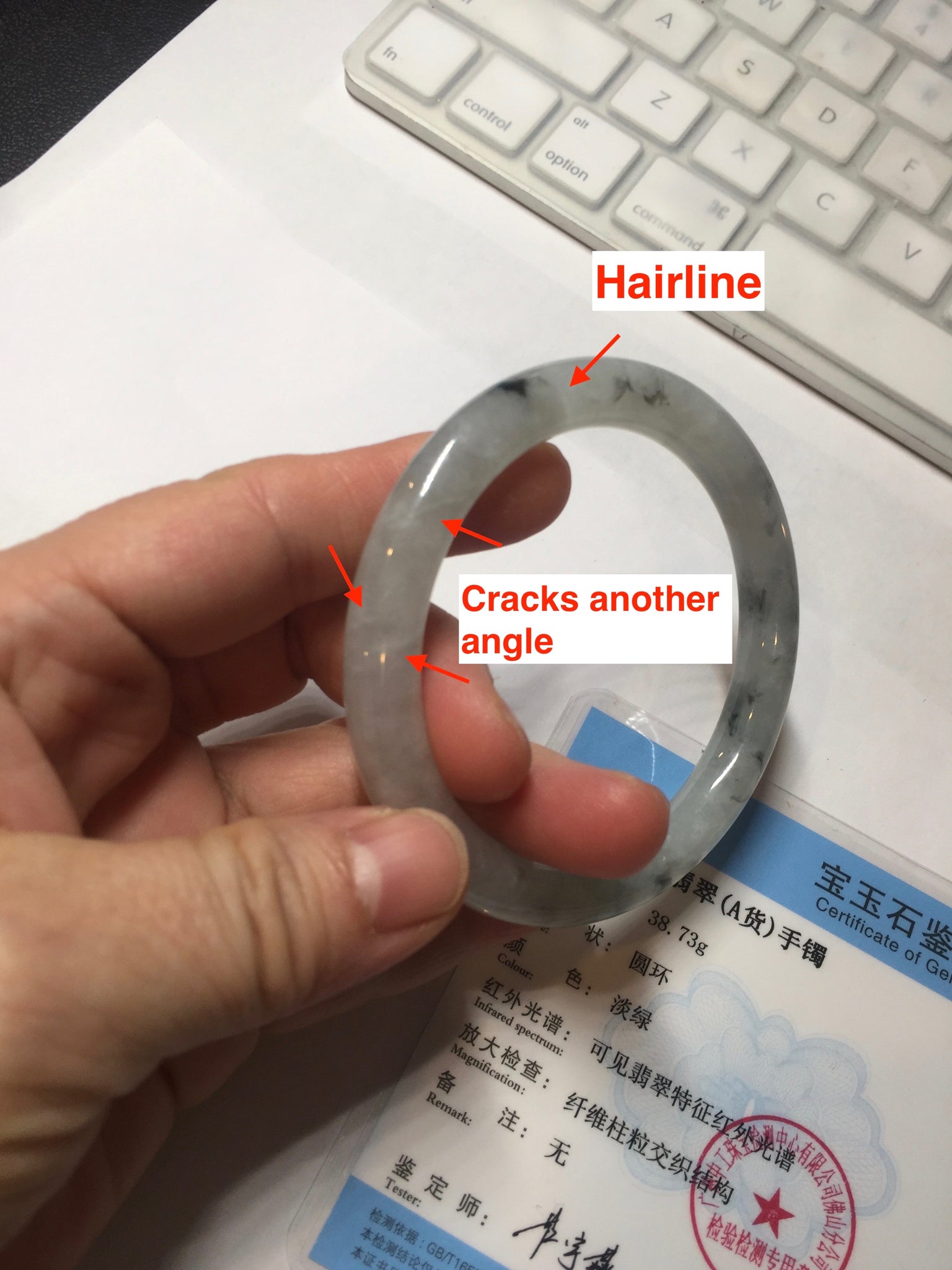 Jade root, or hairline root, and are not considered cracks. A crack is considered to be a crack you can feel that runs up and down the width of the bangle.