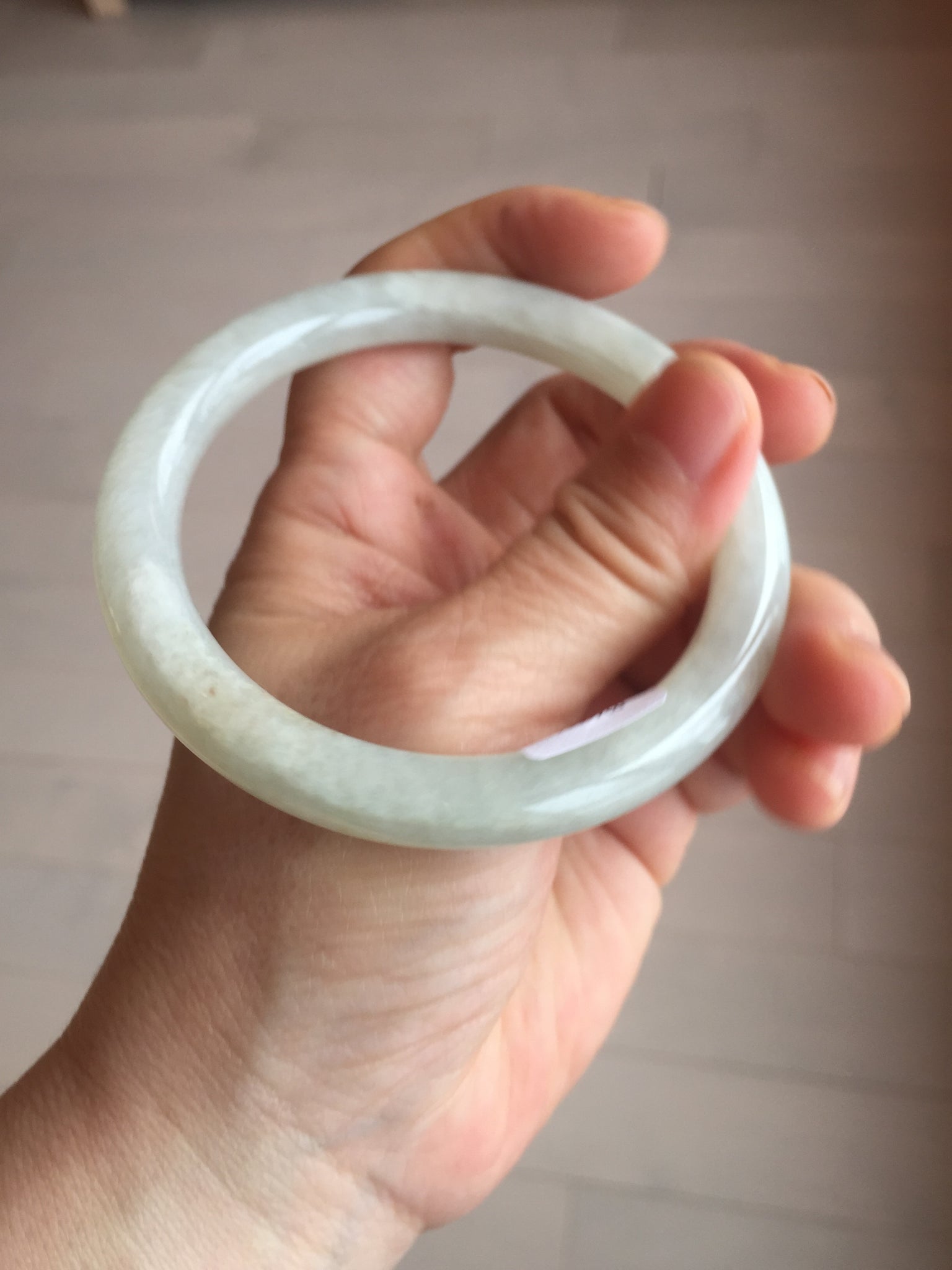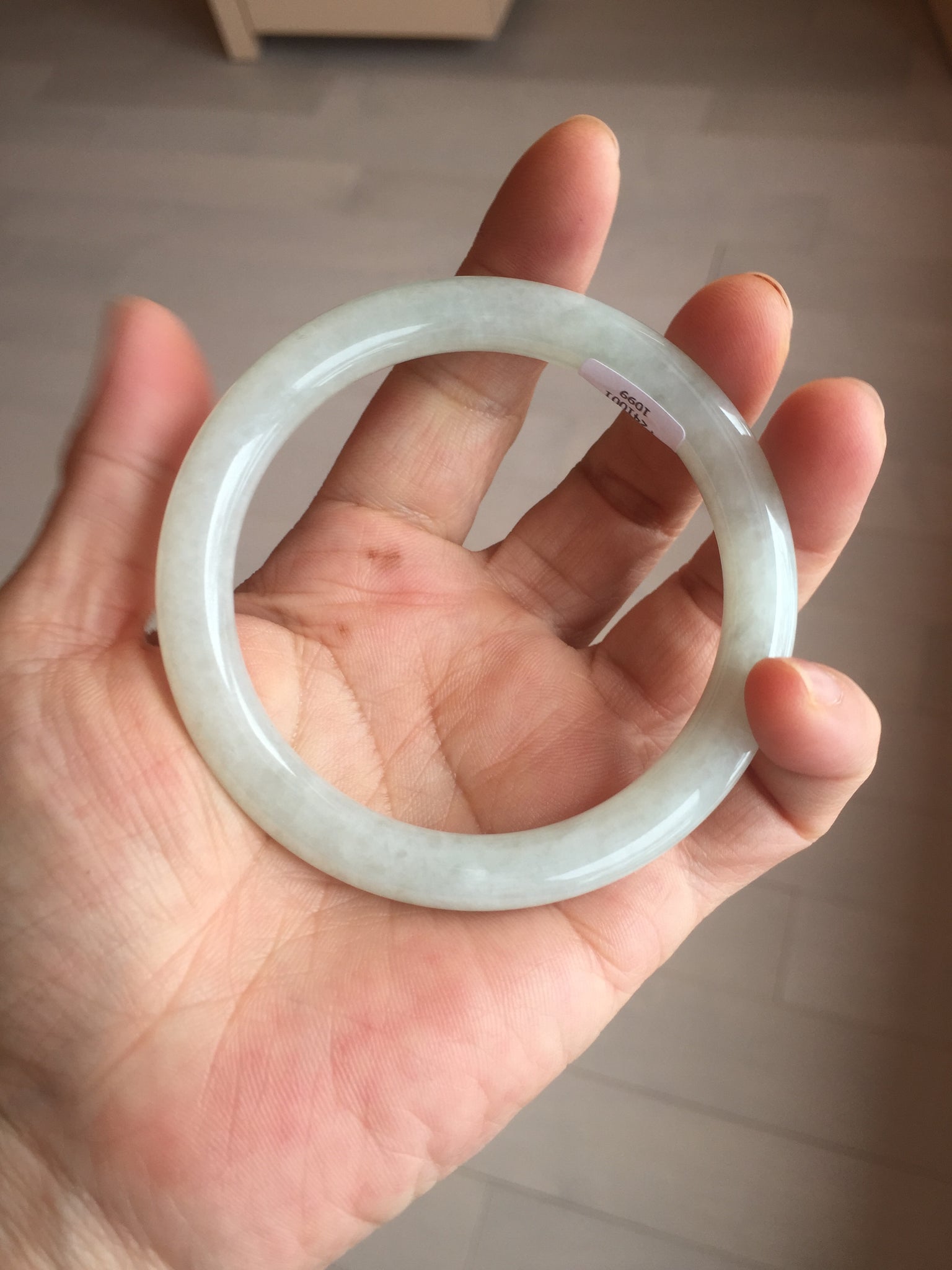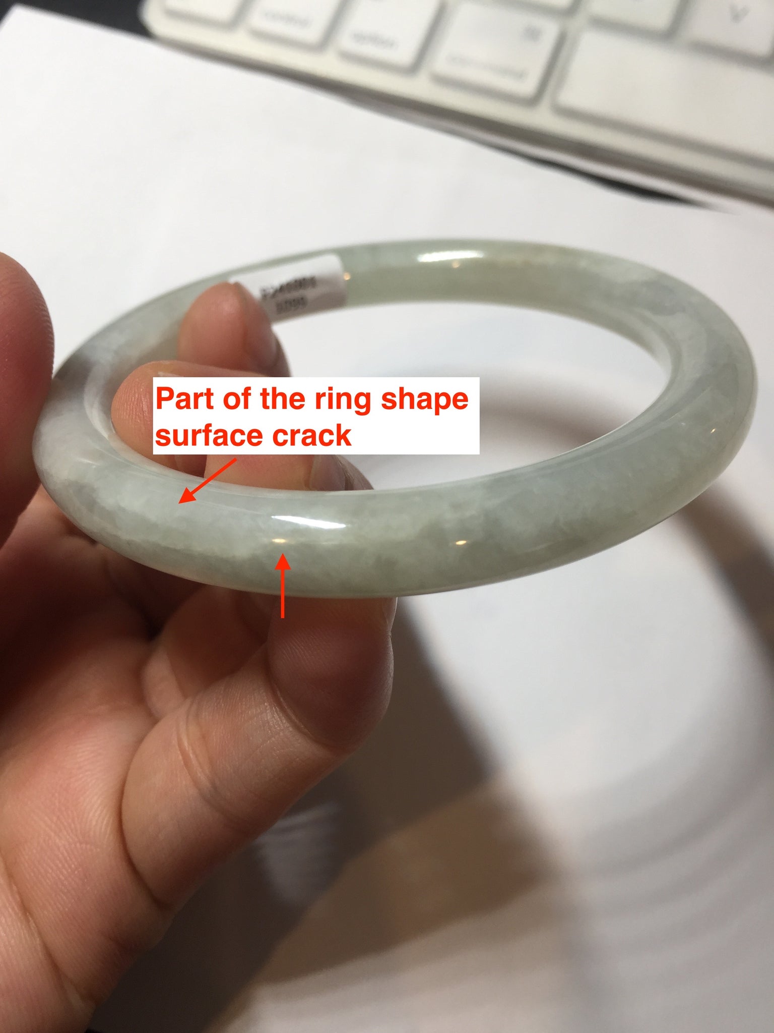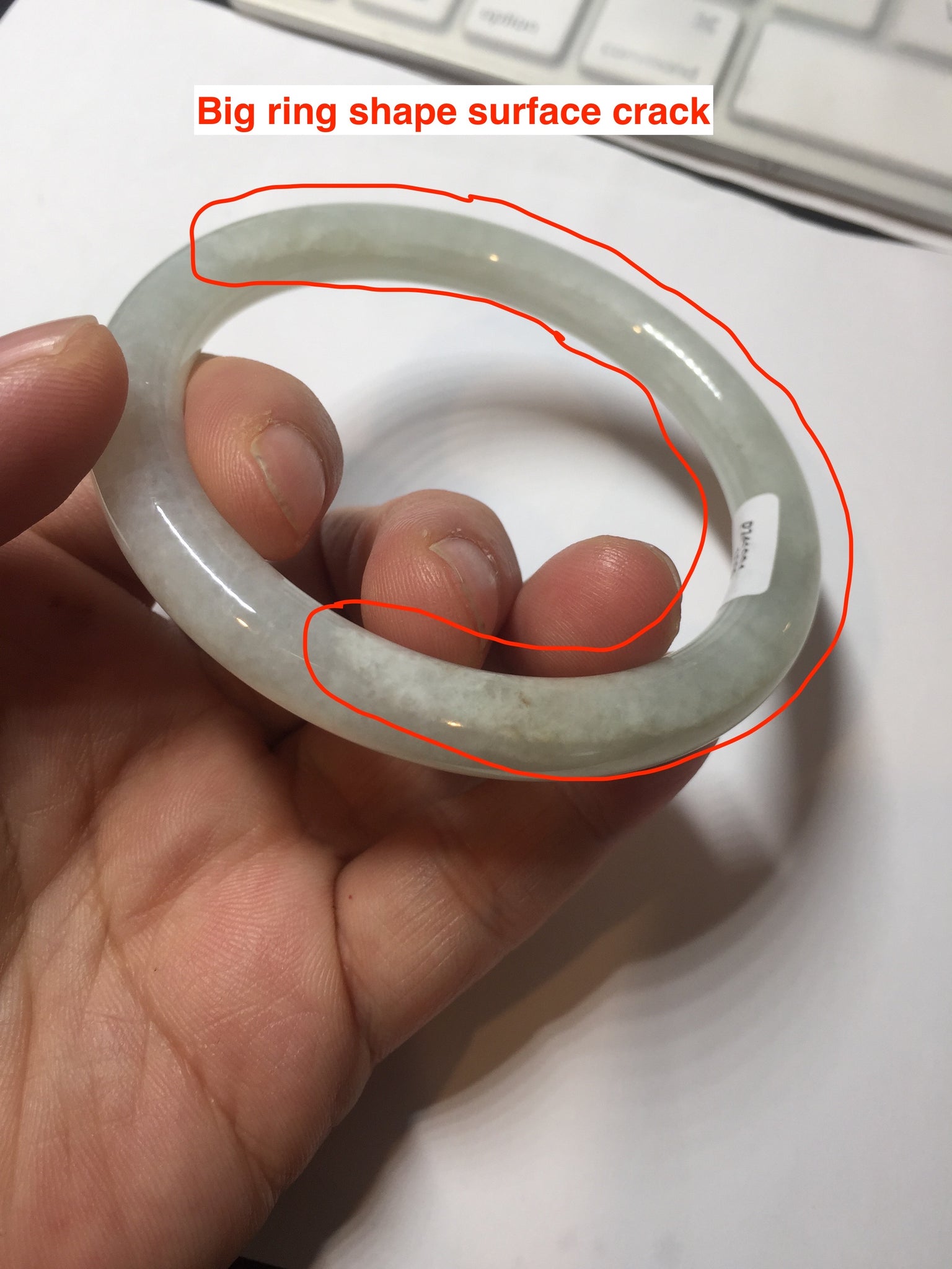 One big ring shape surface crack. The cracks are intermittent. The bangle is solid(Guaranteed.) Makes high pitch sound when tapped. Some cotton lines, cotton spots, and cotton areas.
