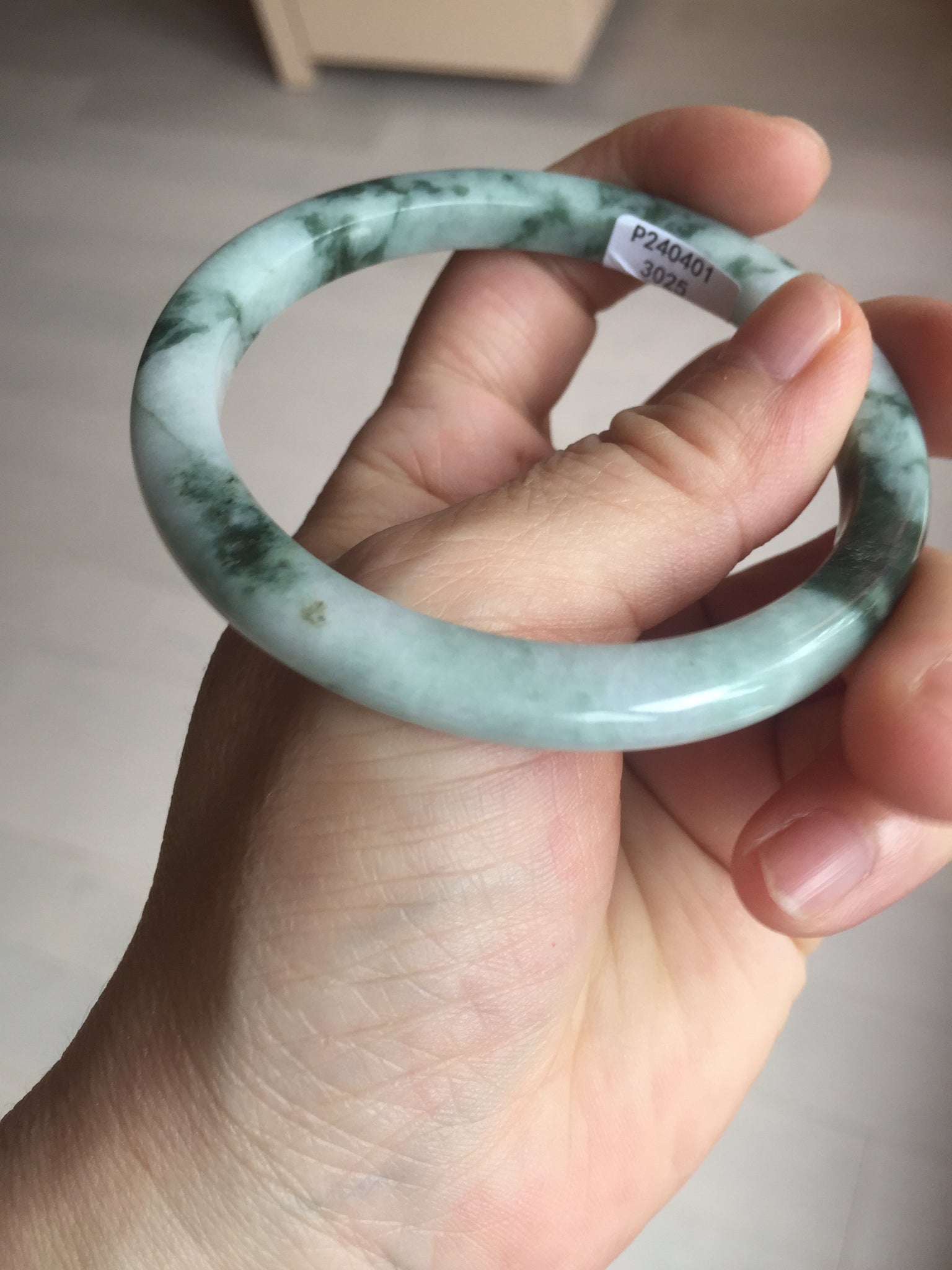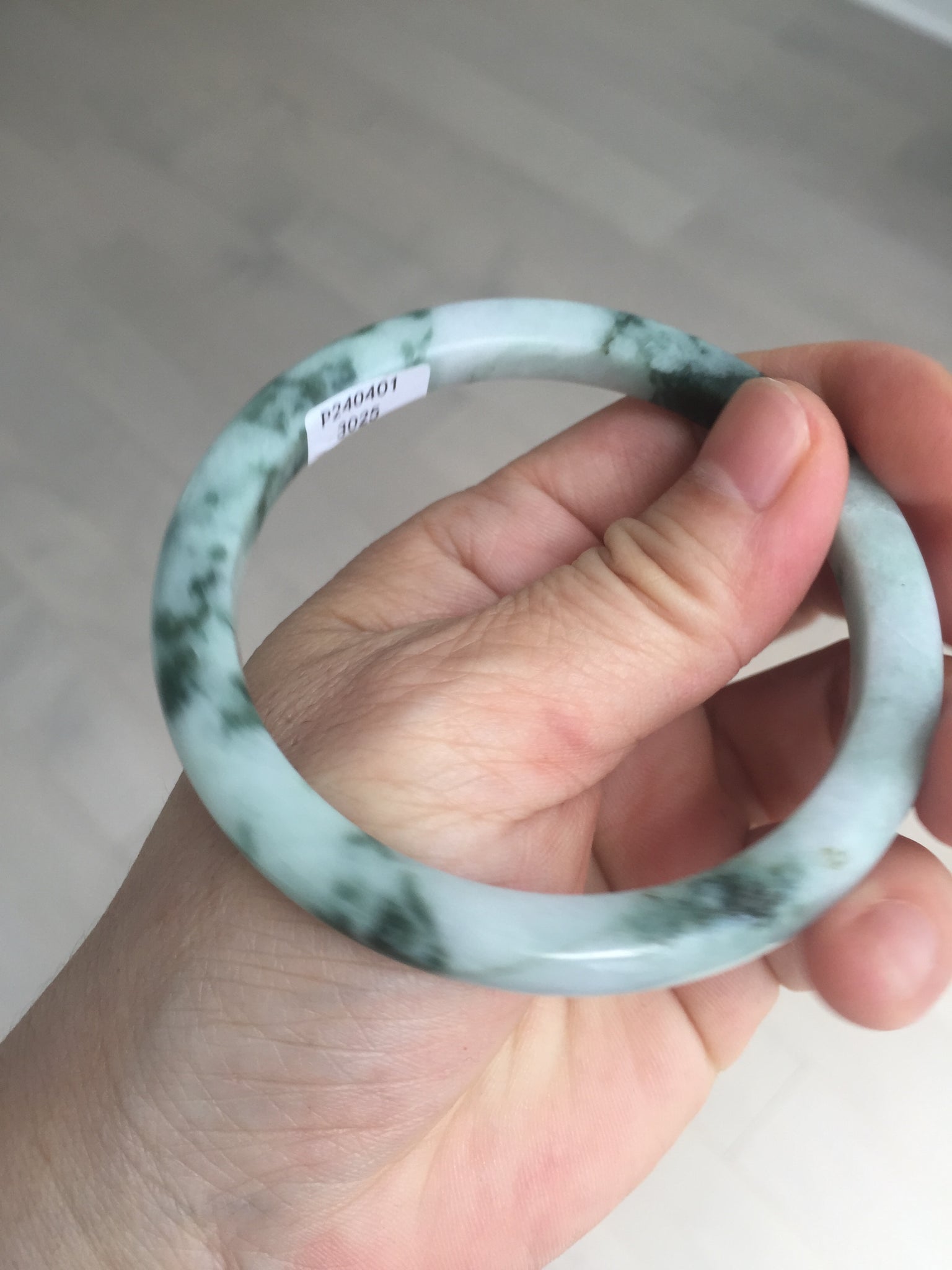 57.5mm certificated Type A 100% Natural light green with green floating flowers Jadeite Jade bangle AS82-3025