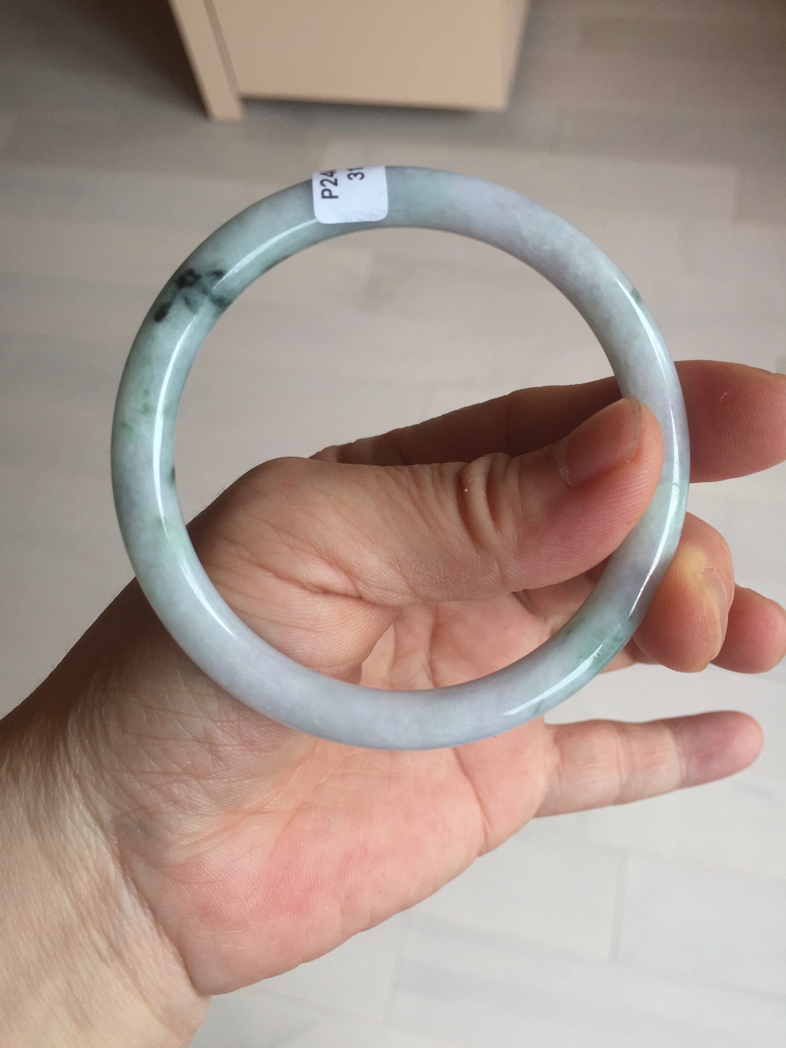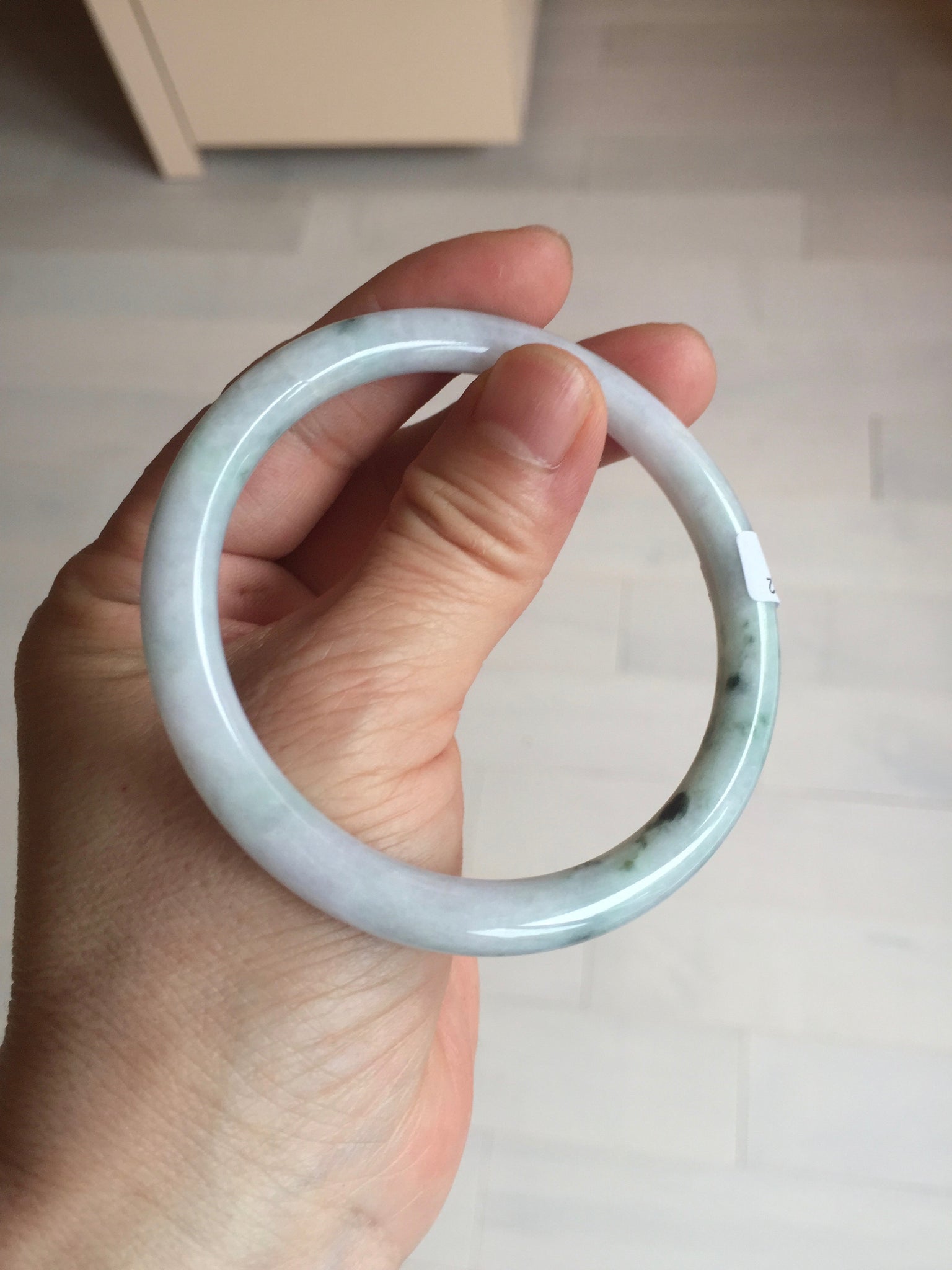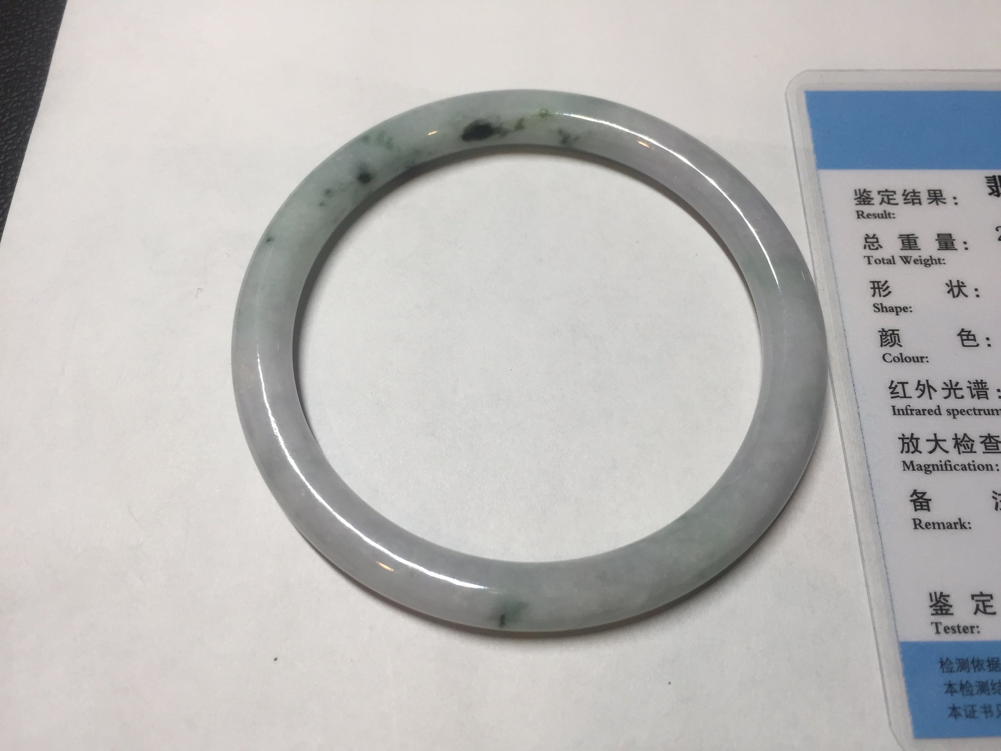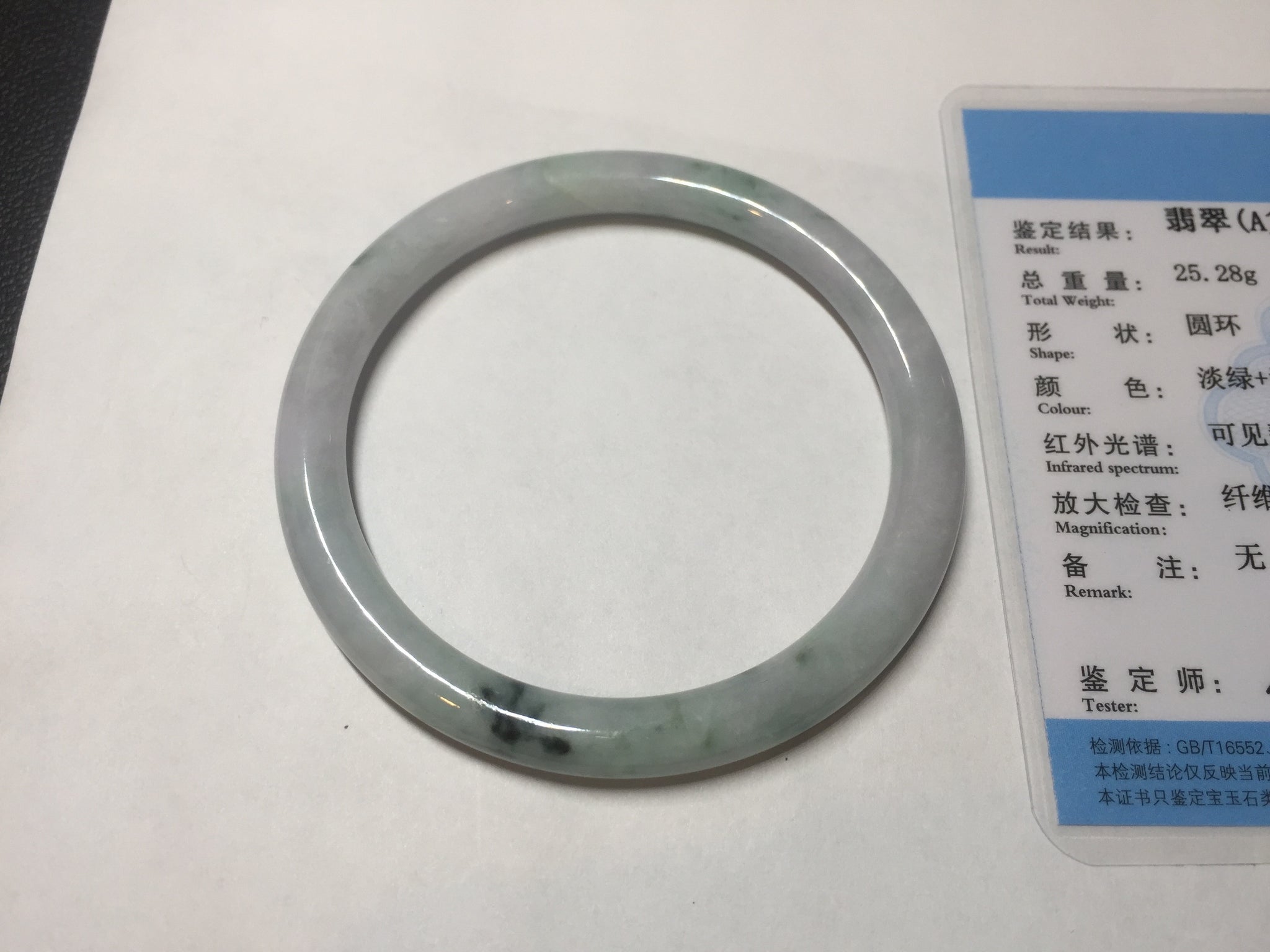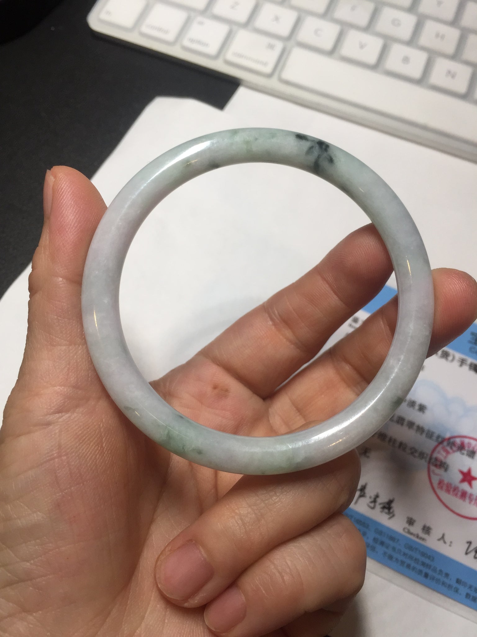 57mm certified 100% natural type A light green/purple with green fly flowers round cut jadeite jade bangle BN59-3125