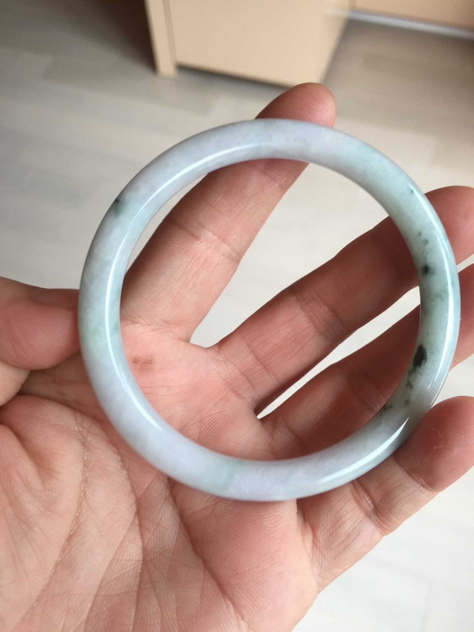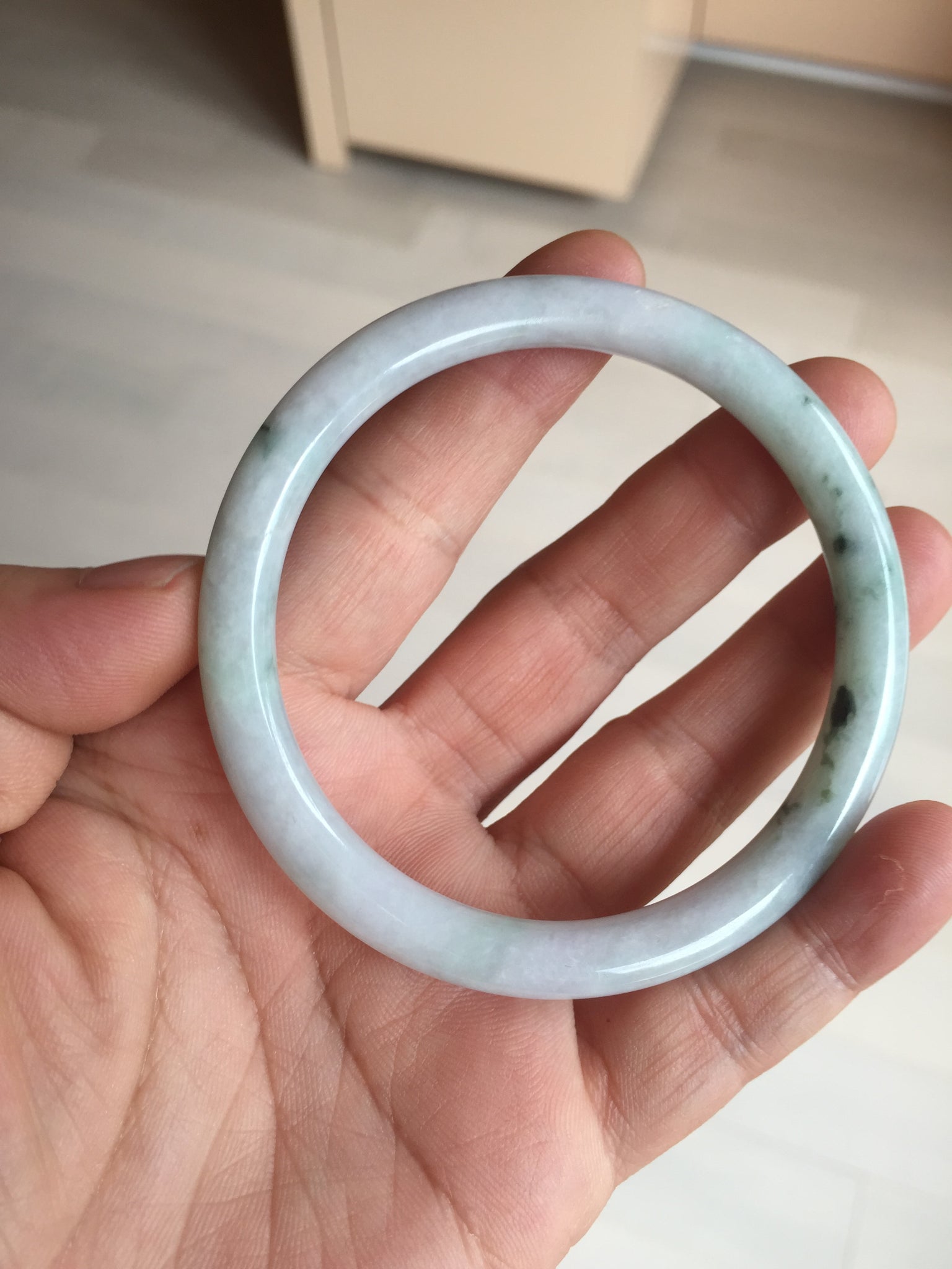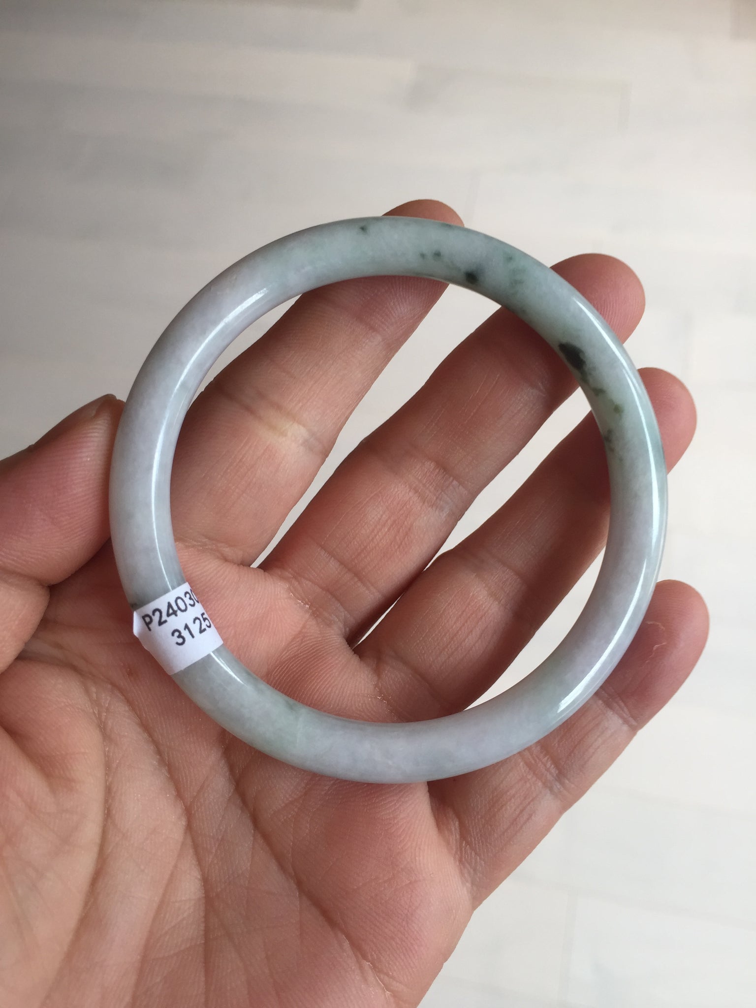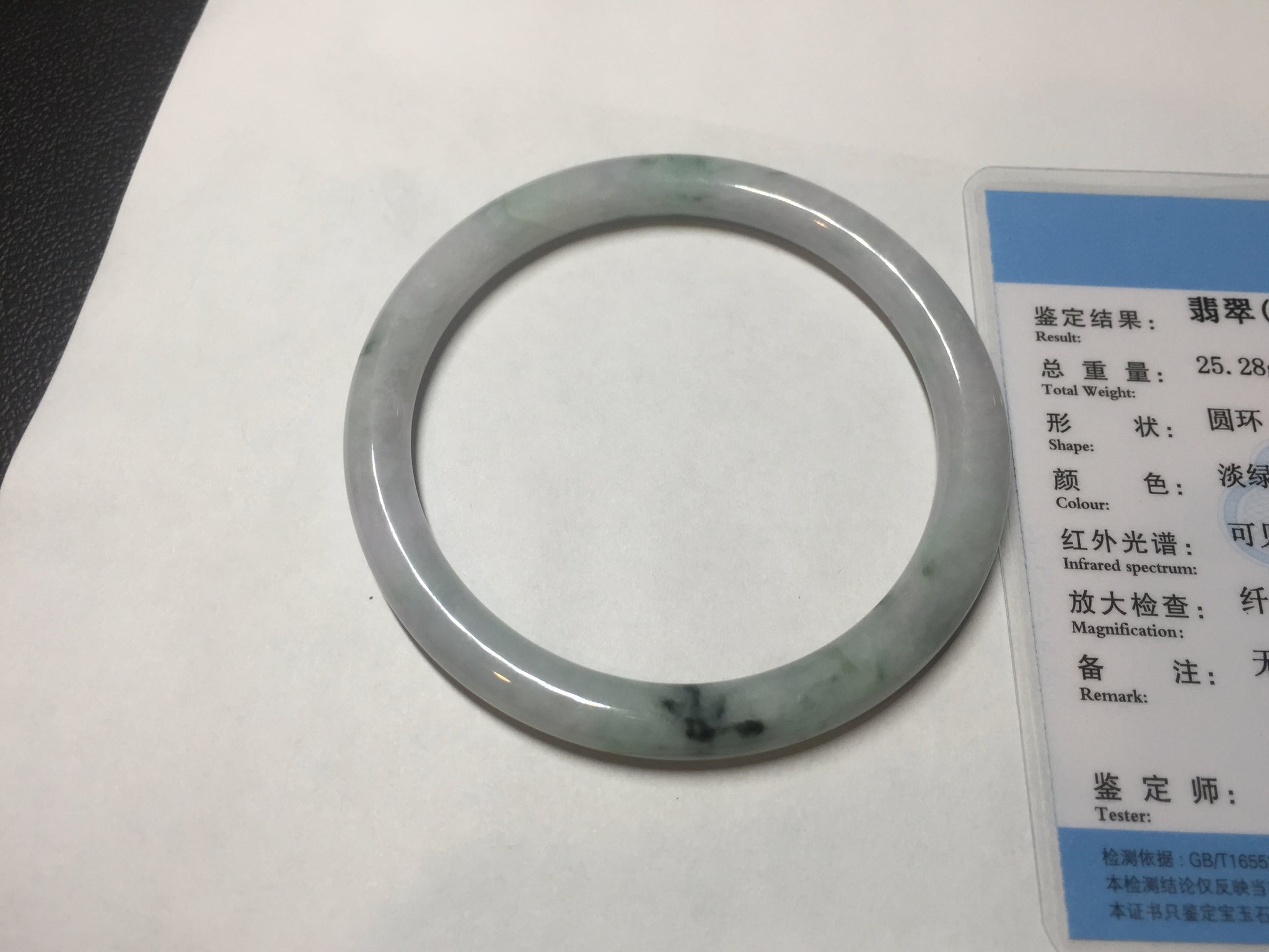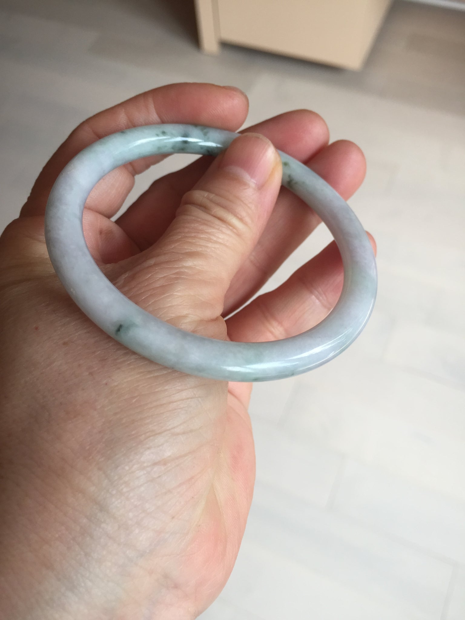 57mm certified 100% natural type A light green/purple with green fly flowers round cut jadeite jade bangle BN59-3125