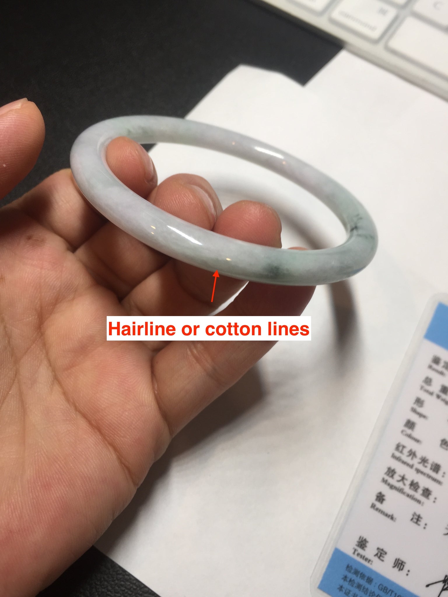 2 cracks. Some cotton lines, hairlines, and cotton areas.  The purple is really light,  lighter than in the photos.