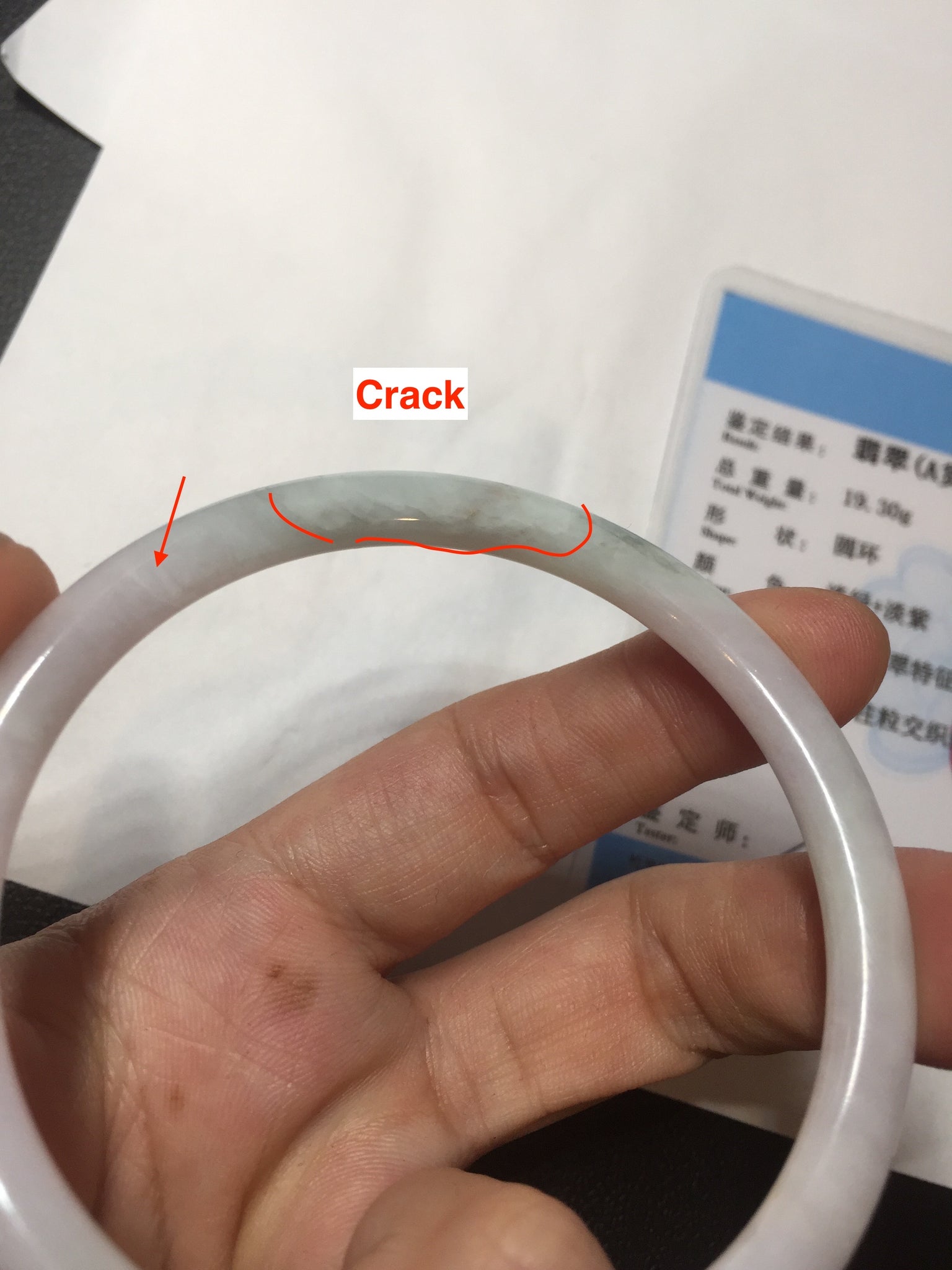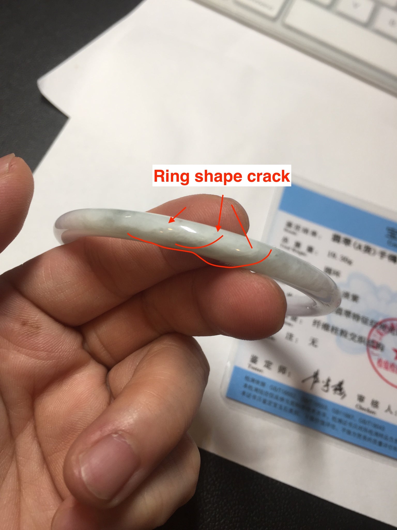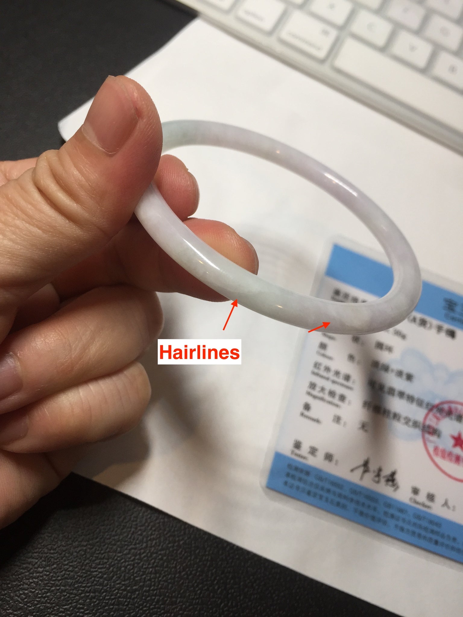Some cracks. One of them is a ring-shaped crack. Some hairlines, cotton lines, cotton spots, and cotton areas. Some area has a slightly uneven thickness. Not transparent or watery. The colors are really light, lighter than in the photos.