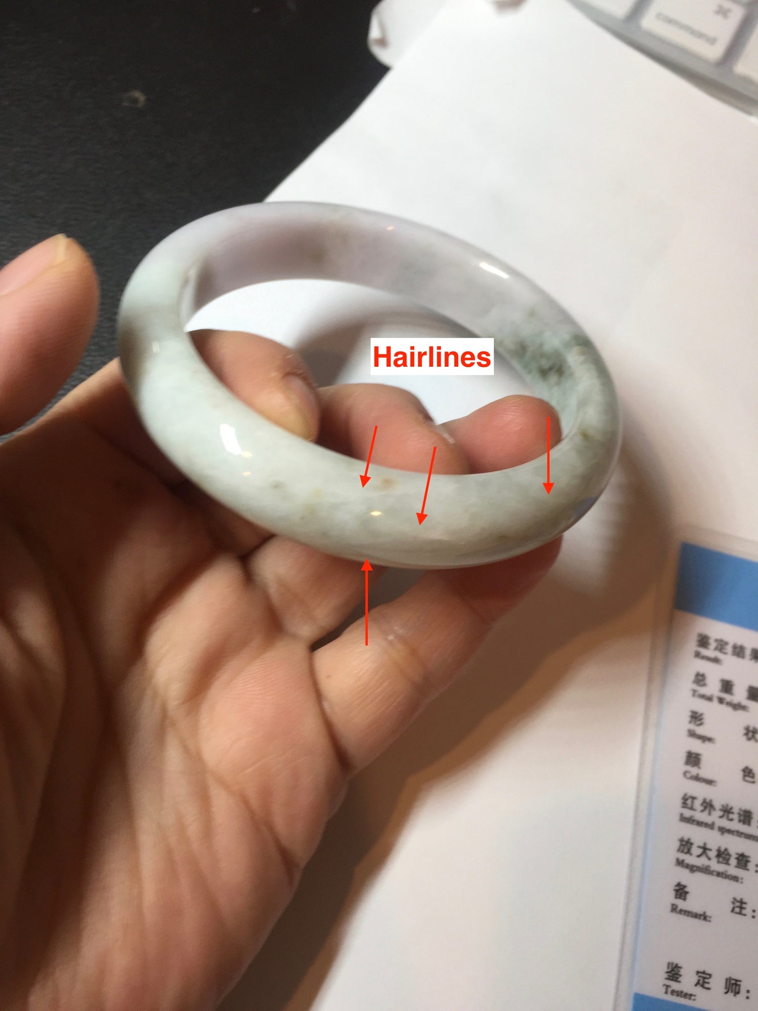 When a bangle has green, yellow, and purple, it means "Fu Lu Shou", Blessing, good fortune, and happy long life. It is very rare.