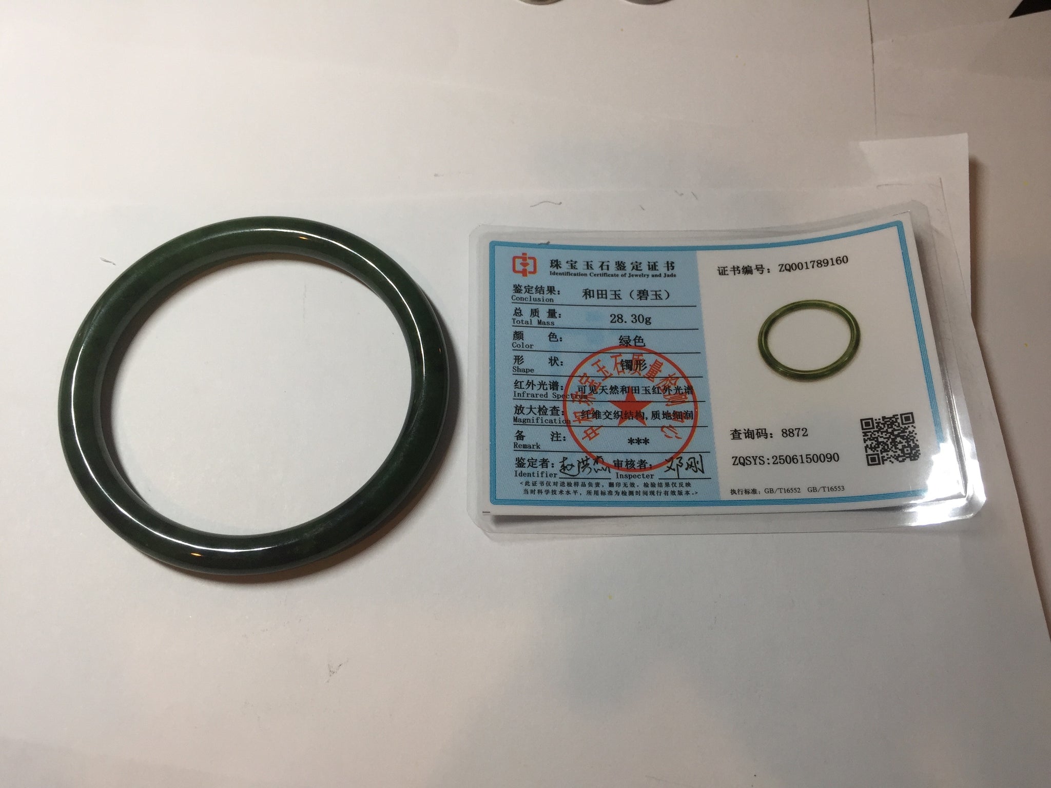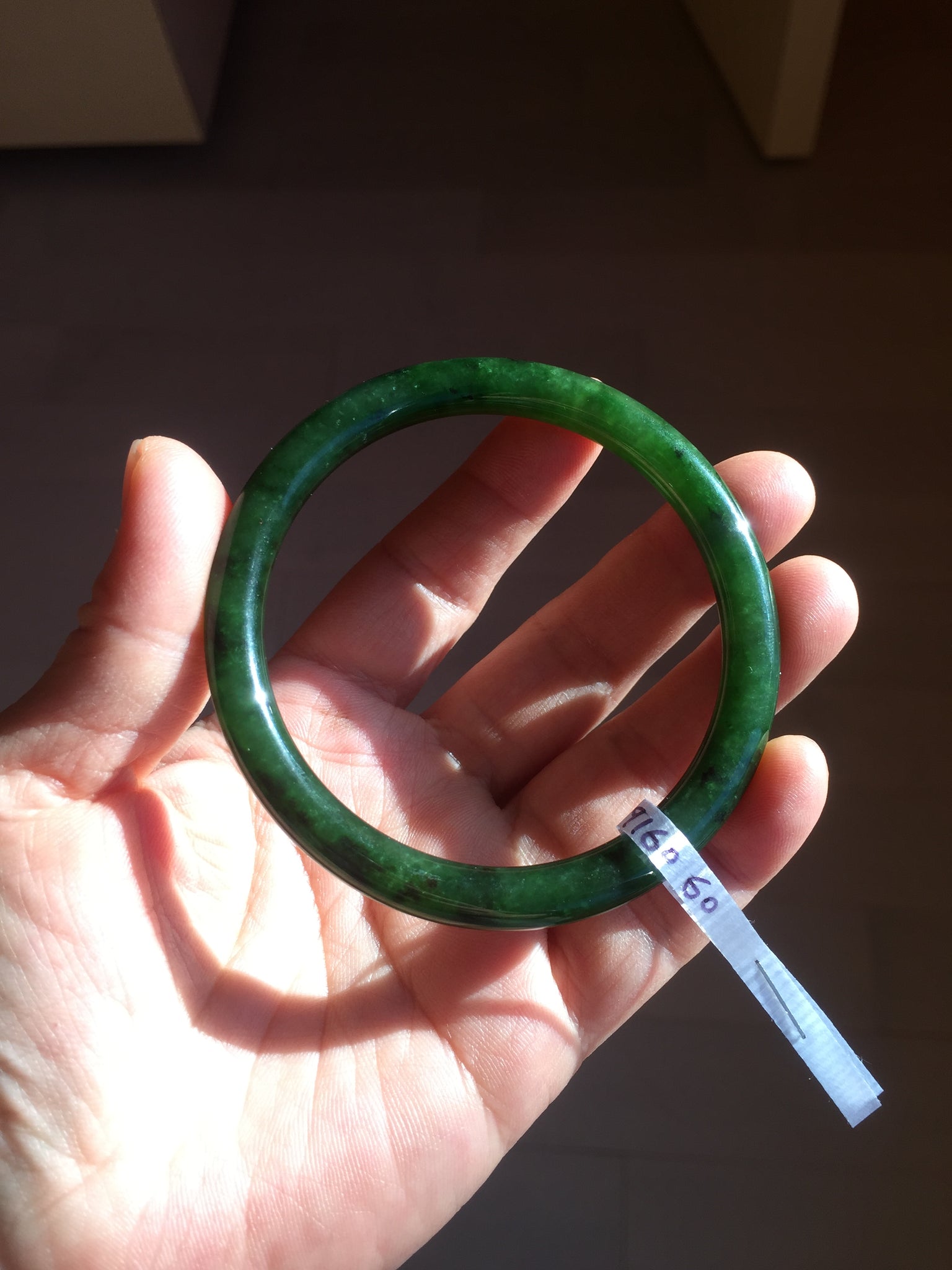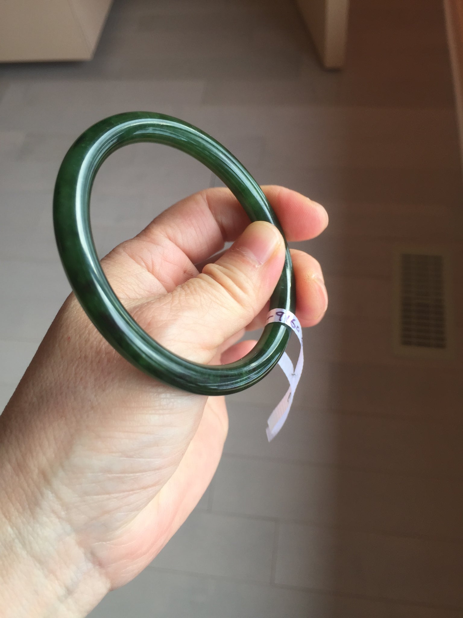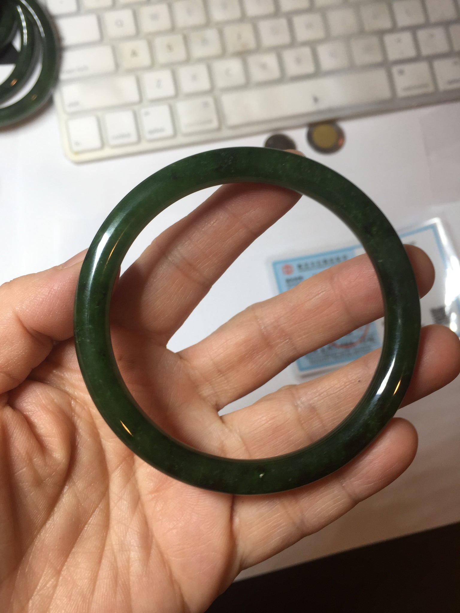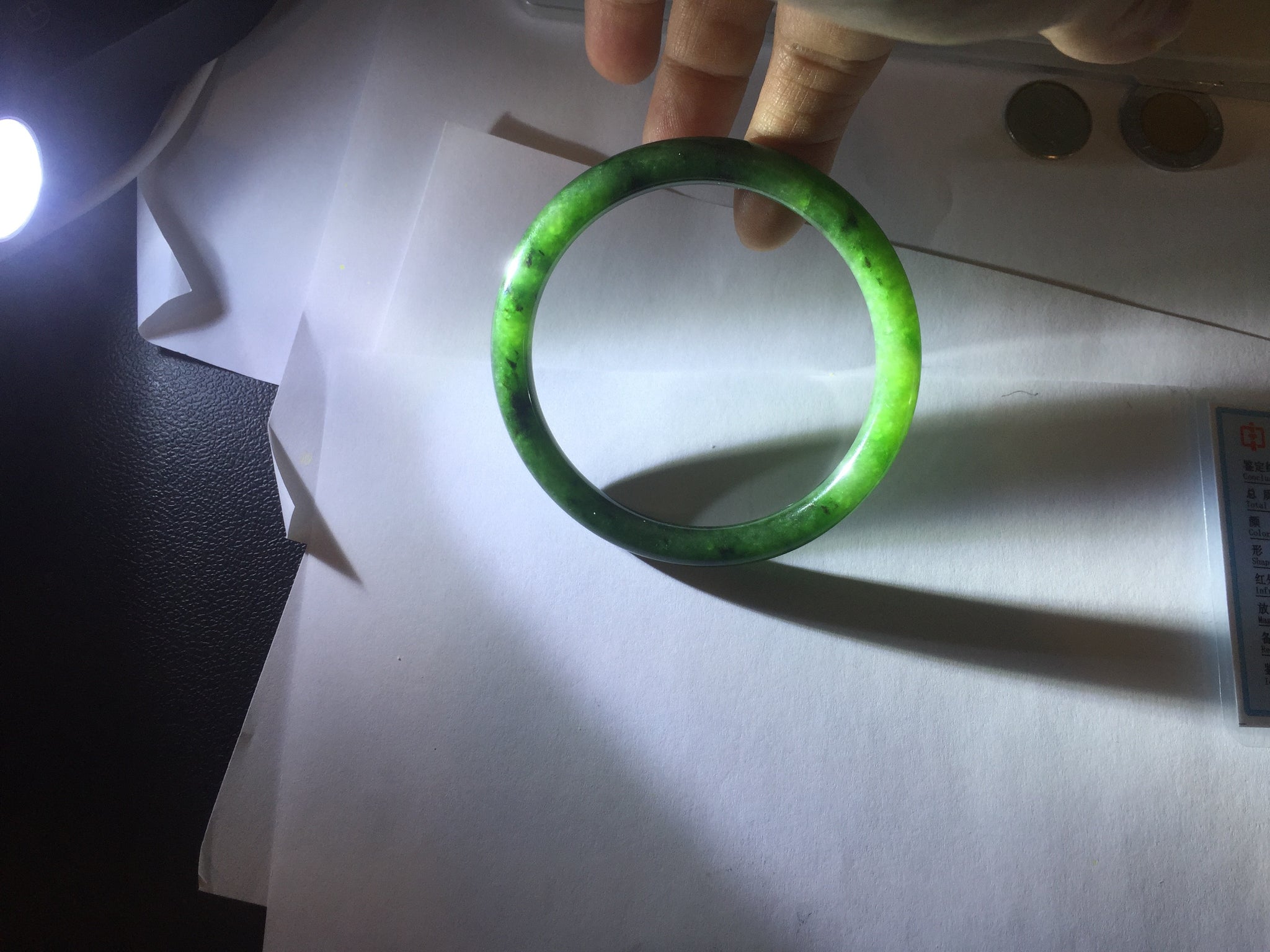 Imperfections: No crack. No hairline. Some cotton spots. Some black cloudiness and spots. Has black colors. Under normal light, it is close to dark green/black.