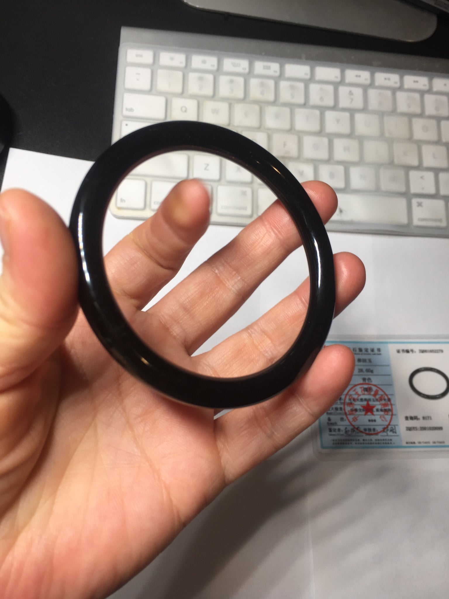 No crack. No hairline. A few metal spots. The metal spots are naturally formed, not inlaid.