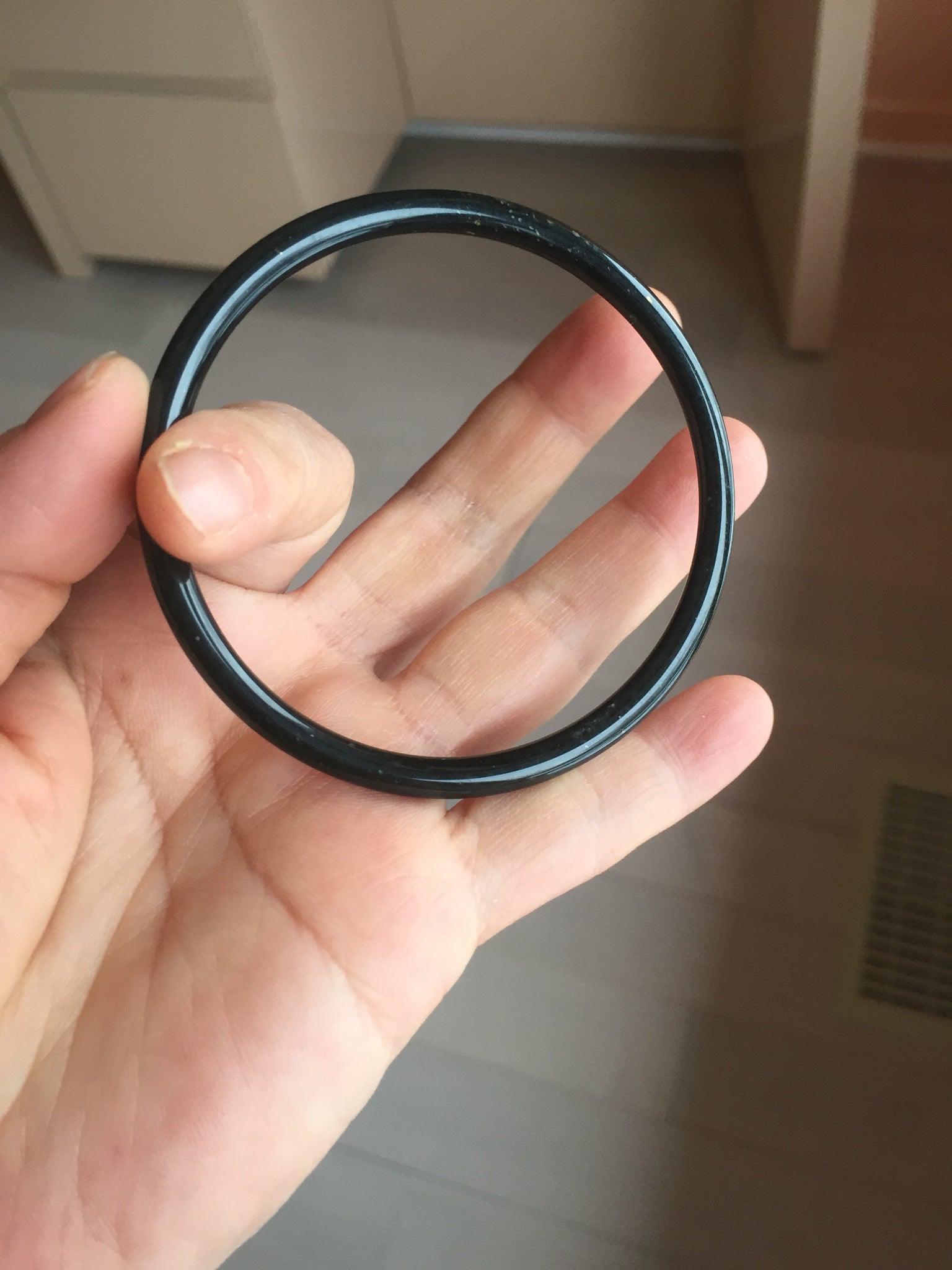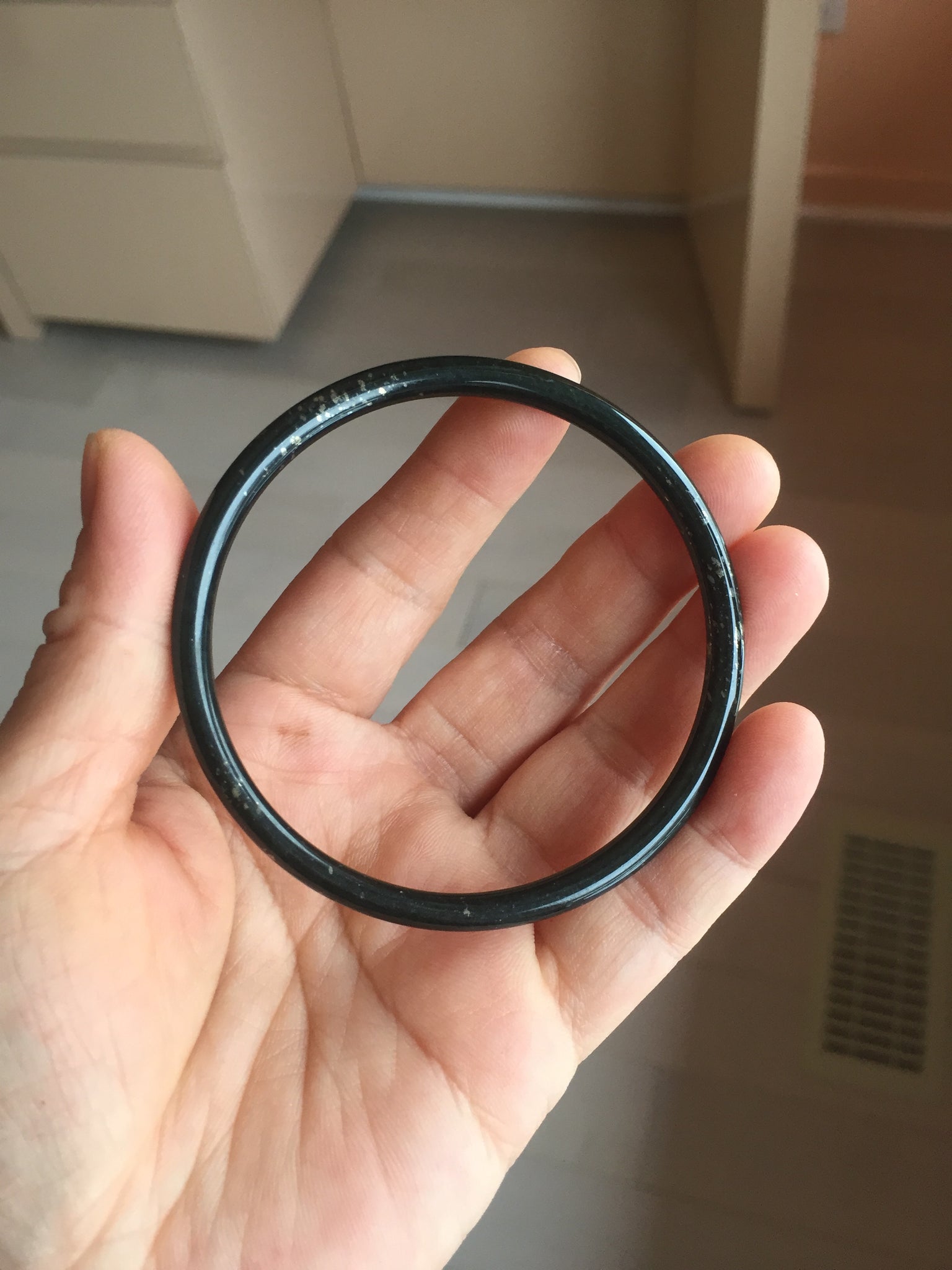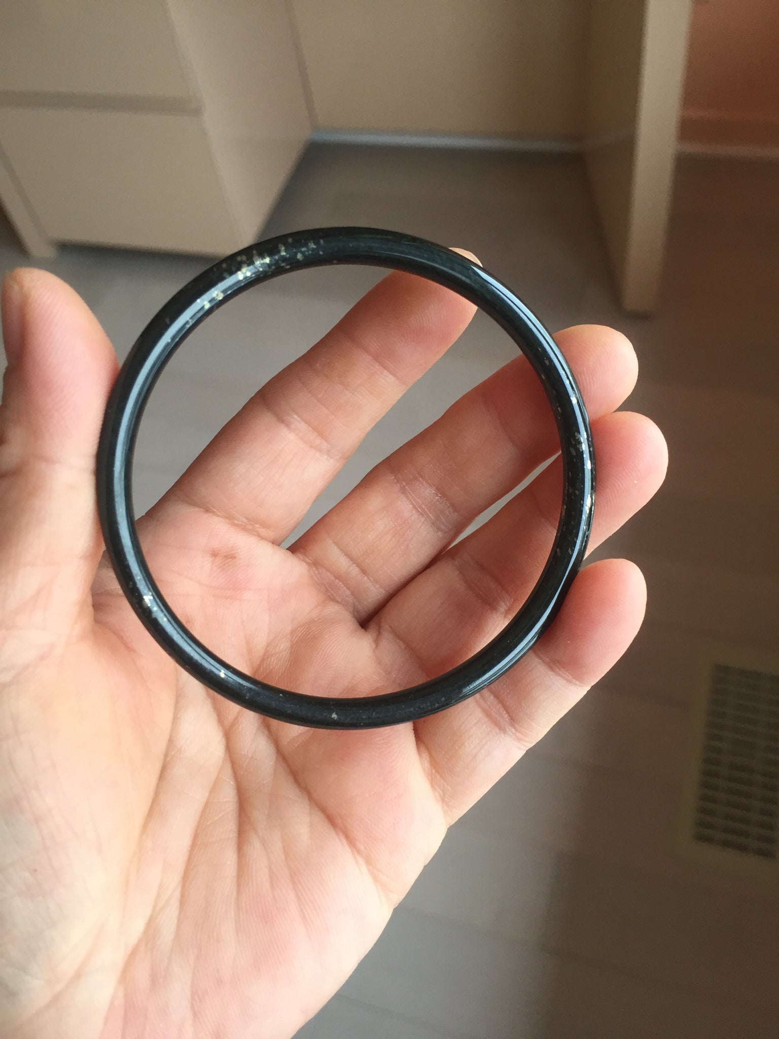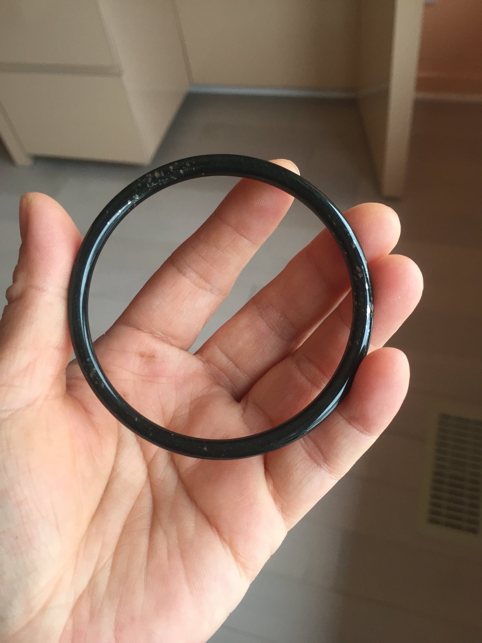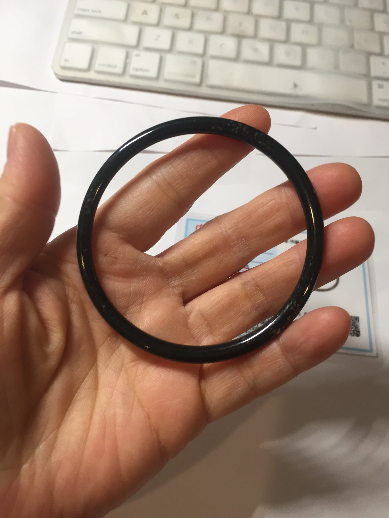 No crack. No hairline. Some metal spots. The metal spots are naturally formed, not inlaid. A few metallic inclusion surface may feel slightly less smooth. The bangle has uneven thickness 4.6(4.1)/4.3(4.1). Photos are slighter better than actually item.