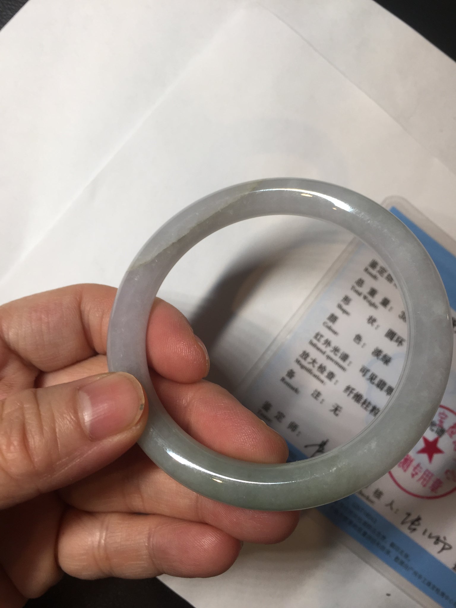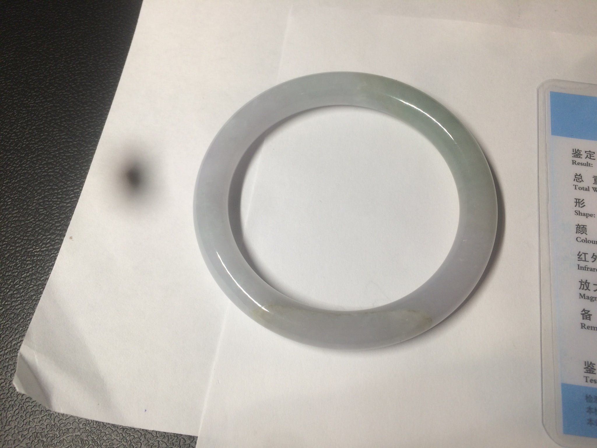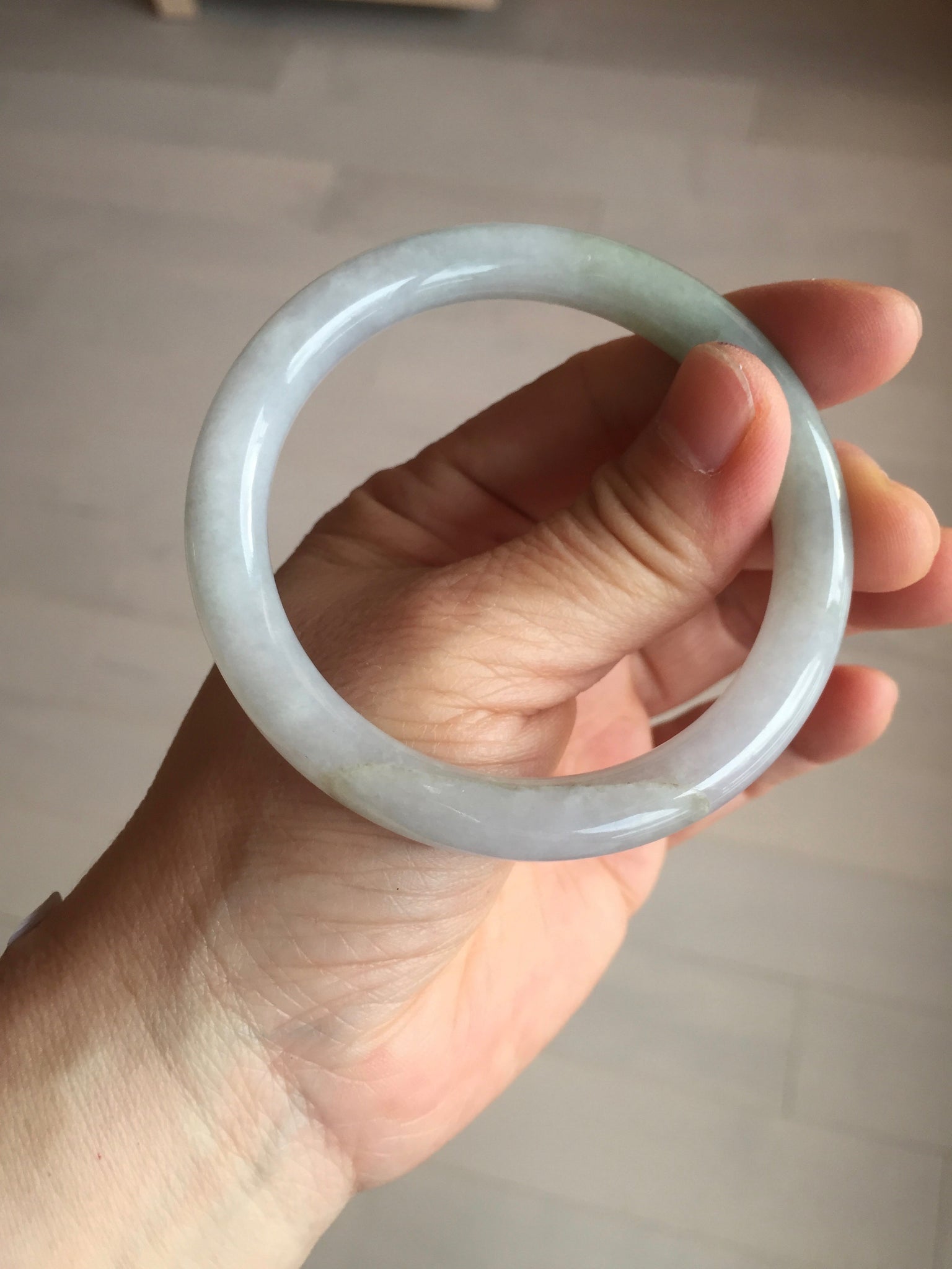 Imperfections: One ring-shaped crack. The bangle is solid (guaranteed!). Some cotton lines or hairlines. Cotton spots and areas. The purple is super light. Just a hint of it. lighter than in photos due to the purple color always being more camera-friendly.