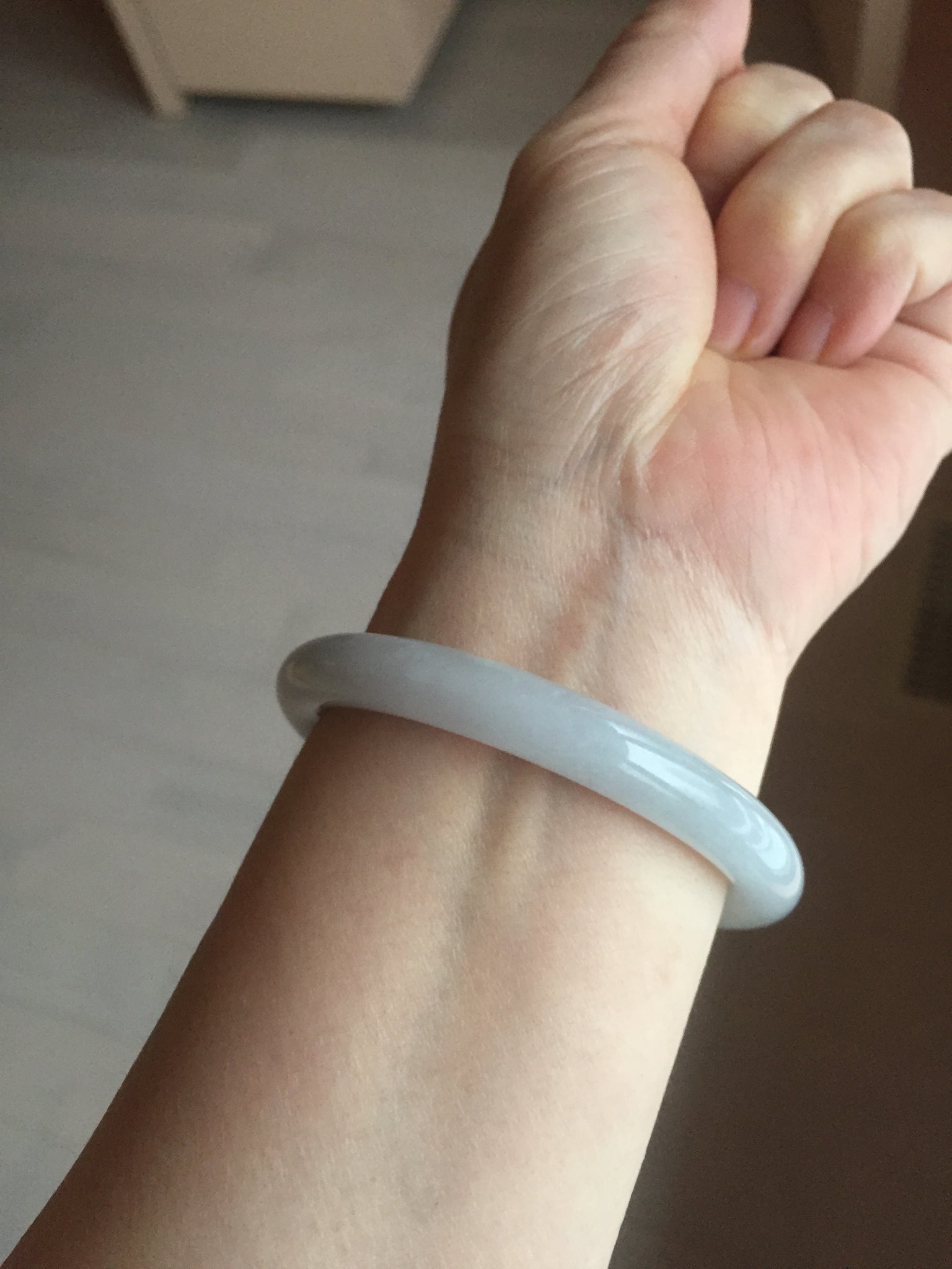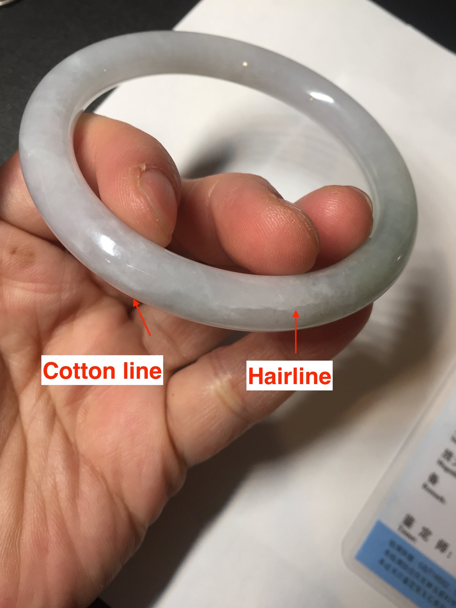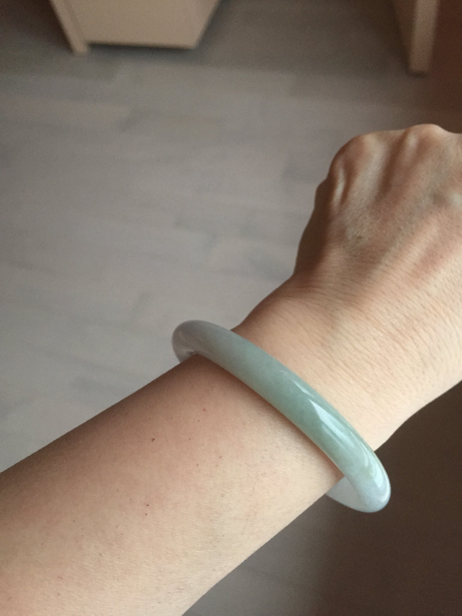 Imperfections: One ring-shaped crack. The bangle is solid (guaranteed!). Some cotton lines or hairlines. Cotton spots and areas. The purple is super light. Just a hint of it. lighter than in photos due to the purple color always being more camera-friendly.