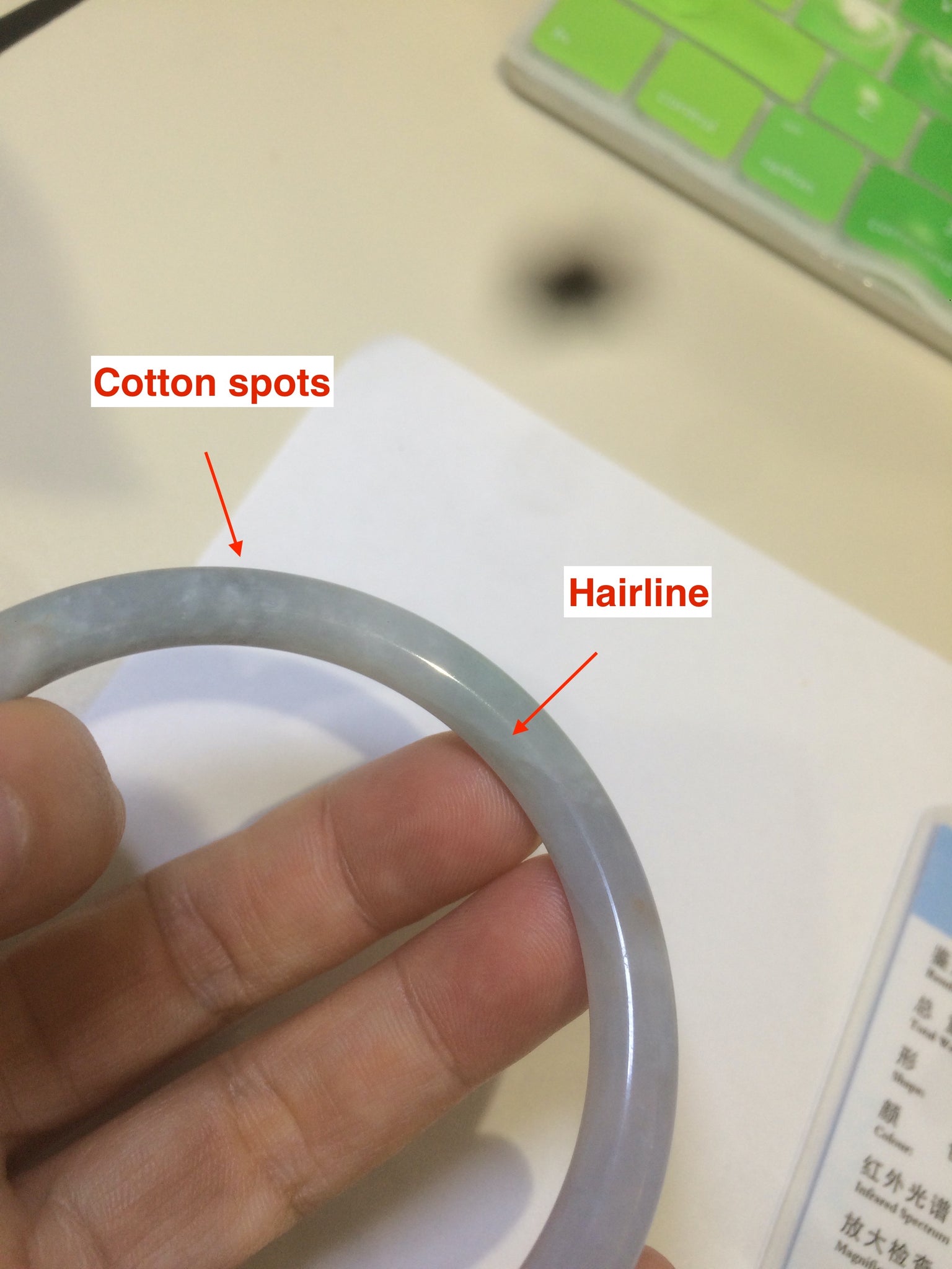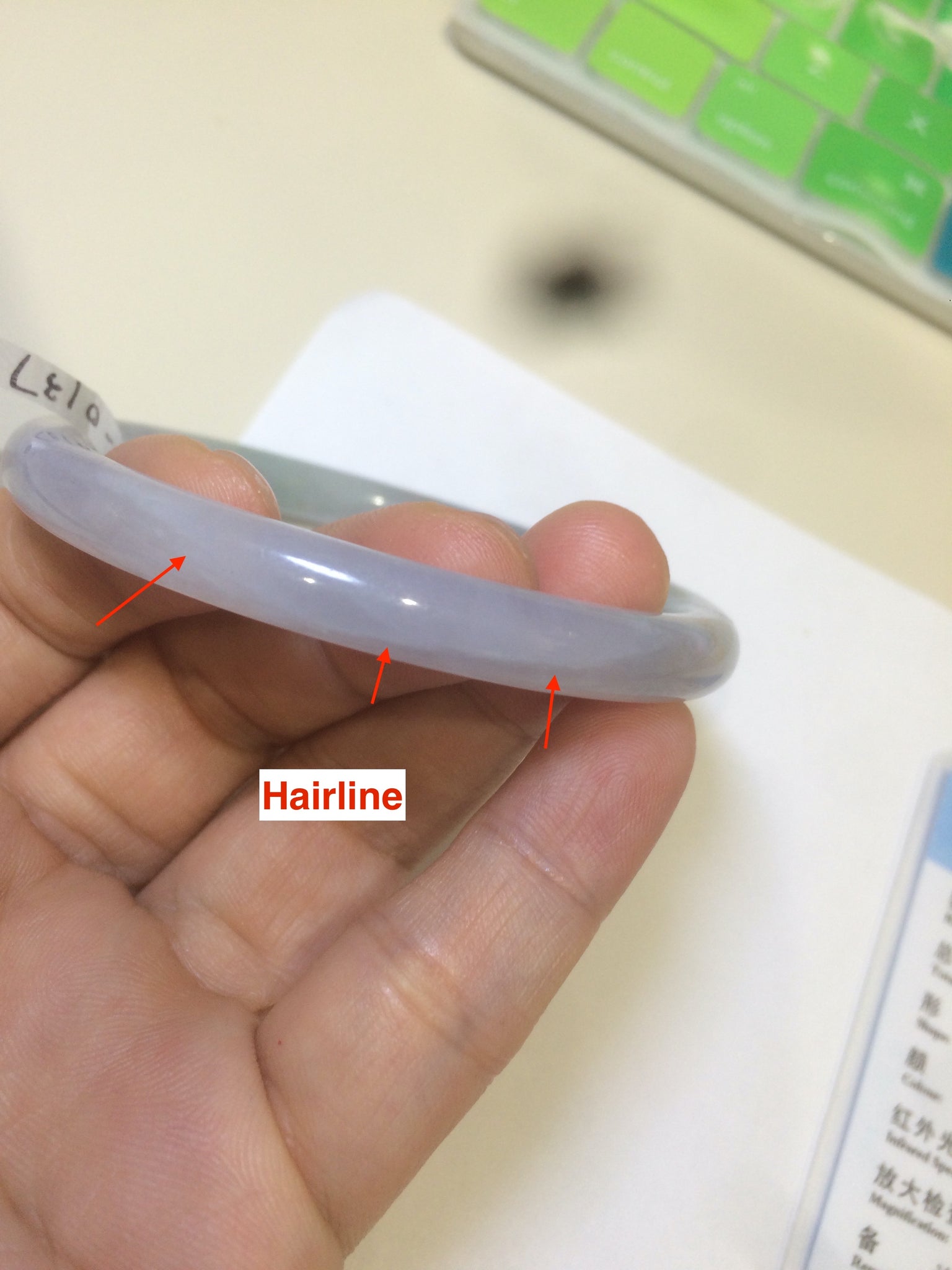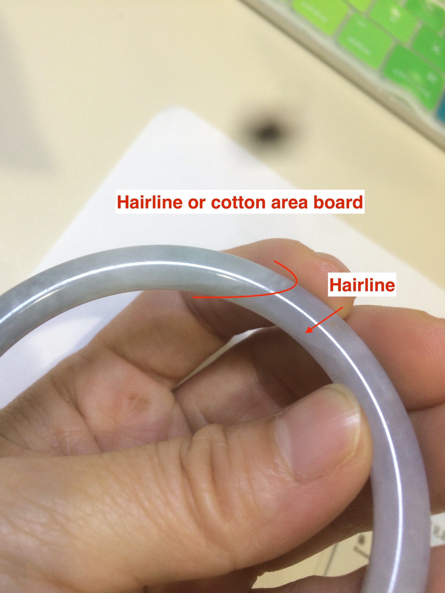 No crack. One brown/black ring shape color root. Some hairlines(photos may not show all).Some cotton spots. The purple is lighter than in photos since the purple is always more camera-friendly.