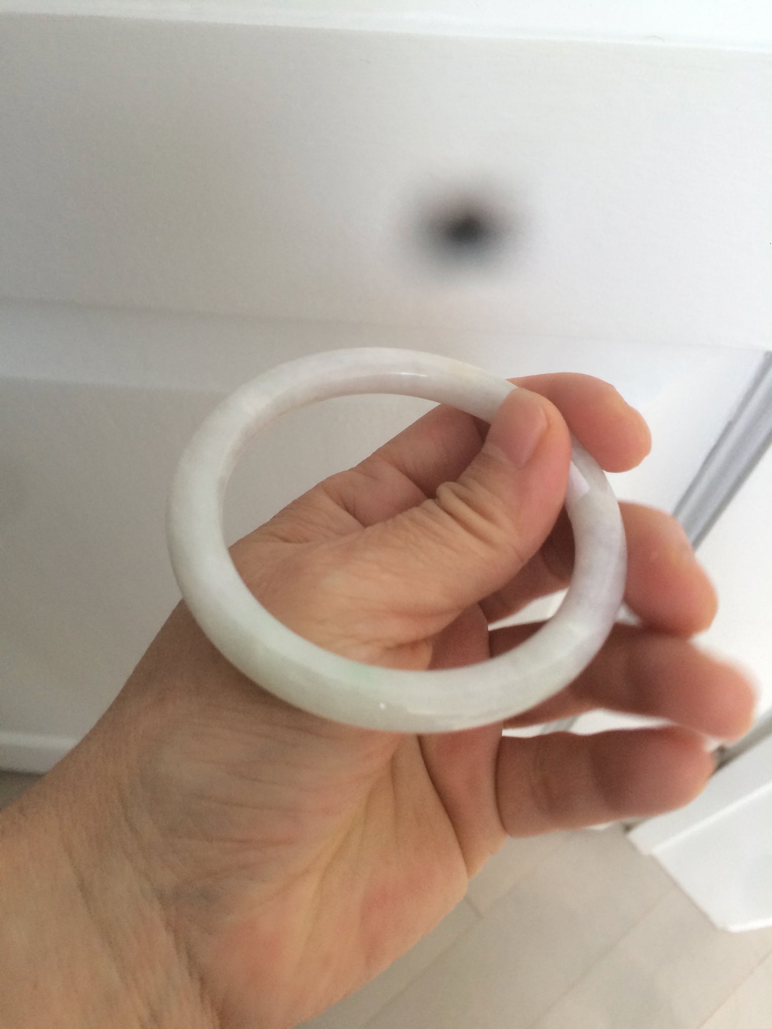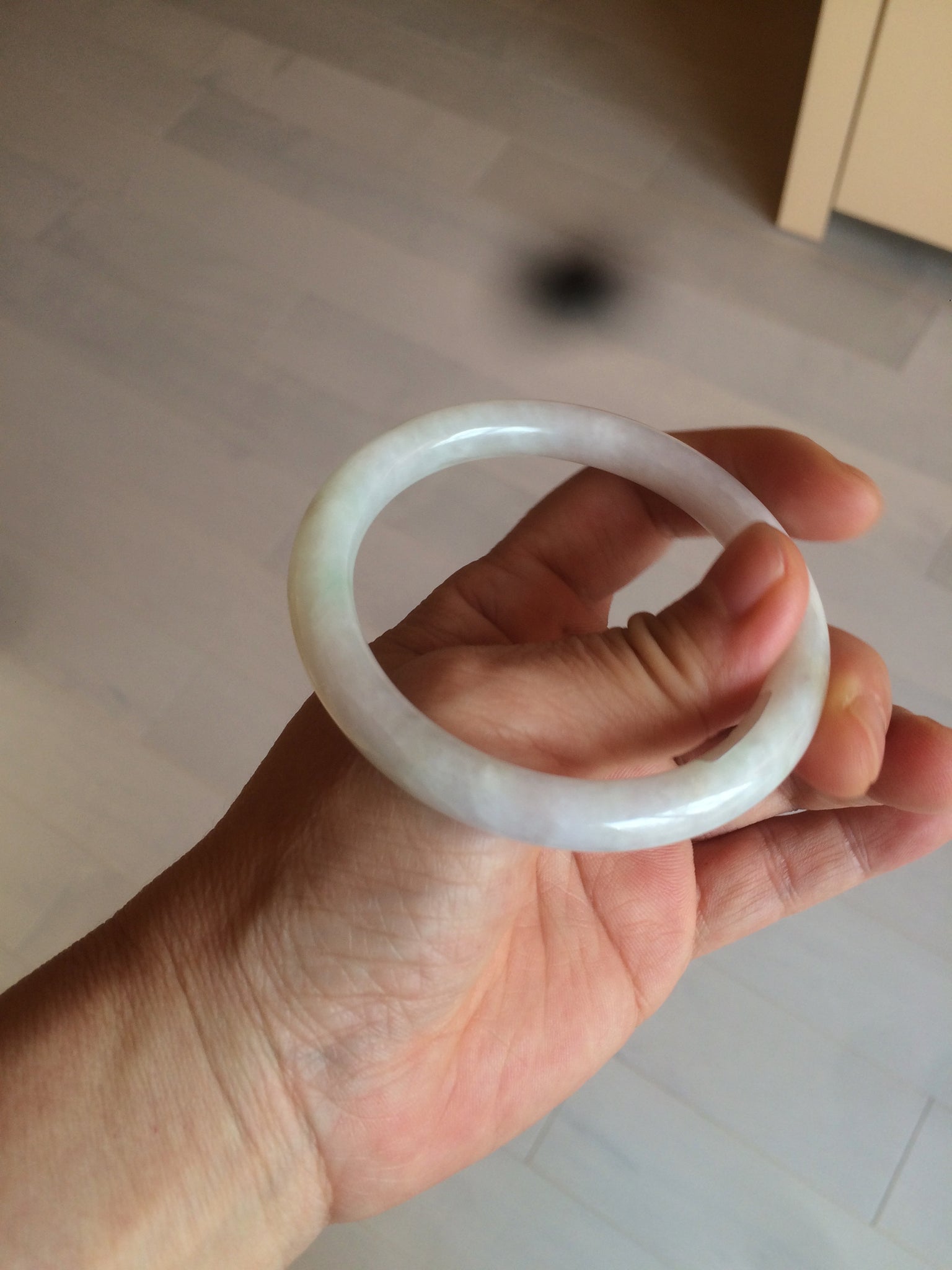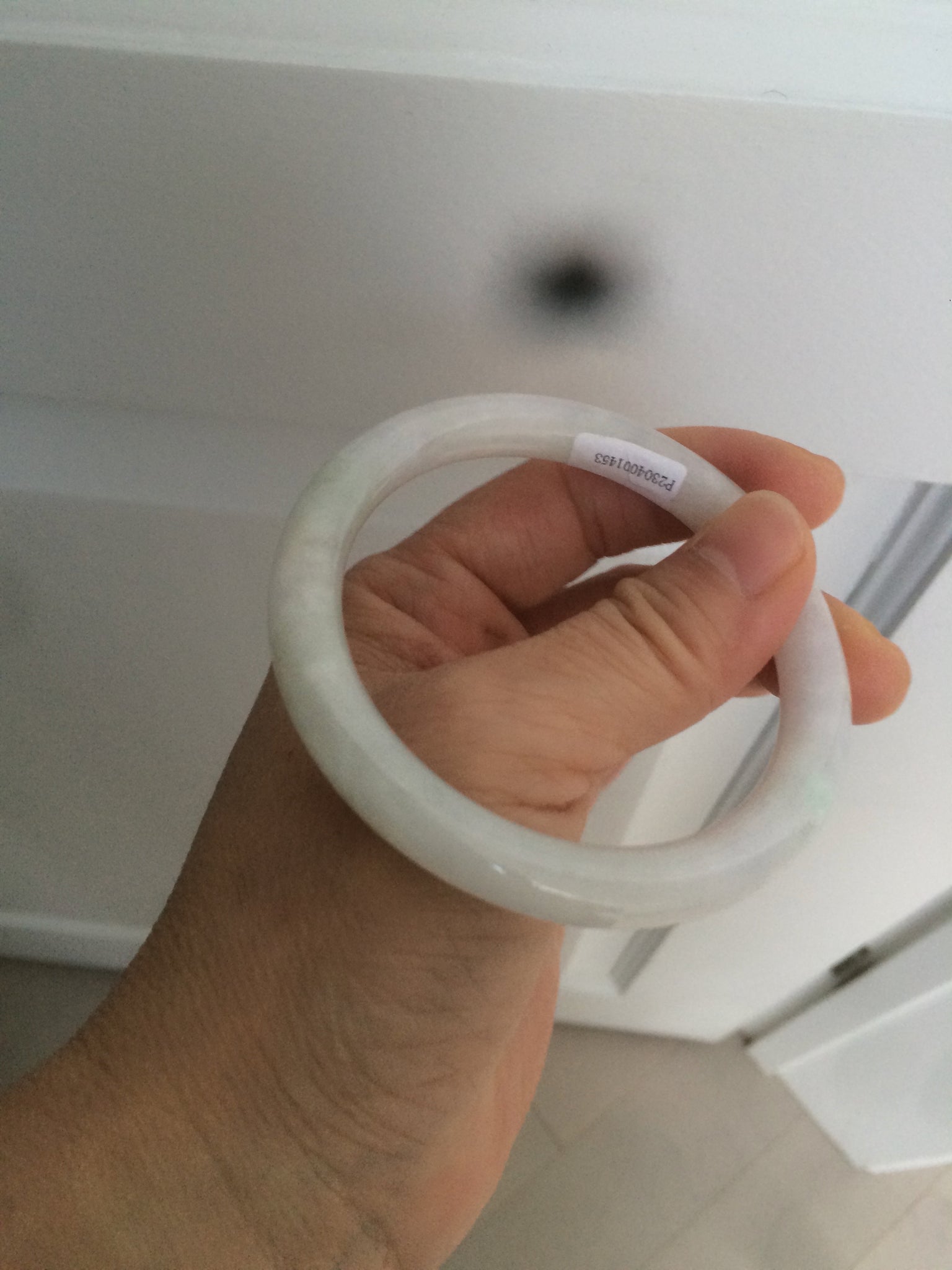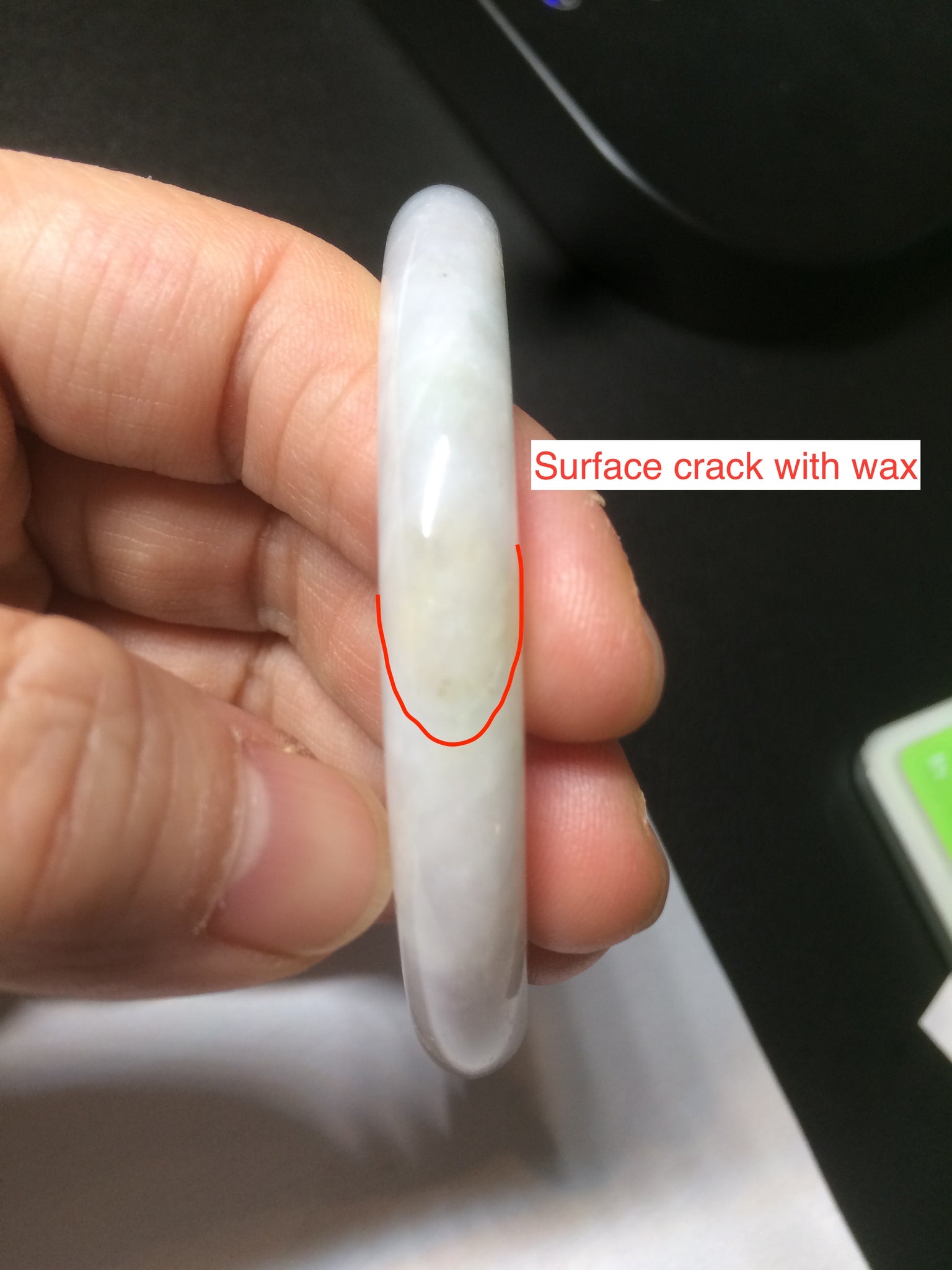 Some cracks with wax, one of them is ring shape, another one is U shape. The bangle is still solid. Some small rough surface with a little bit of wax. Some cotton spots and cotton lines.