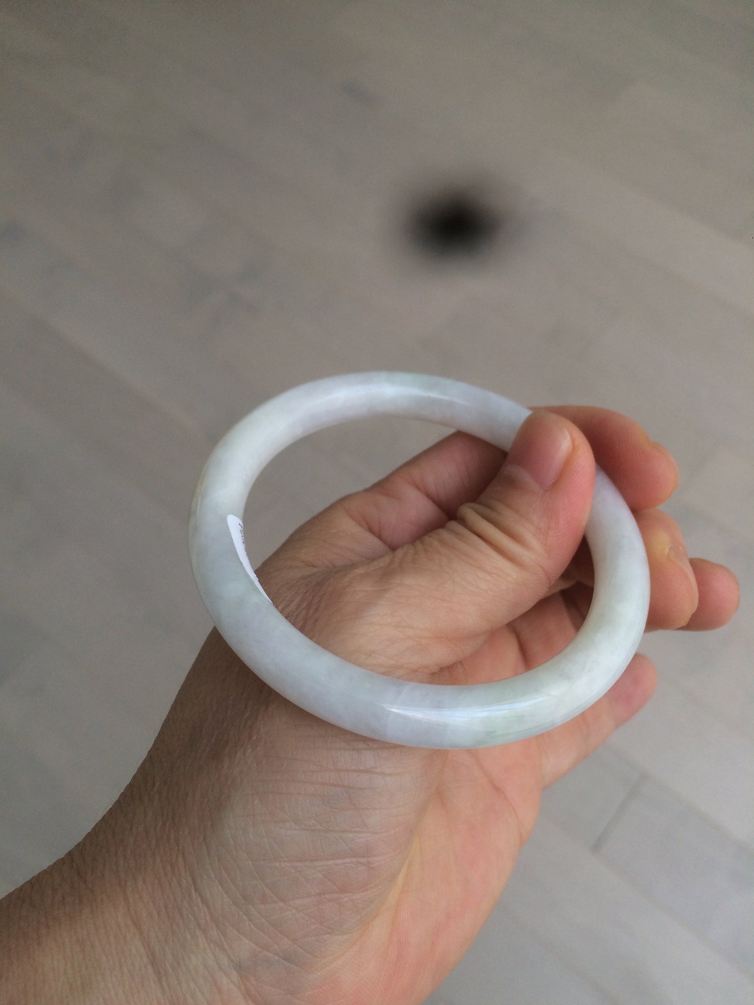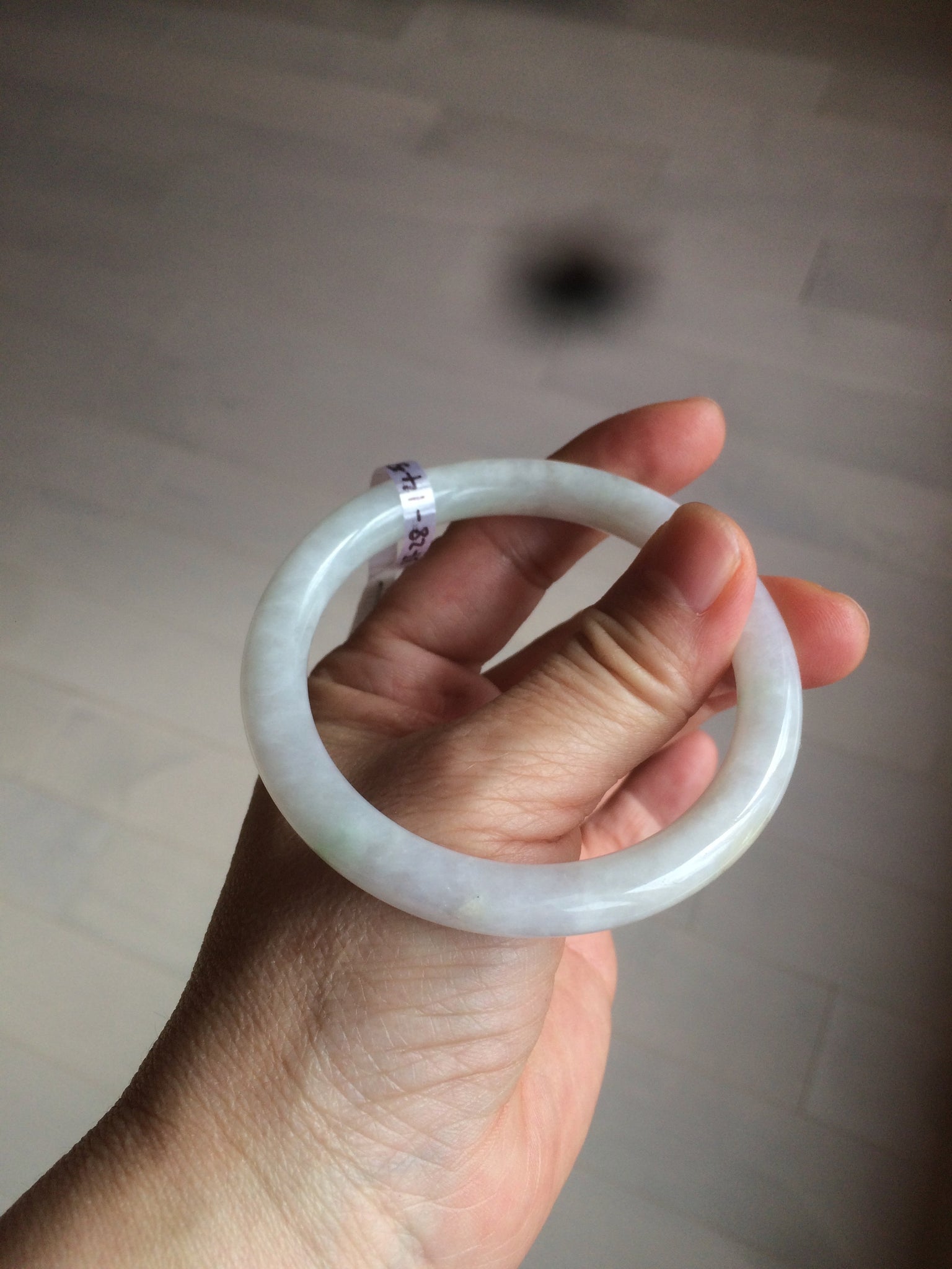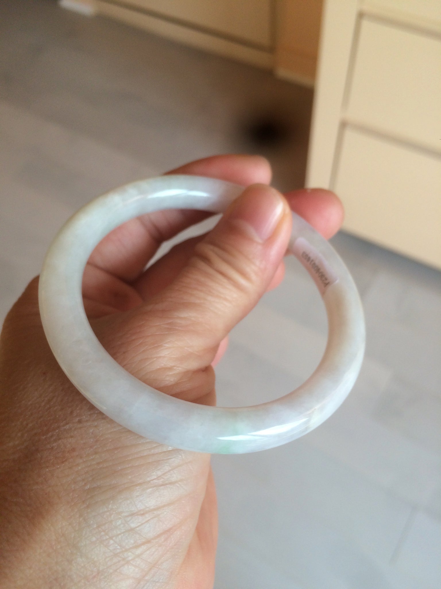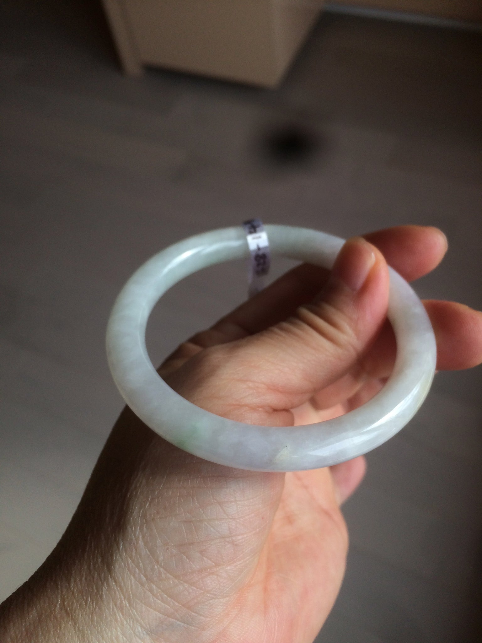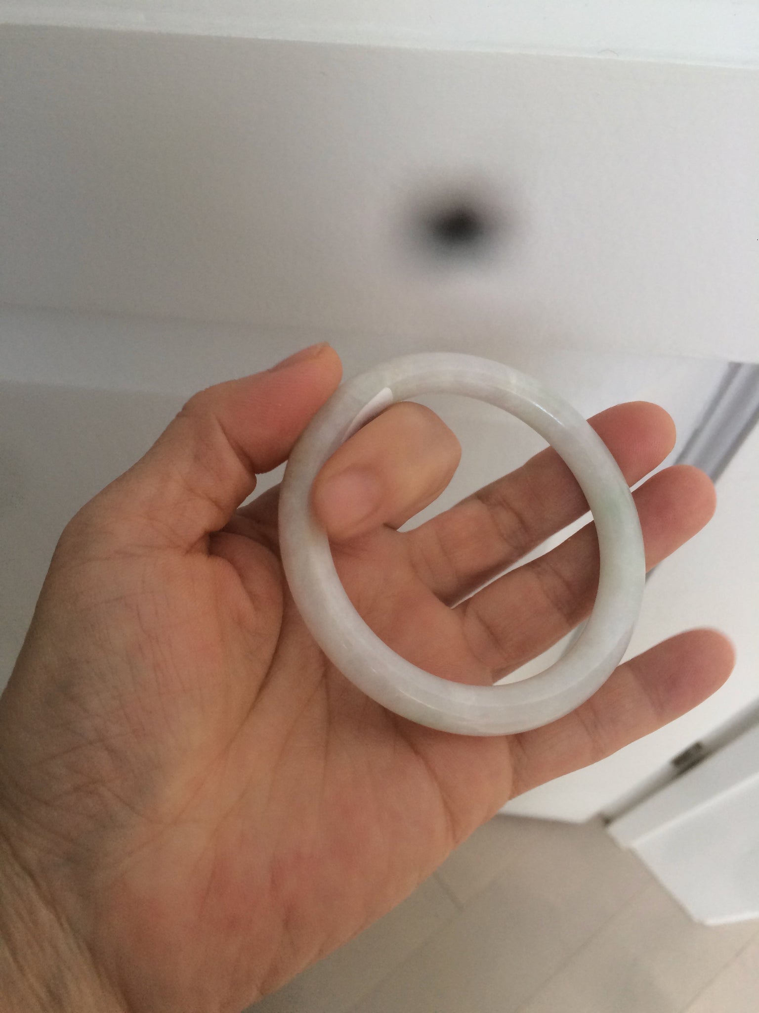 Some cracks with wax, one of them is ring shape, another one is U shape. The bangle is still solid. Some small rough surface with a little bit of wax. Some cotton spots and cotton lines.