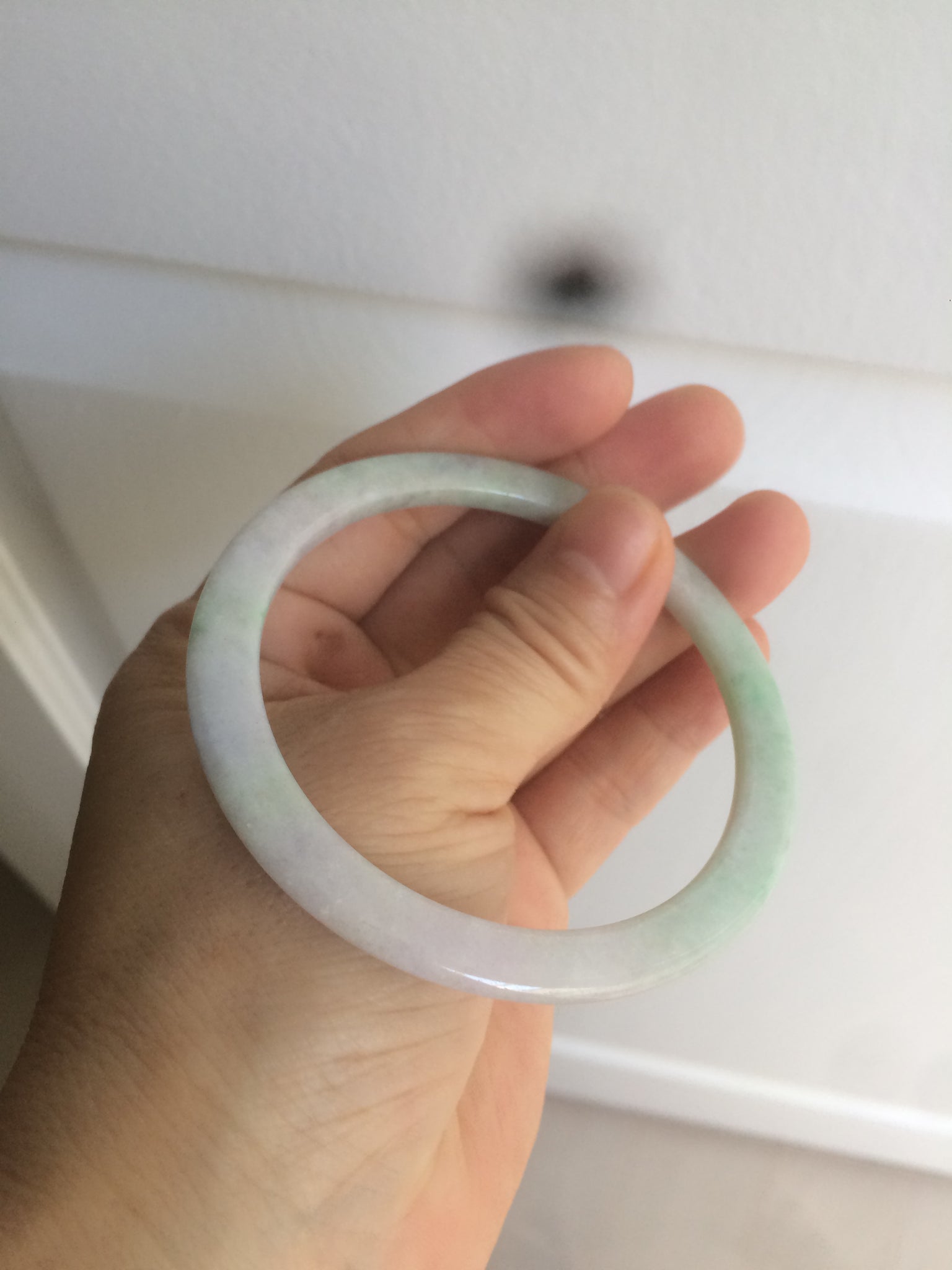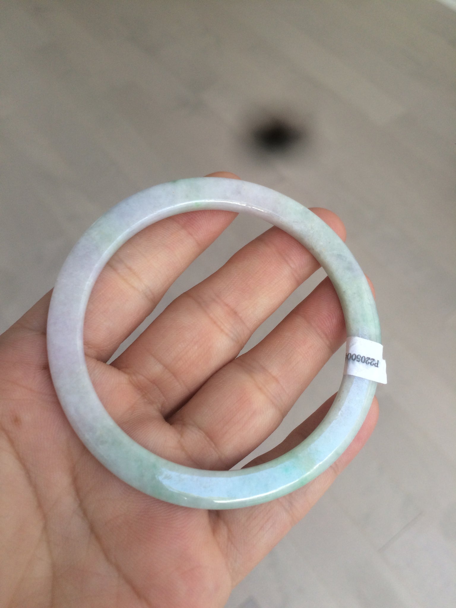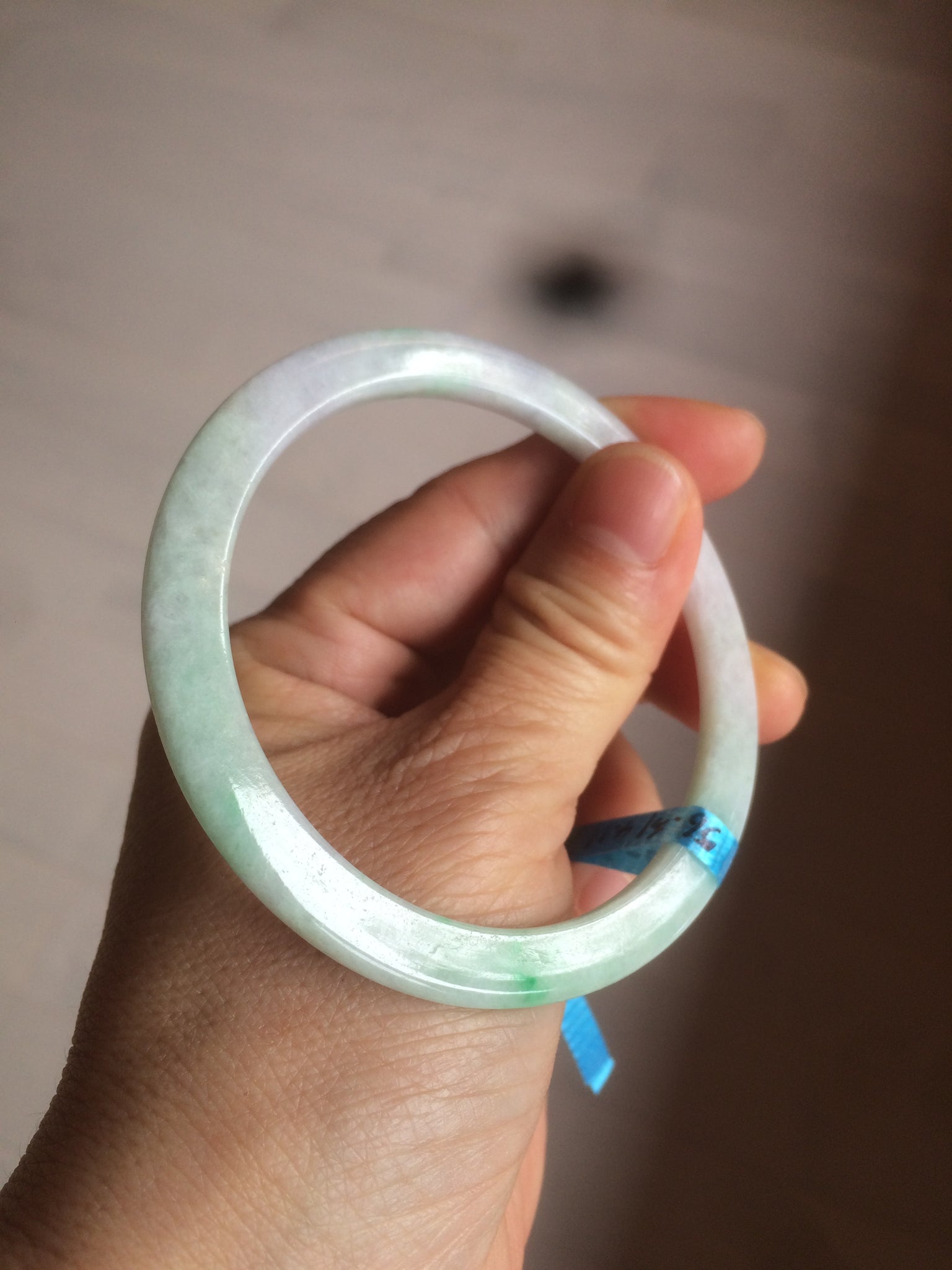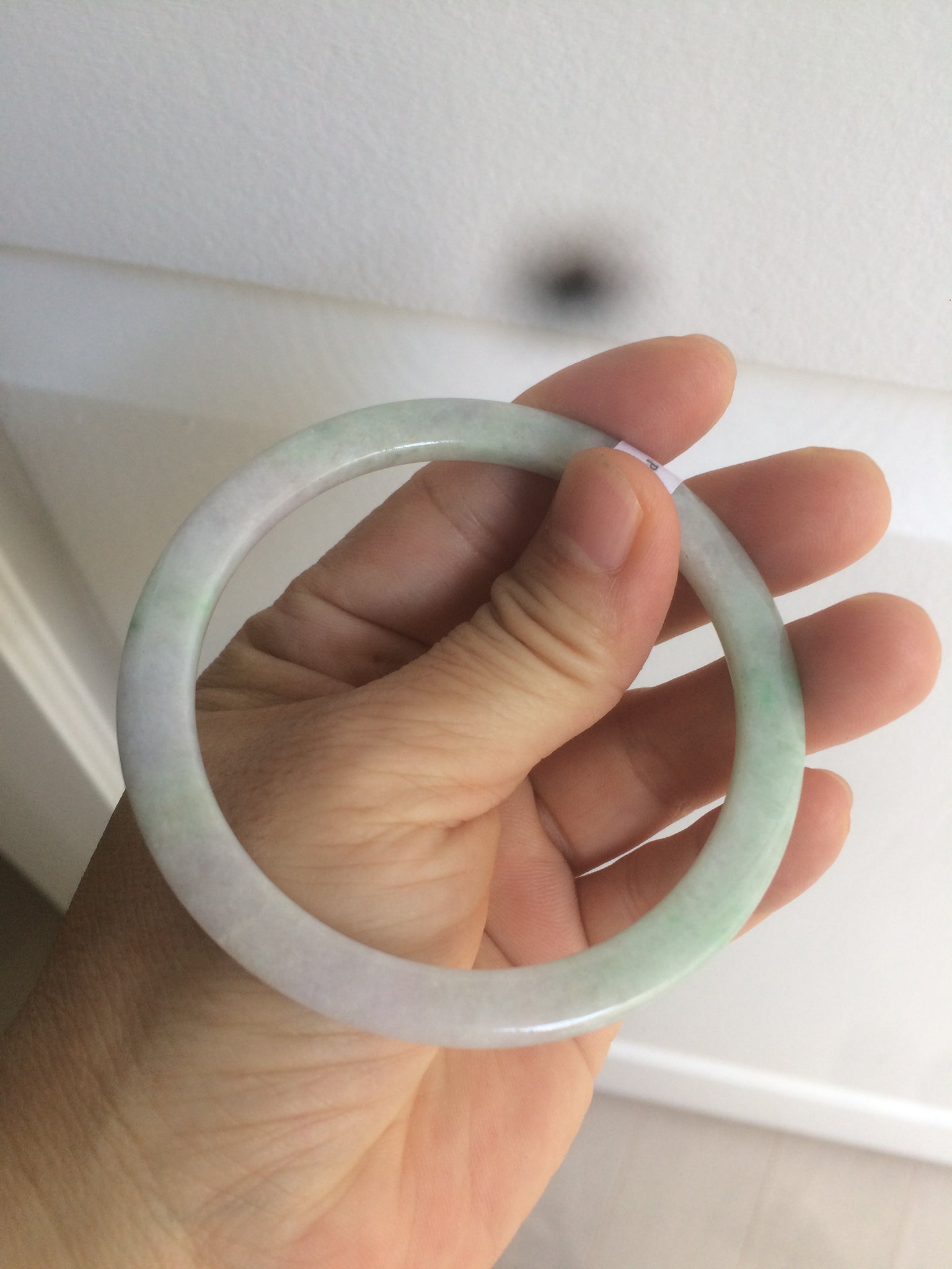 One cut-through crack with wax. This will decrease the firmness of the bangle. Tight fit is NOT recommended. If your size is bigger than 56.5mm. Please don't order. Some tiny rough surfaces or notches. The purple is lighter than in the photos.