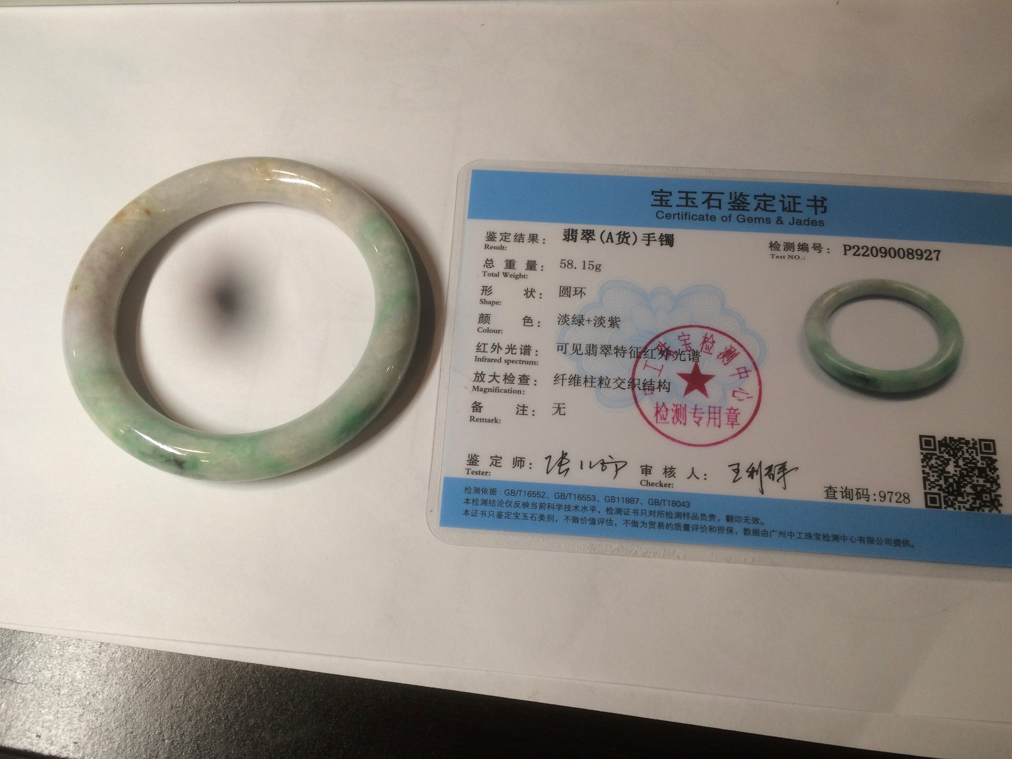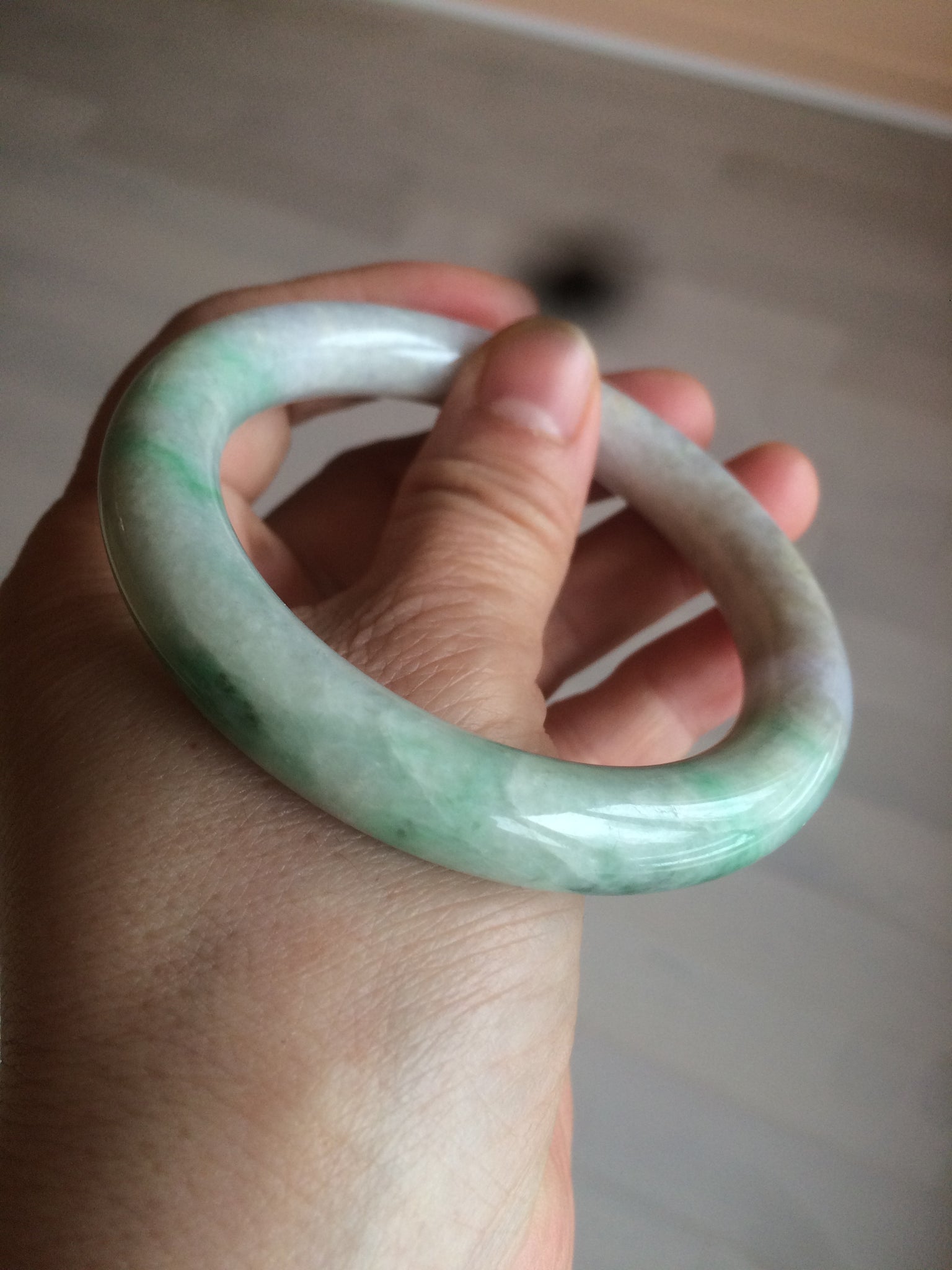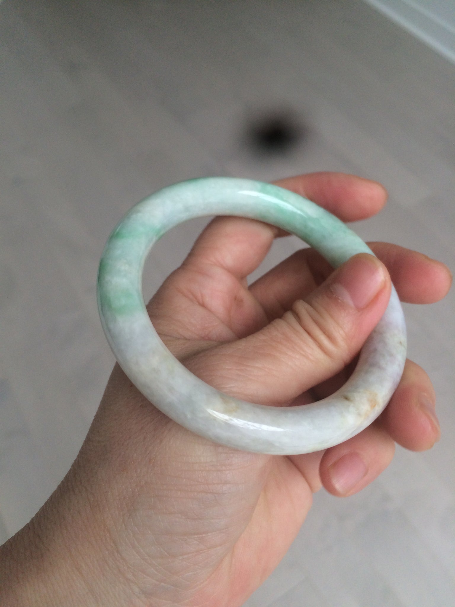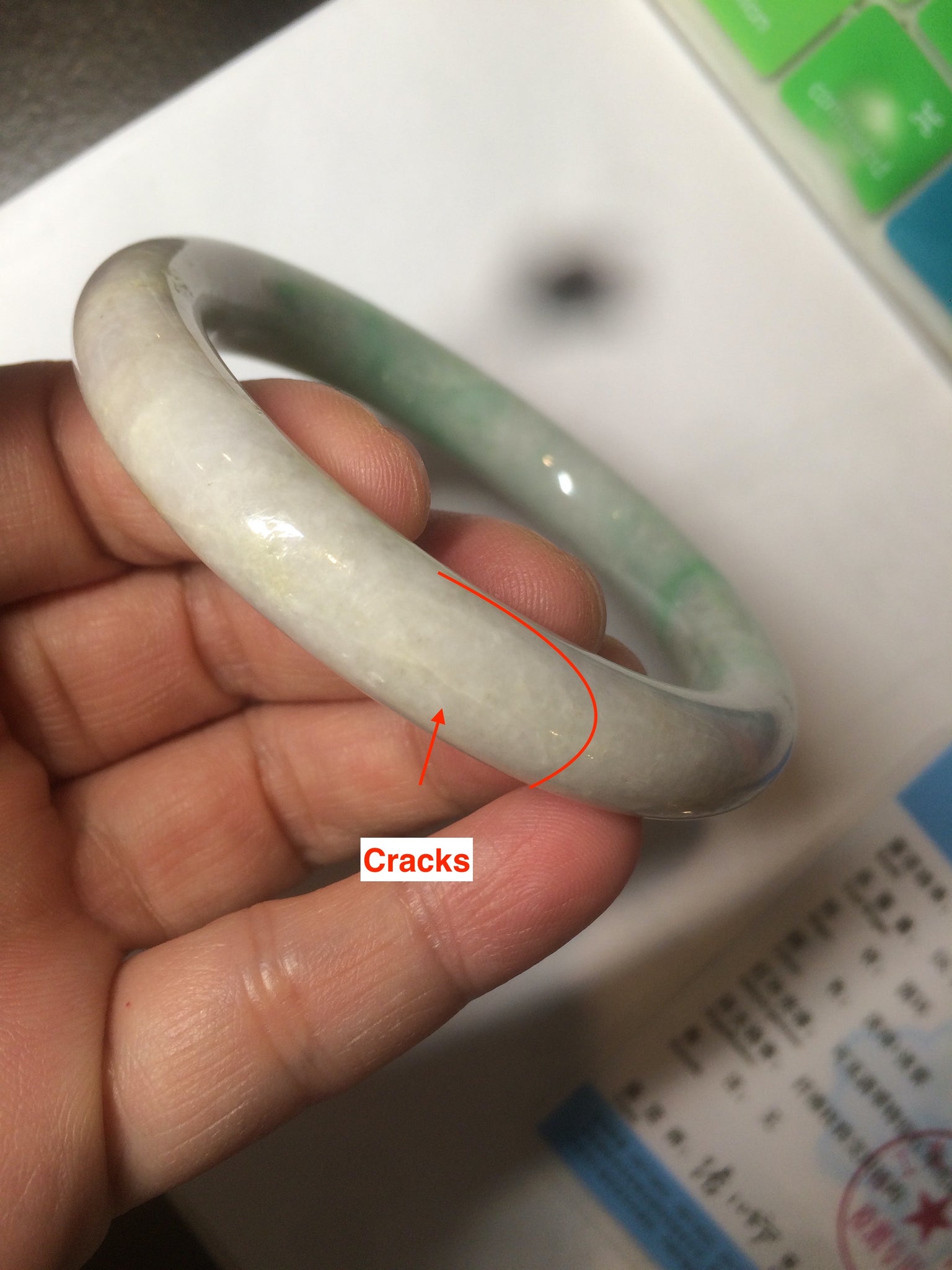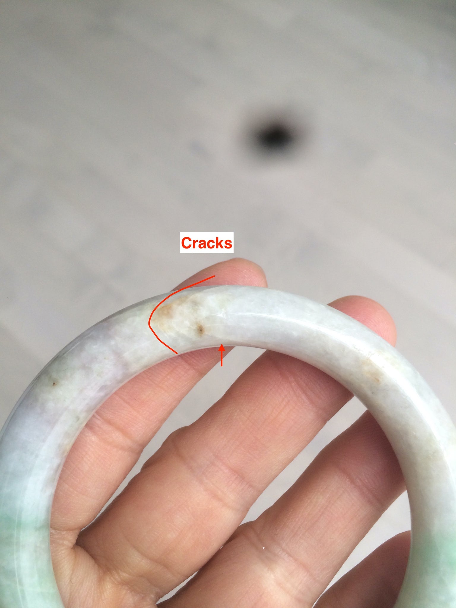 Some cracks. Photos may not show all. Some cotton lines. The bangle is still firm(guaranteed). Some rough surfaces. Cotton areas and spots. No transparent.