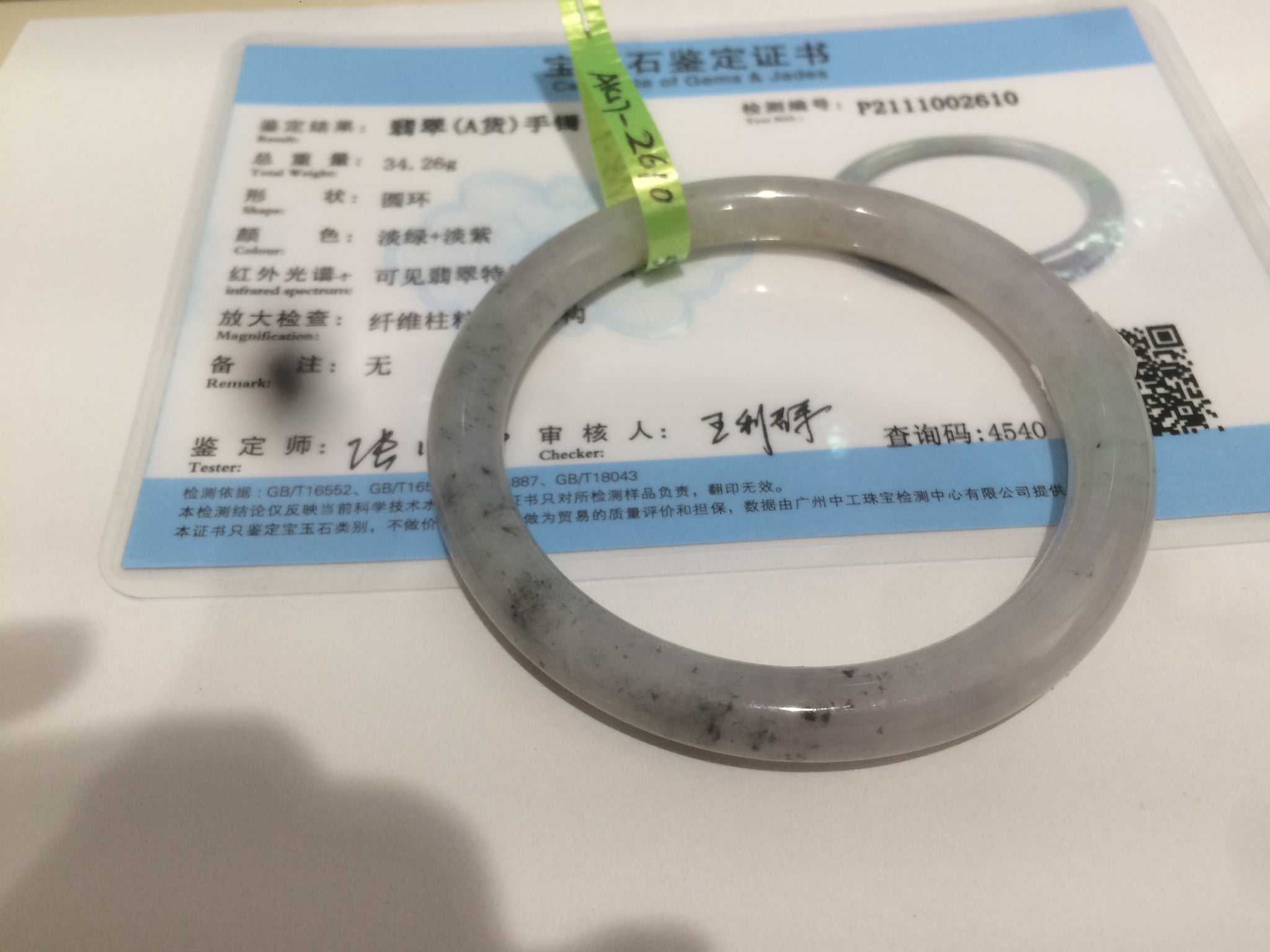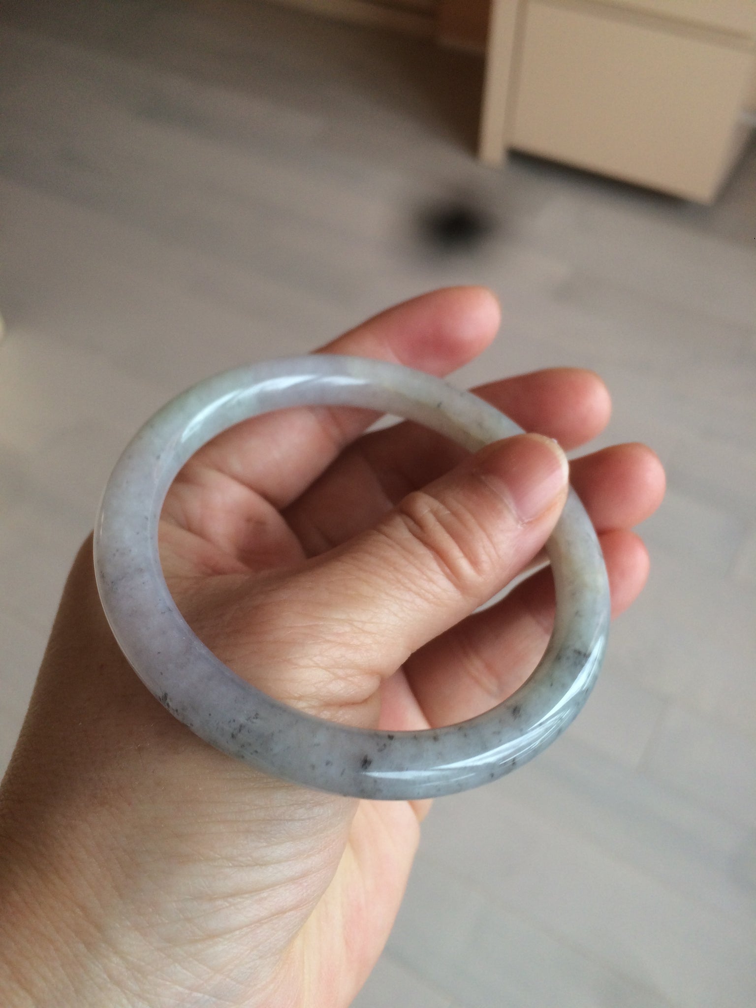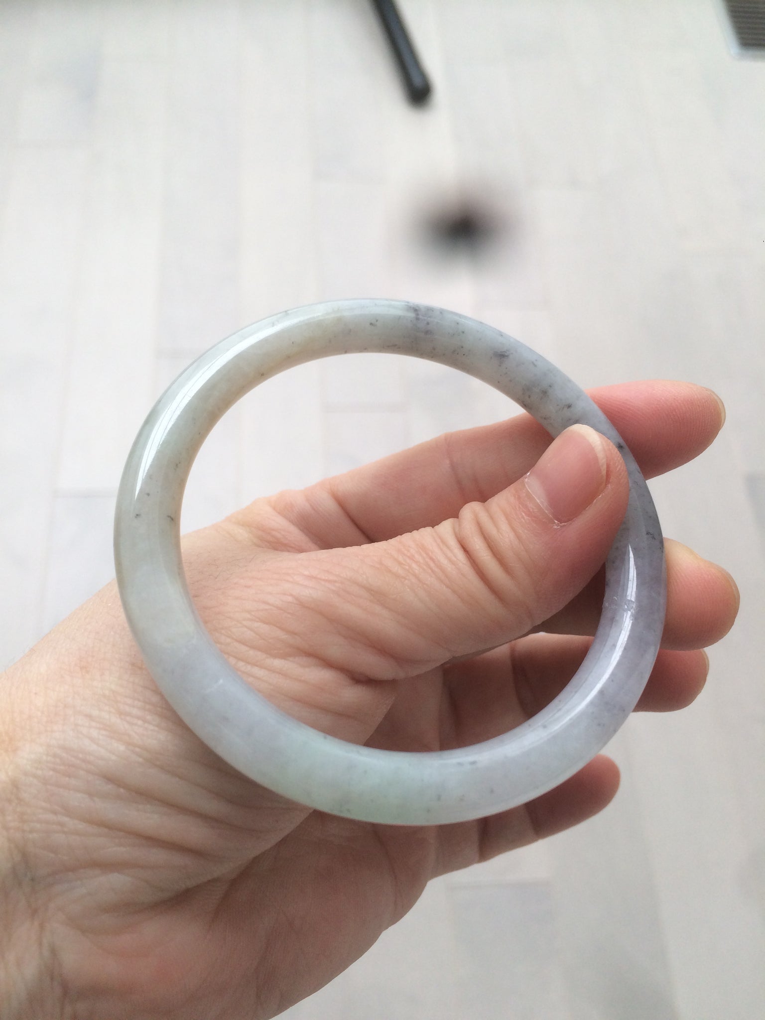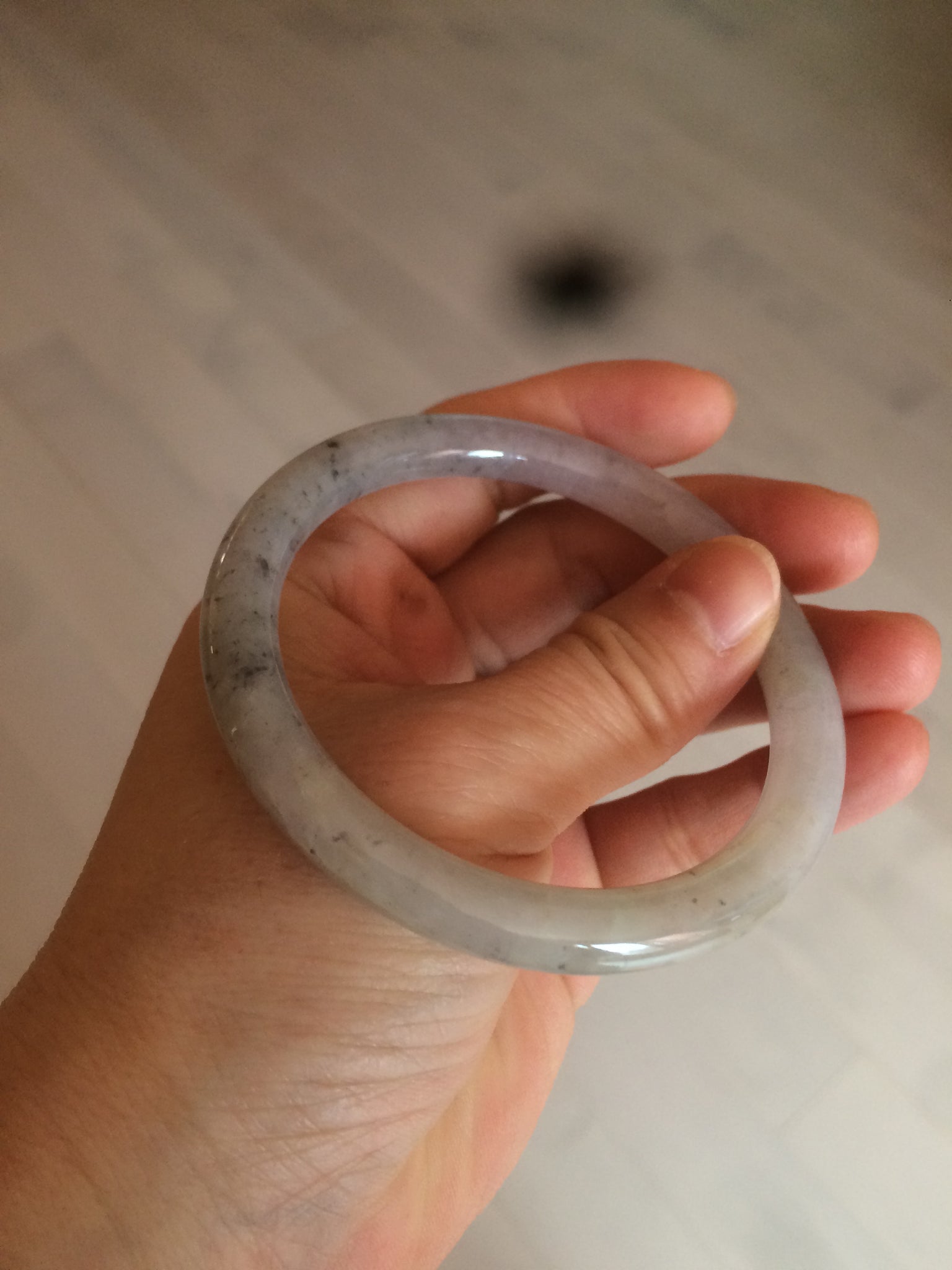 圆条淡紫飘乌鸡翡翠手镯,沉静低调, 辟邪招财。