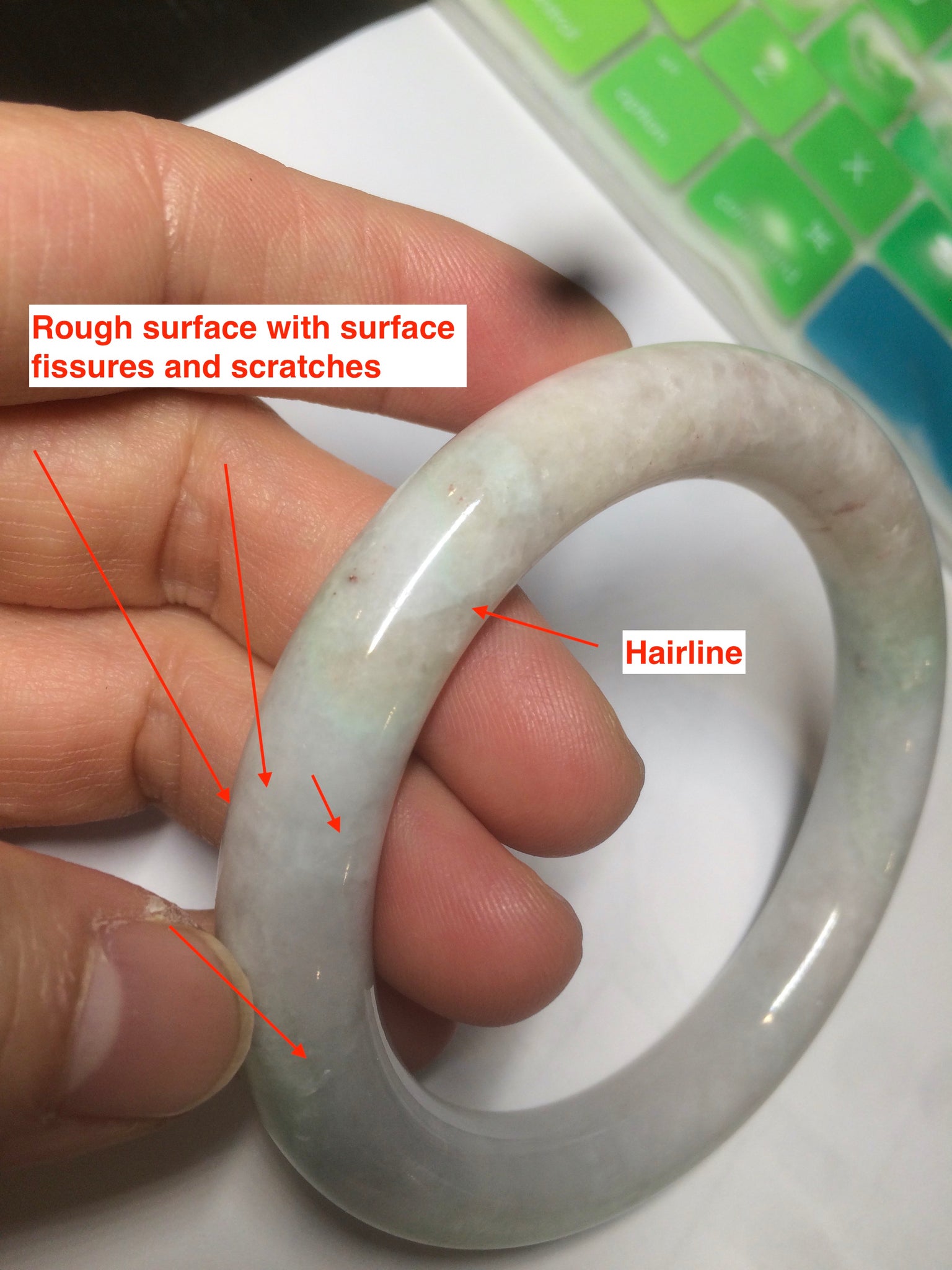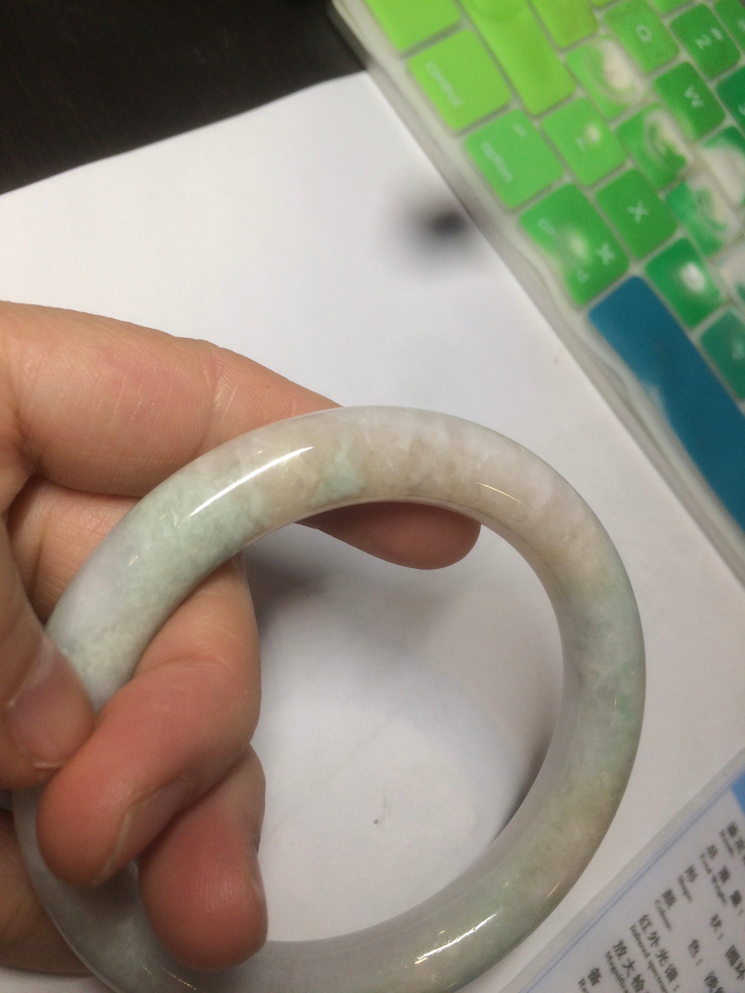 When a bangle has green, yellow, and purple, it means "Fu Lu Shou", Blessing, good fortune, and happy long life. It is very rare.