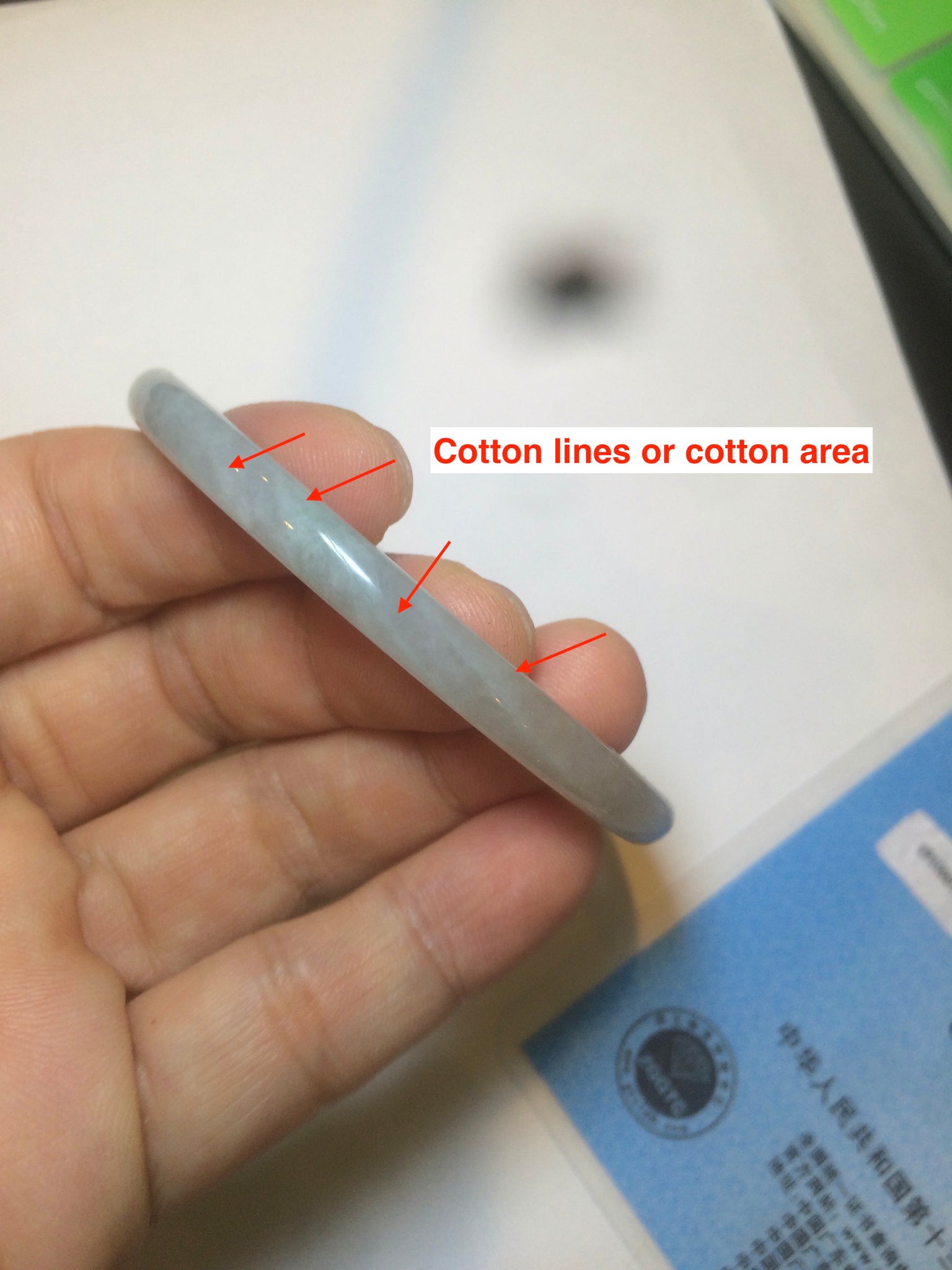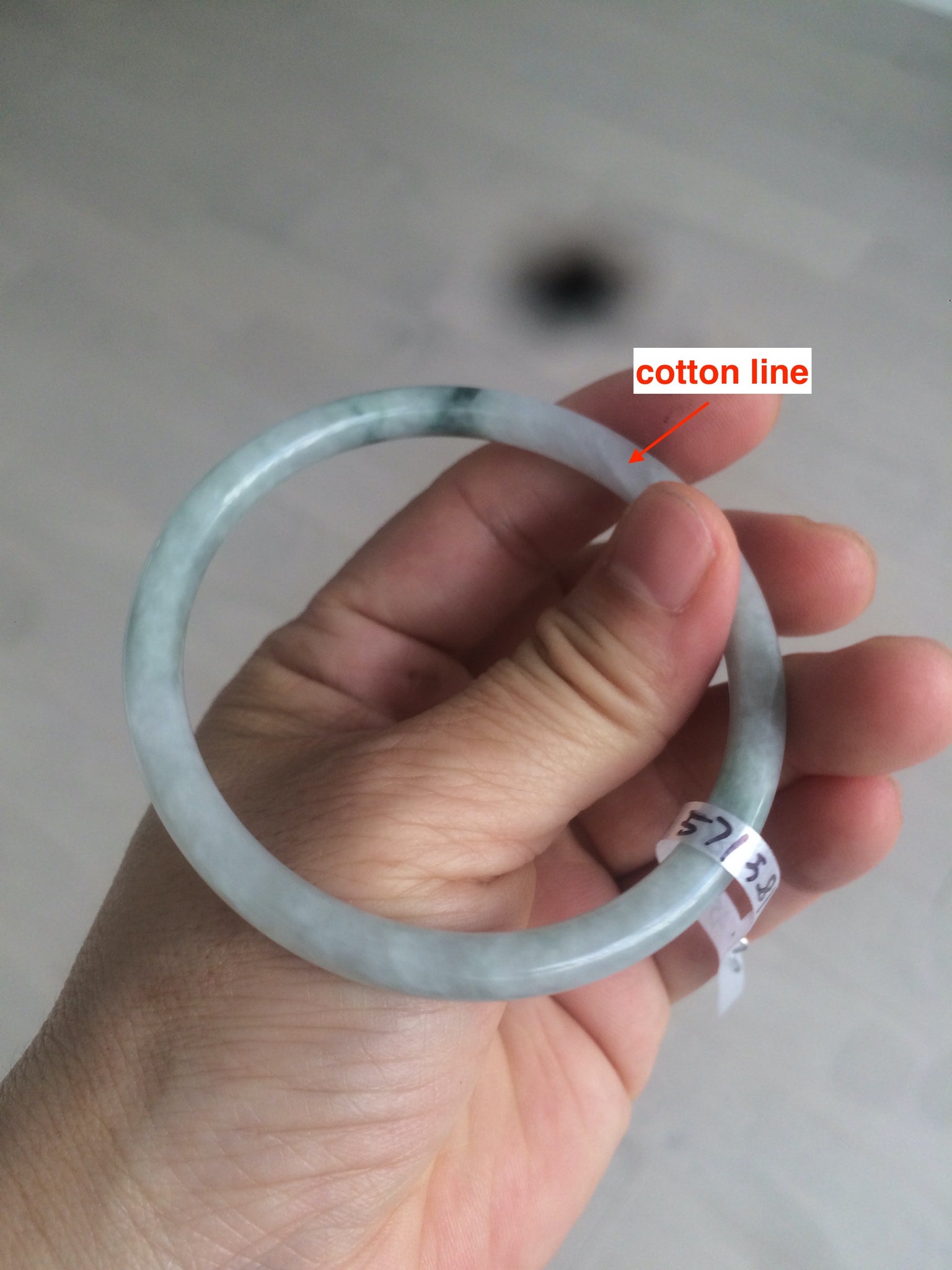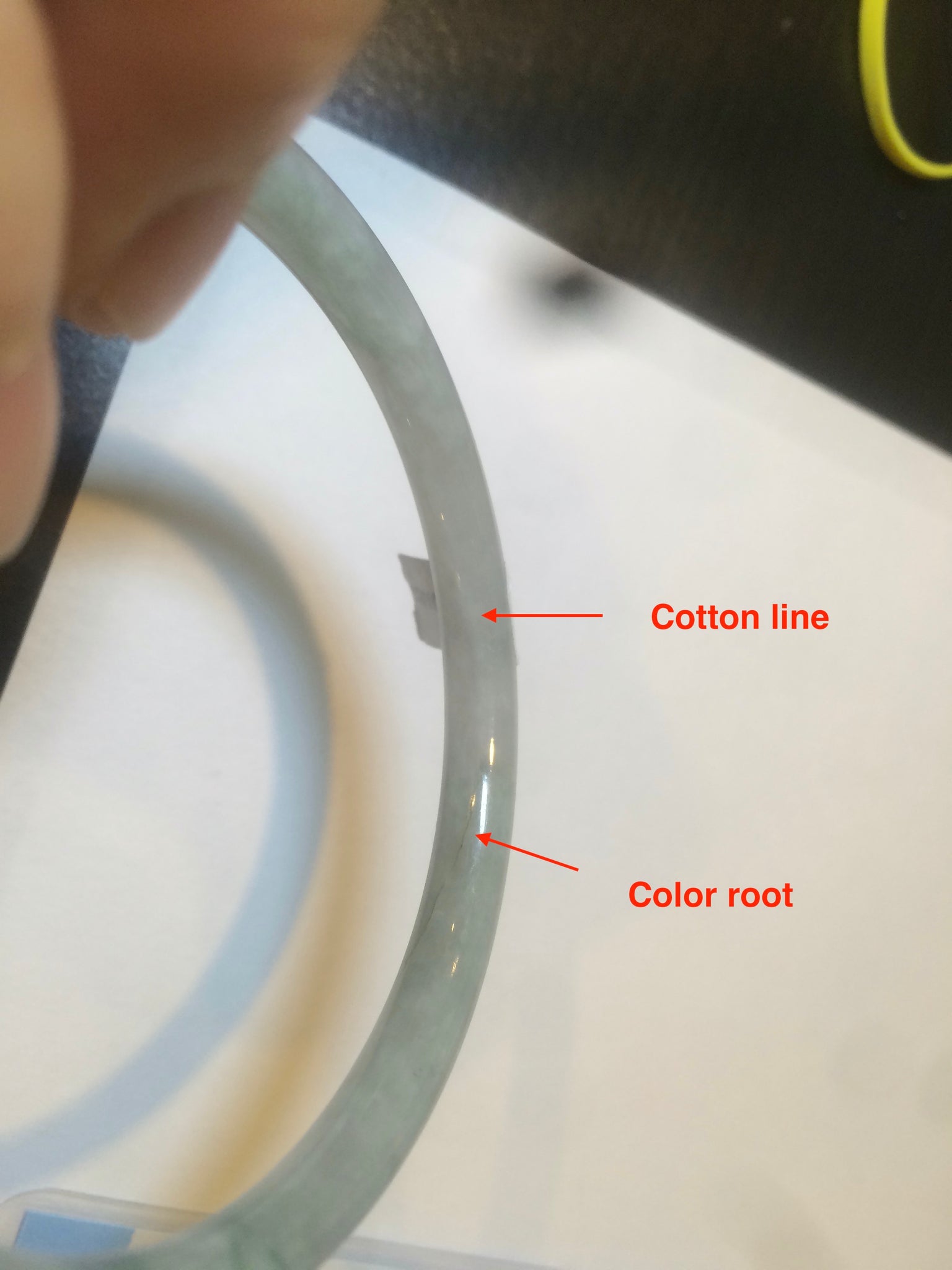 One crack. Almost around the bangle. One surface scratch. Some rough surfaces. One color root.