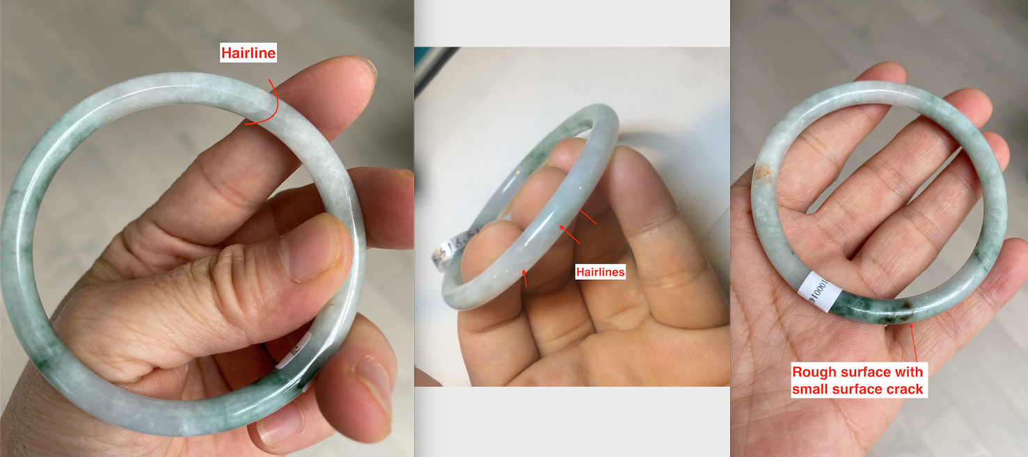 One rough surface with small surface cracks. Some hairlines(more than 6, photos may not show all of them).