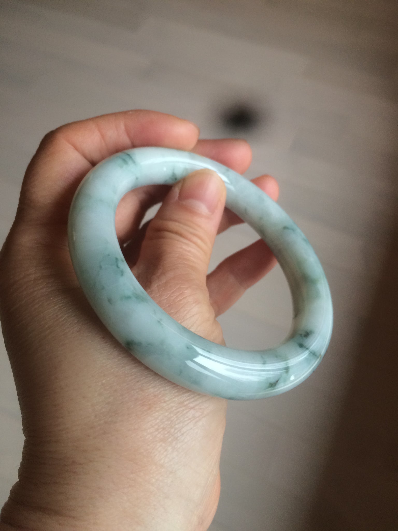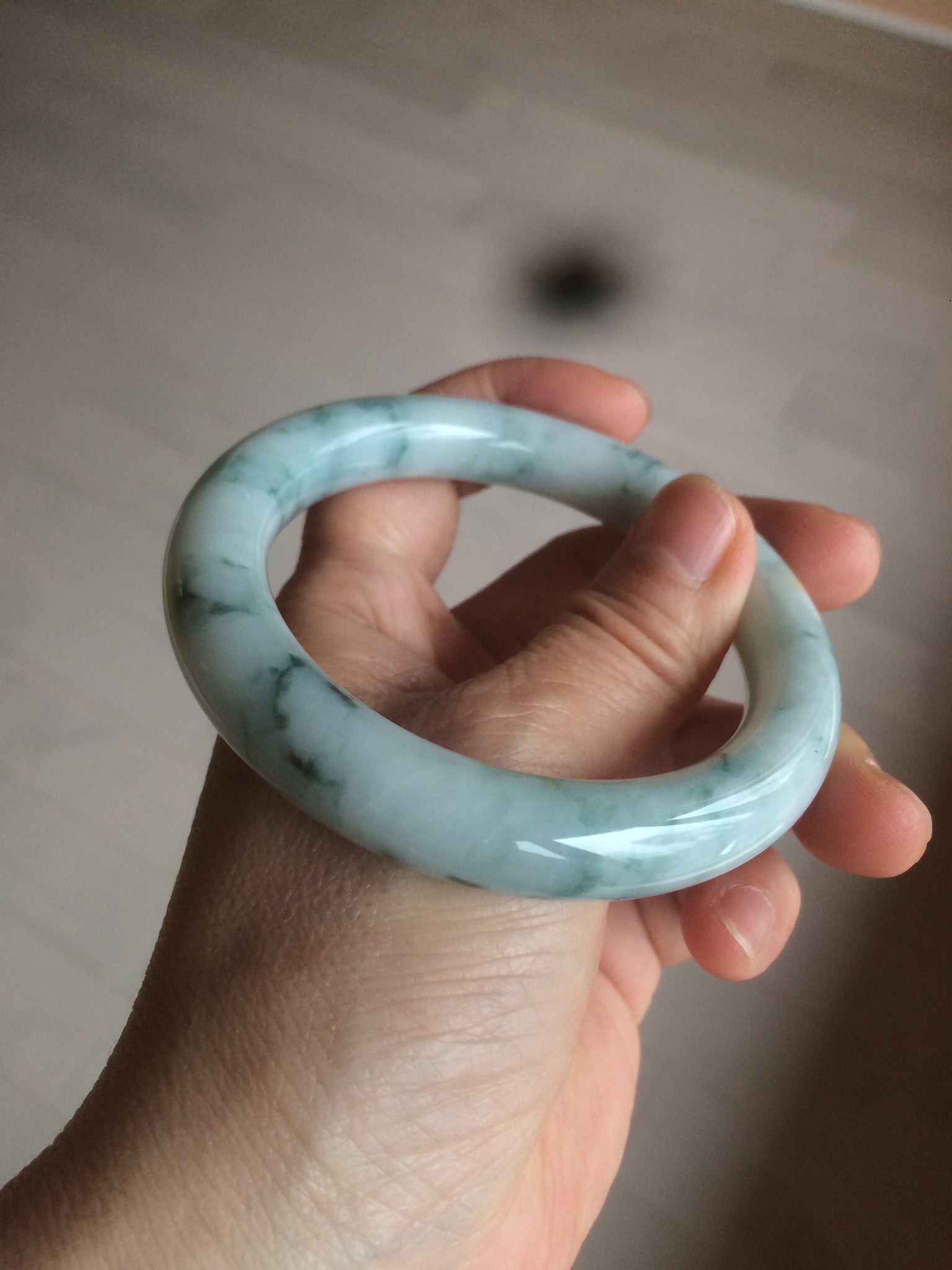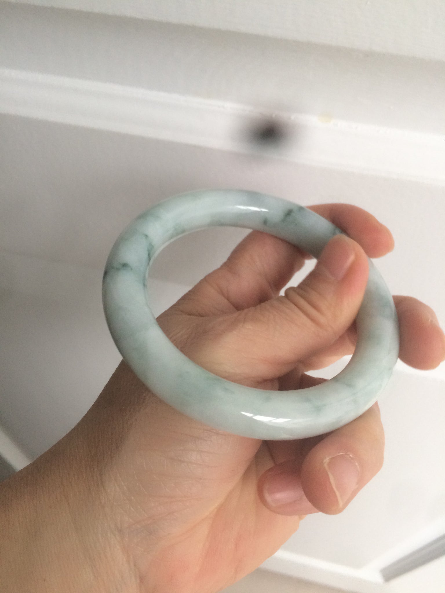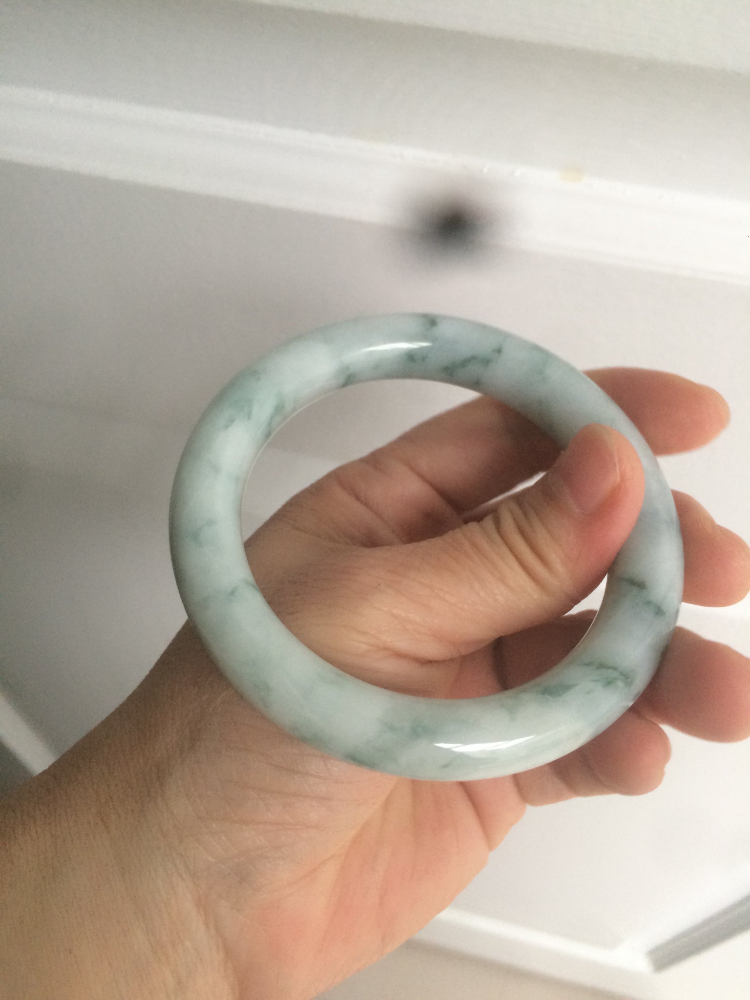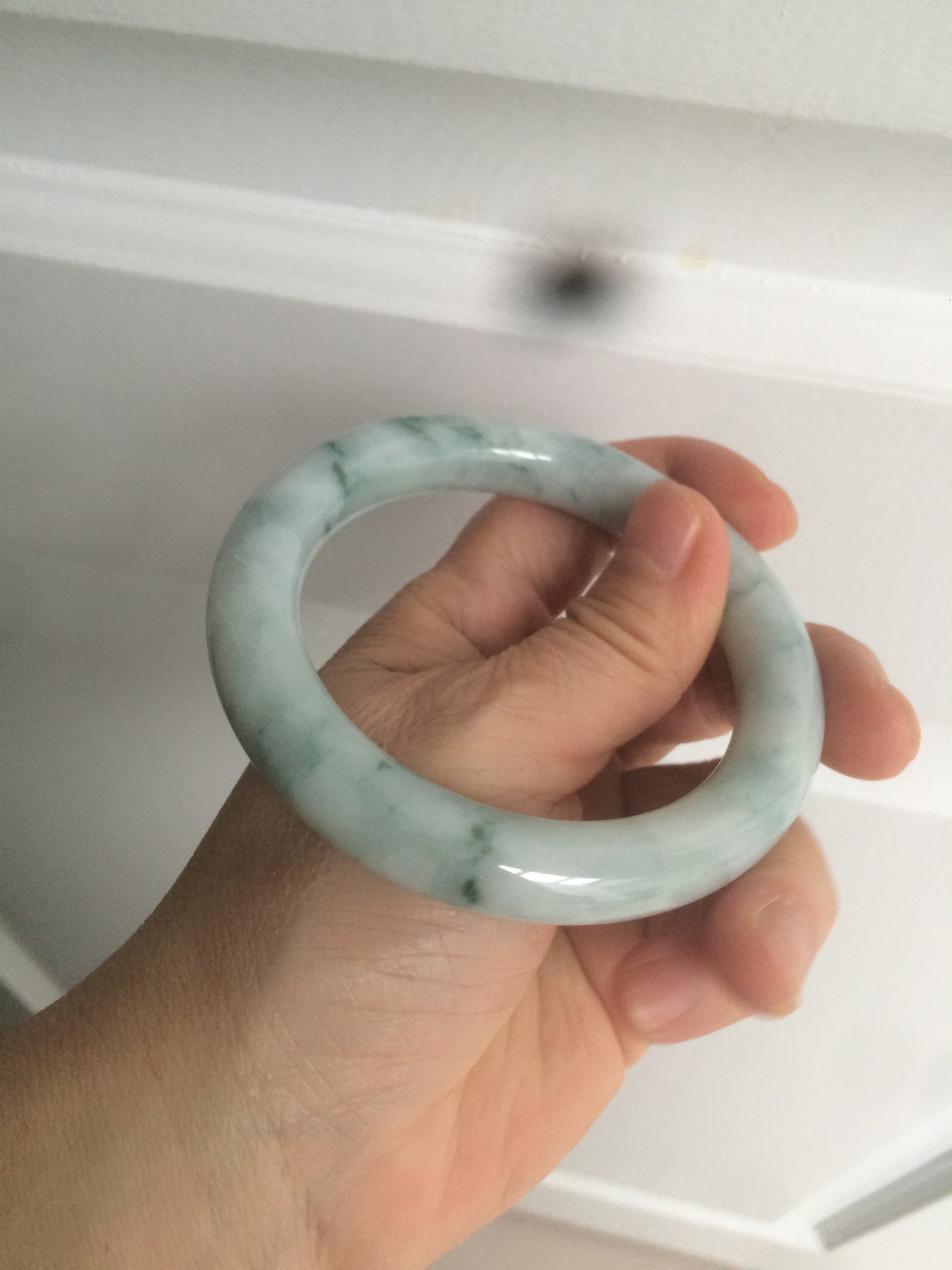 Two cracks. One is small with a little bit of wax. Another one cuts deep, almost around the bangle. But is it not around the bangle crack. The bangle is still firm. Some hairlines or natural structure lines. Not transparent. The yellow jade is just a tiny area. Cotton spots and areas.