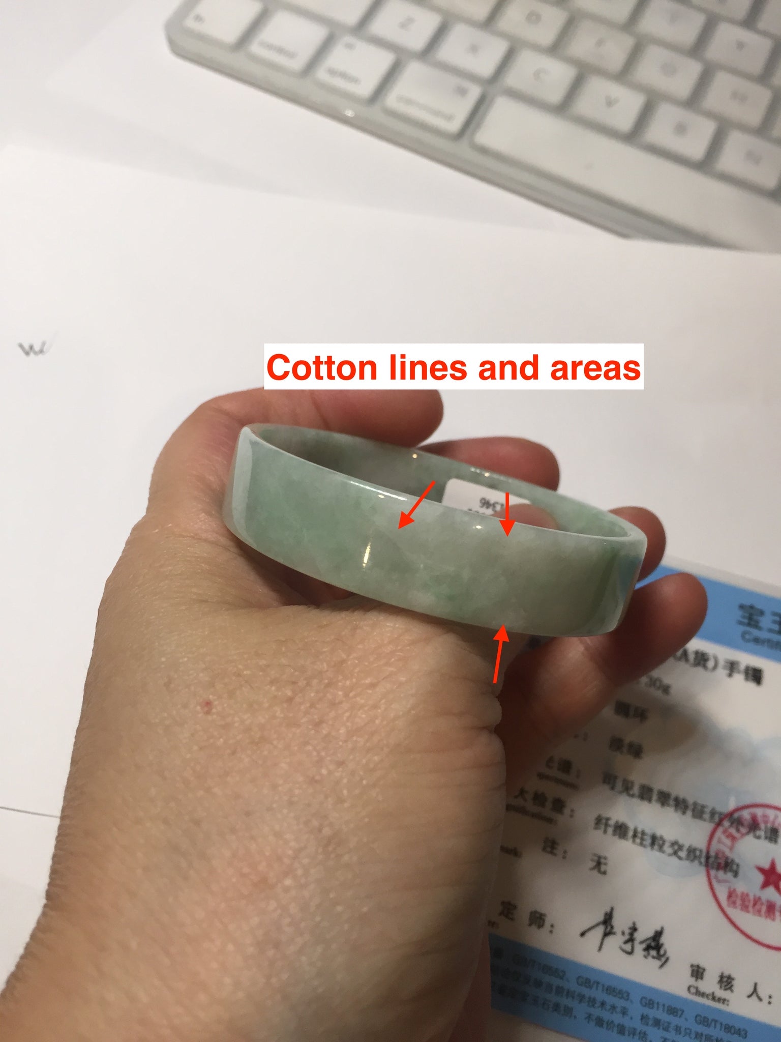No crack. Some small rough surfaces. Some cotton lines and cotton areas. it is not transparent or watery.