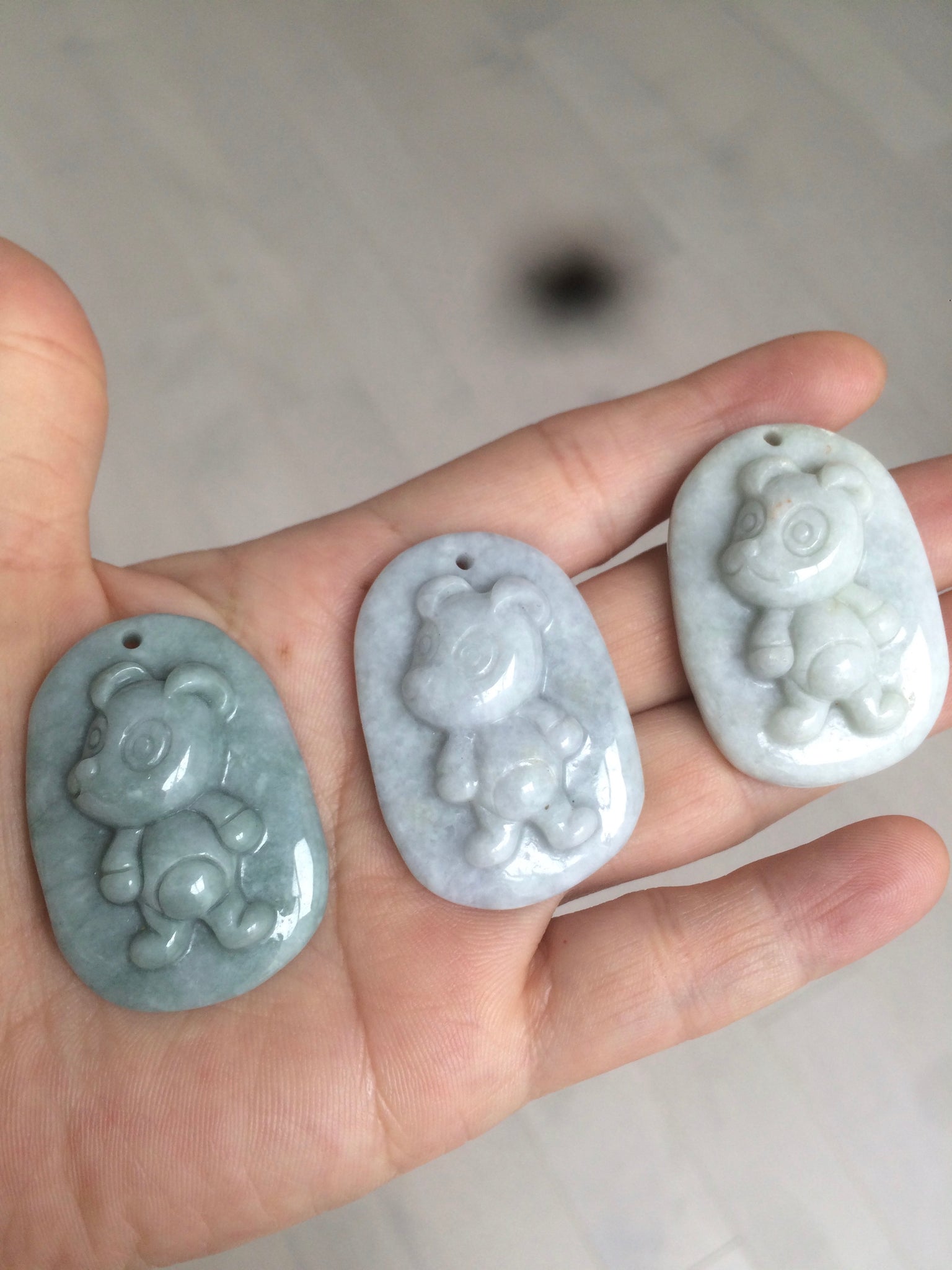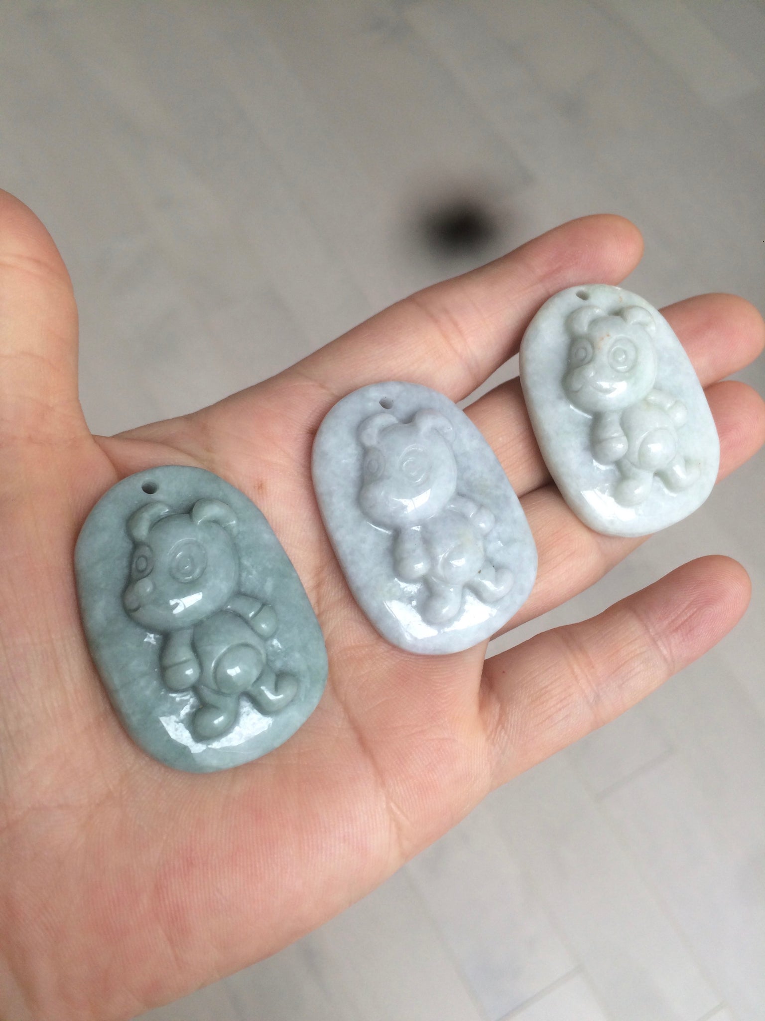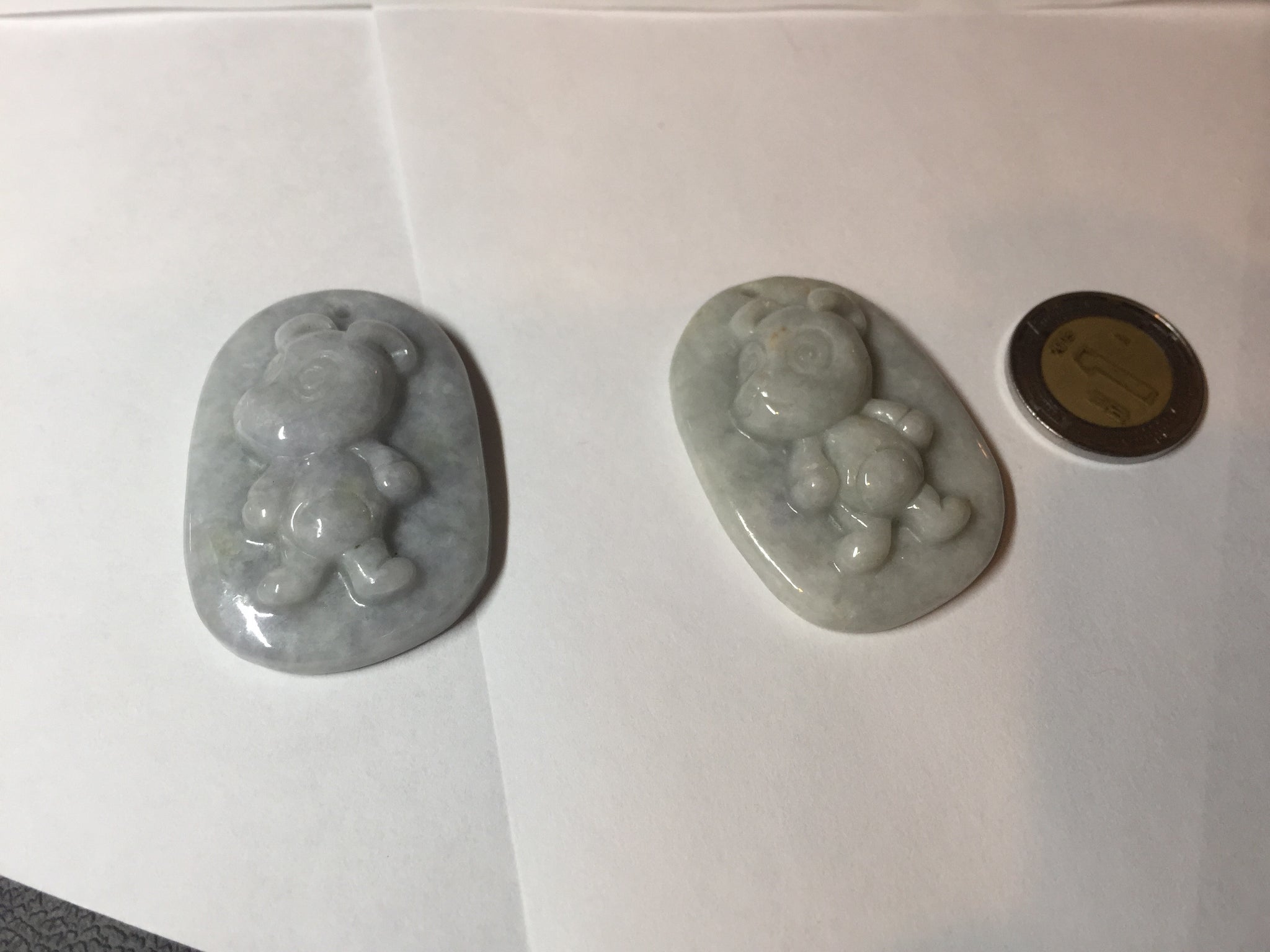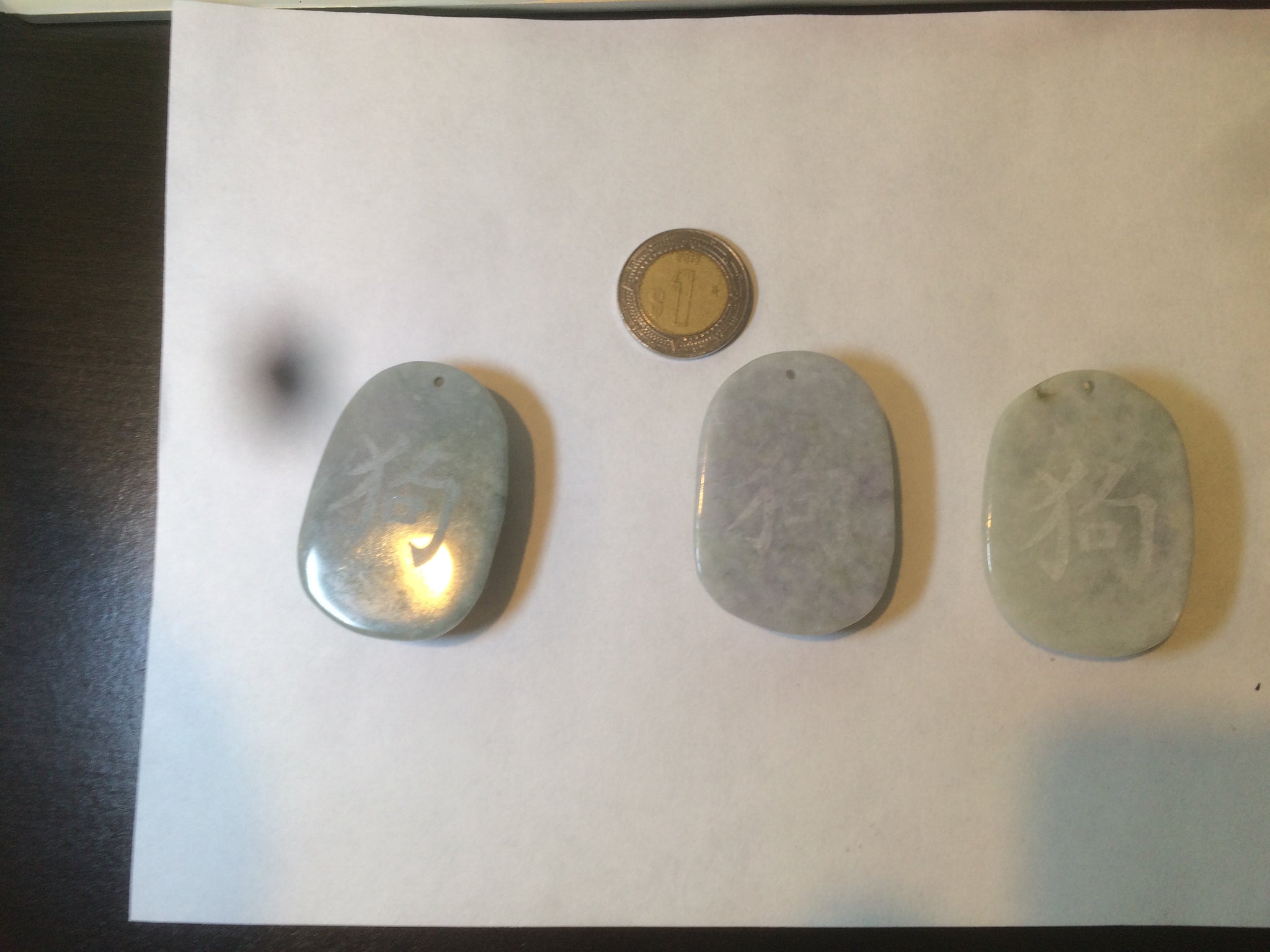 Jadeite jade doggy pendant. Not the high quality of jade. No crack. No hairline. Some cotton spots. Not transparent. Not watery. Not so delicate carved.