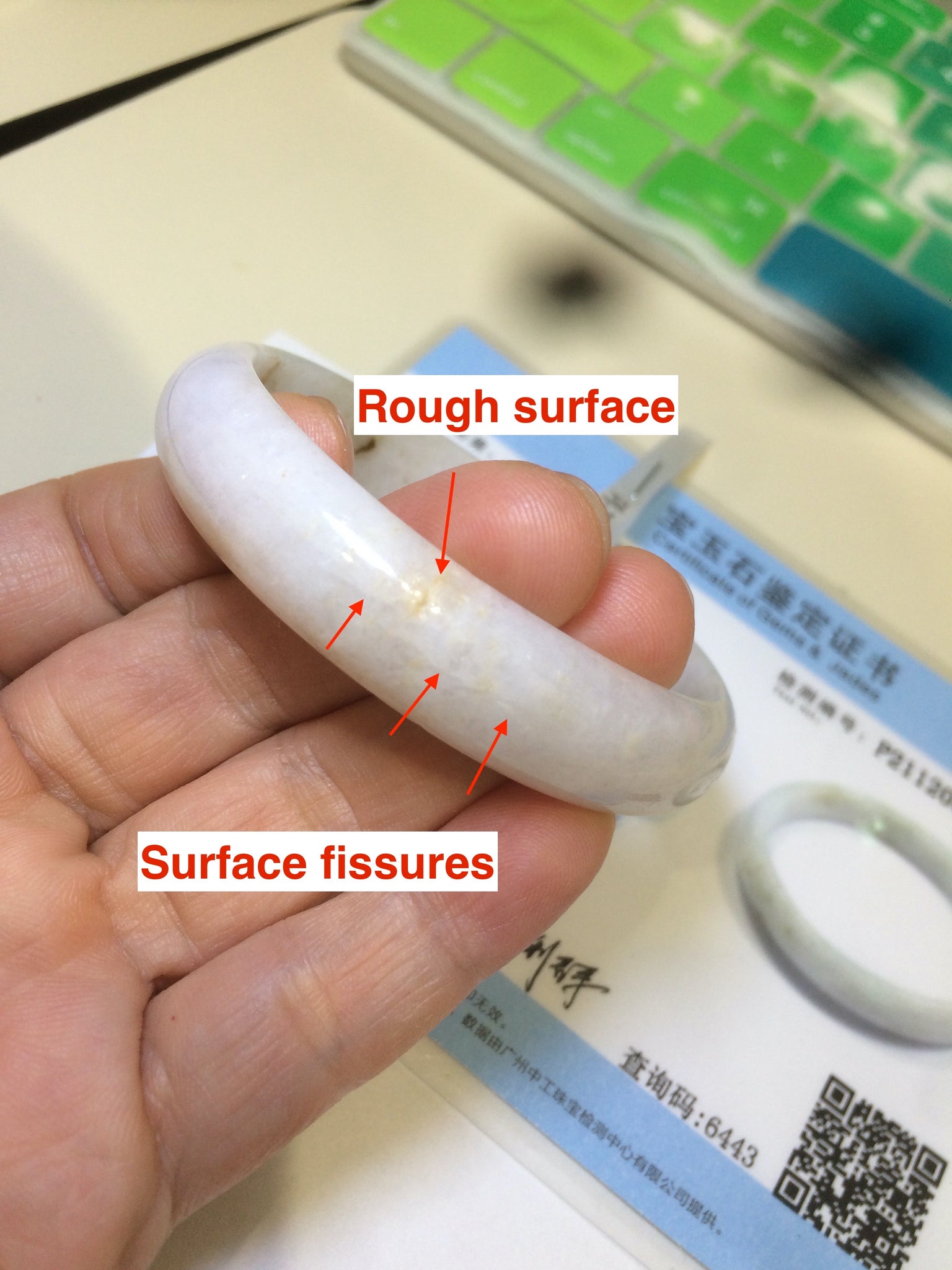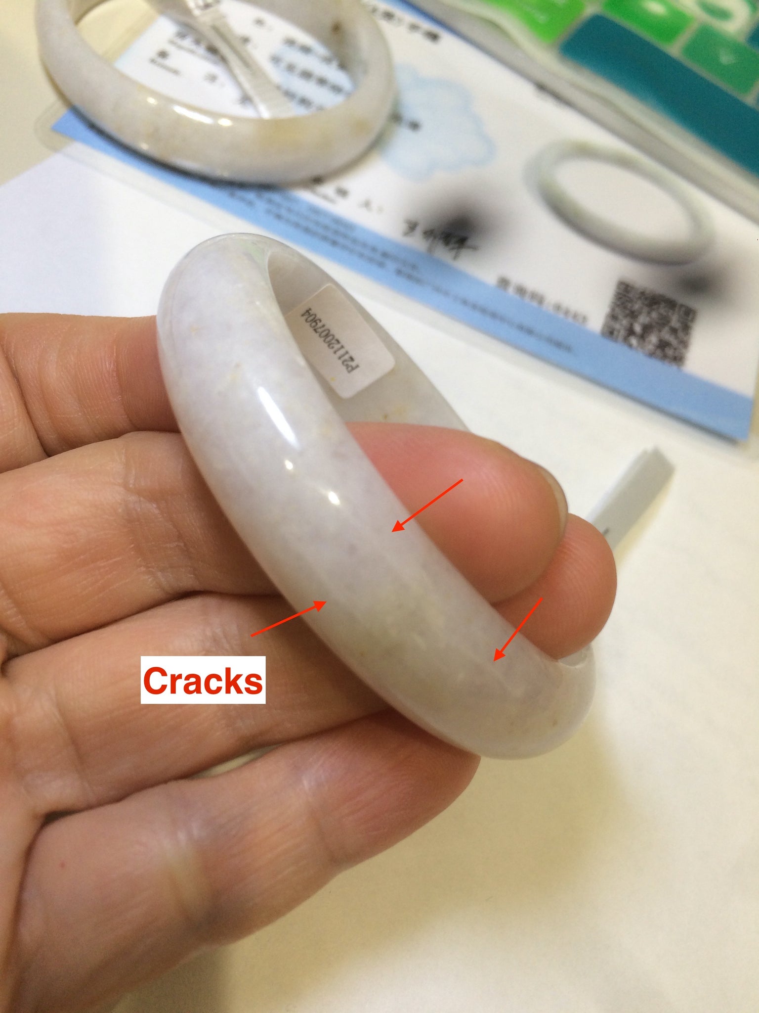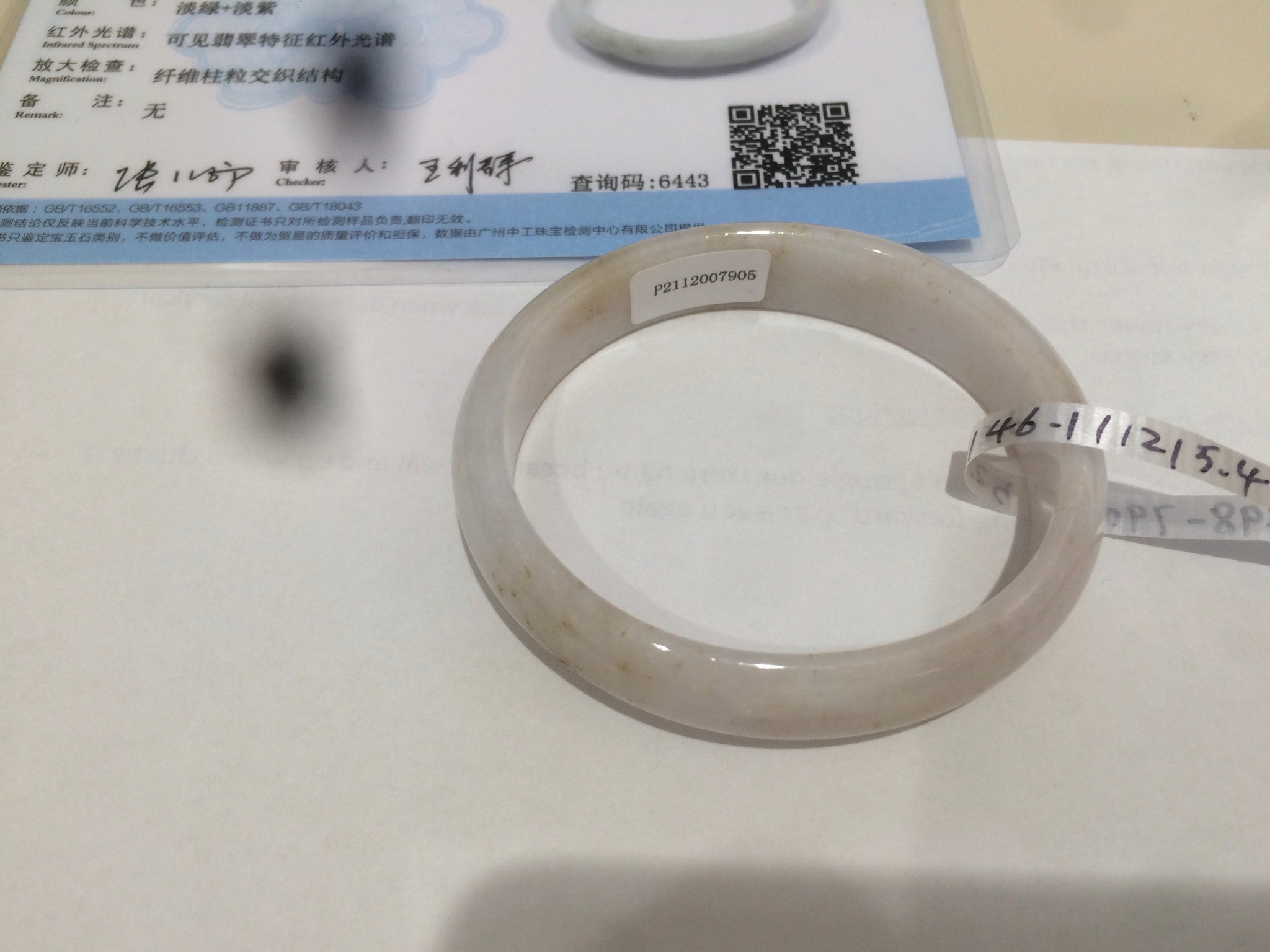 F98-7905 52.4x46.1x12x5.4mm oval shape. equal to round bangle size 48mm.  Cracks, some are long. Rough surfaces. Cotton spots.