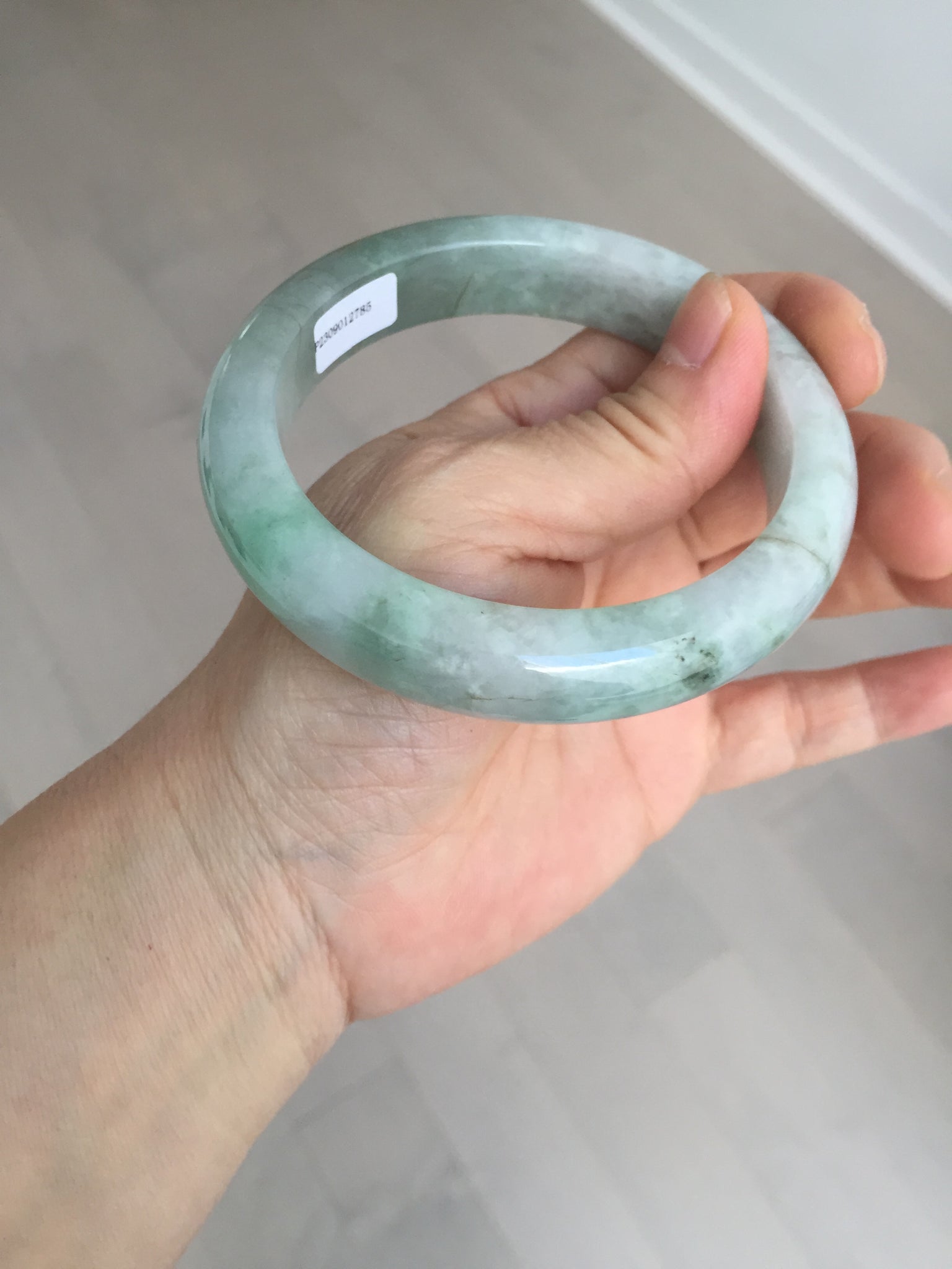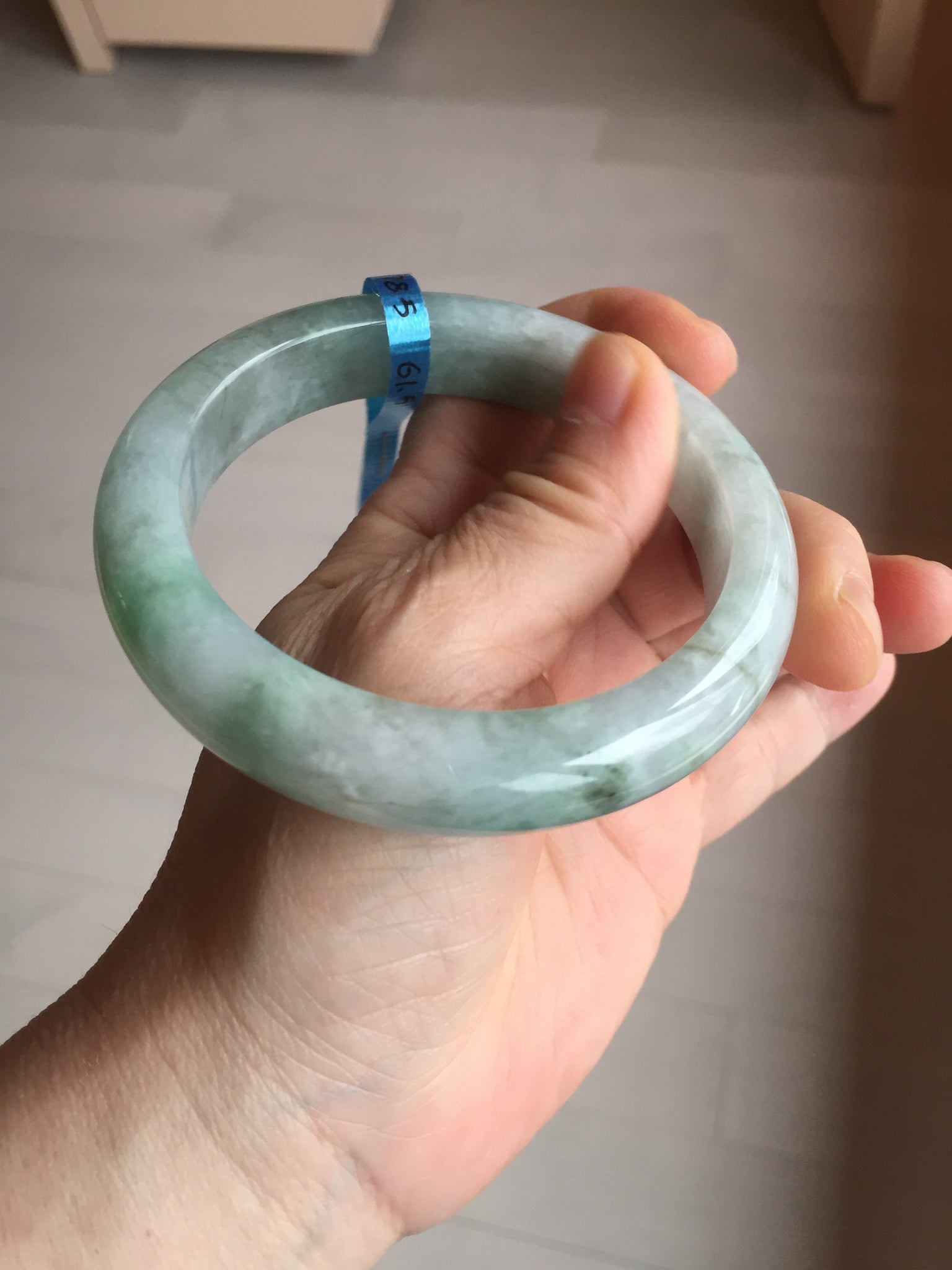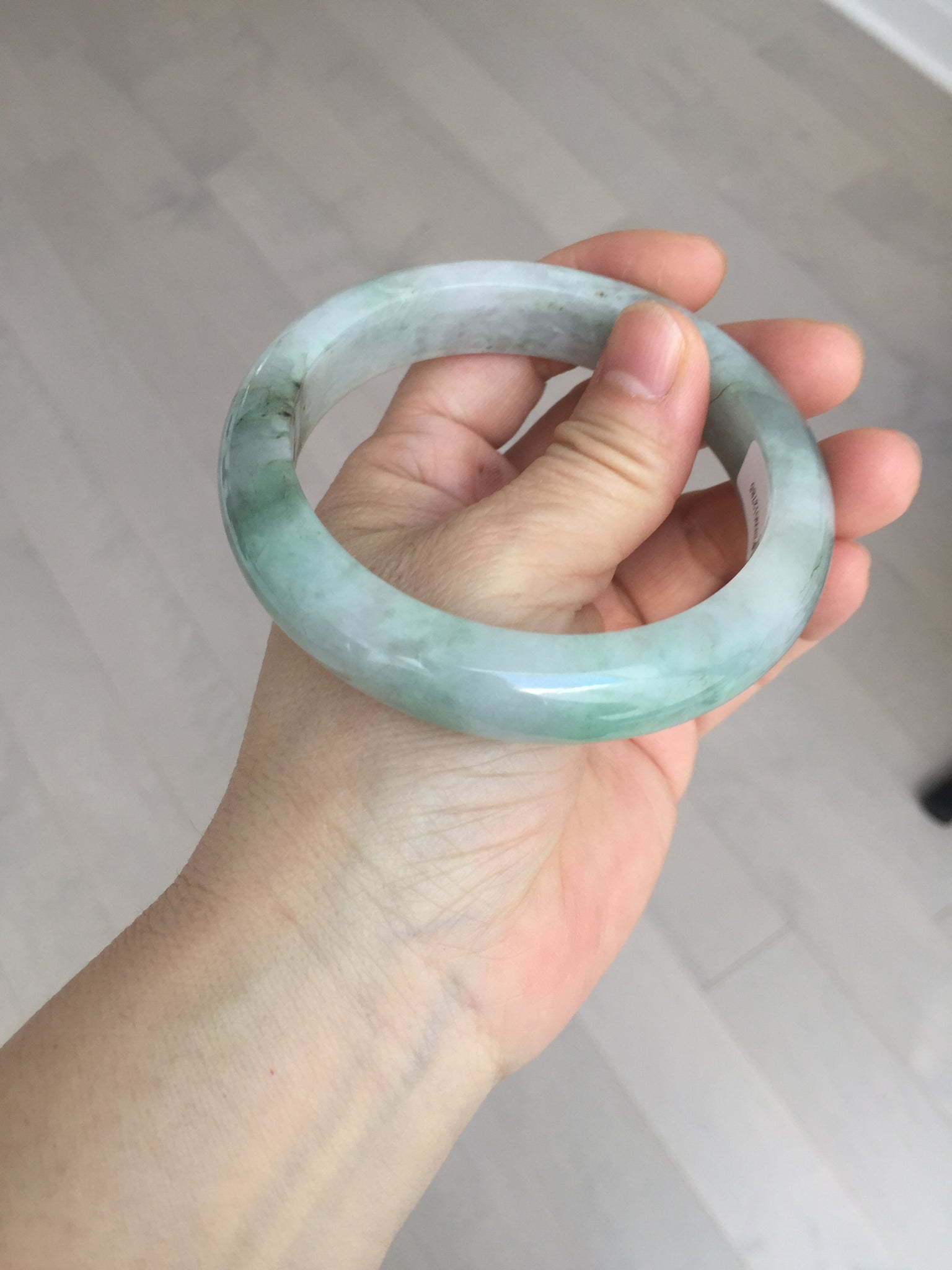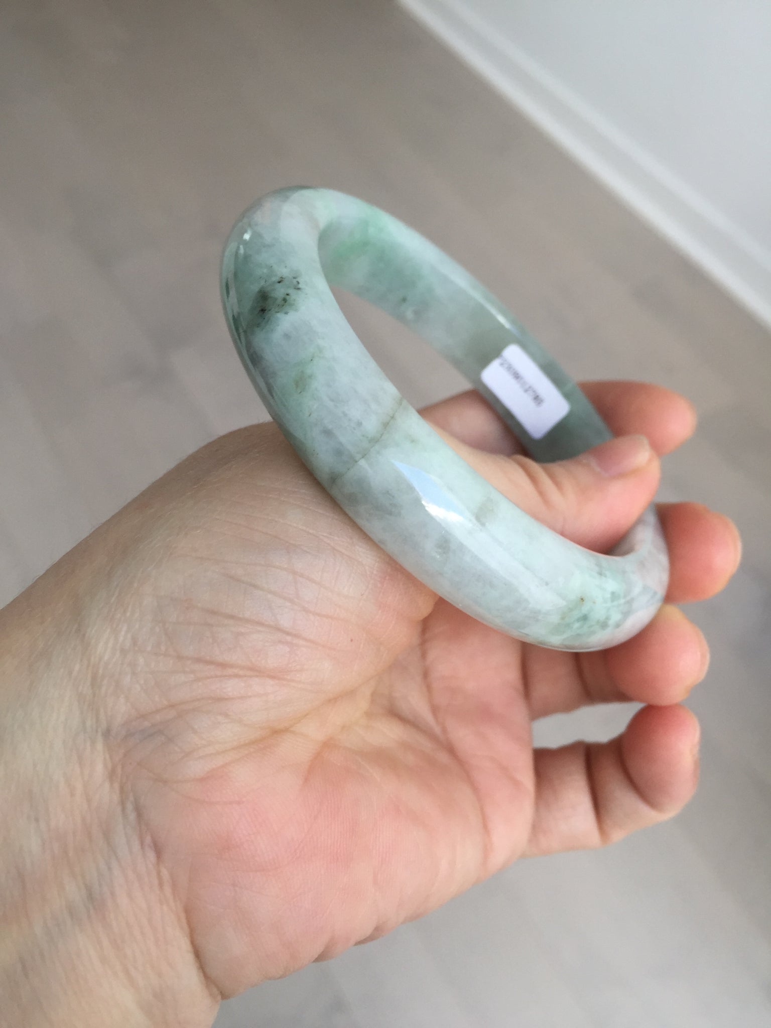 61.5 mm certified type A 100% Natural oily light green/white/purple chubby Jadeite Jade bangle BM17-2786