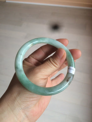 57mm Certified Type A 100% Natural icy watery light green/blue/gray with flying snow Guatemala slim round cut Jadeite bangle BG197-2487
