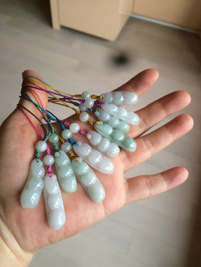 Type A 100% Natural white/green/purple Four Seasons Fortune Beans jadeite jade hanger group BF39