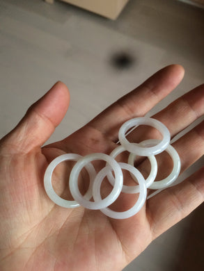 100% natural type A white slim jadeite jade band ring BF53