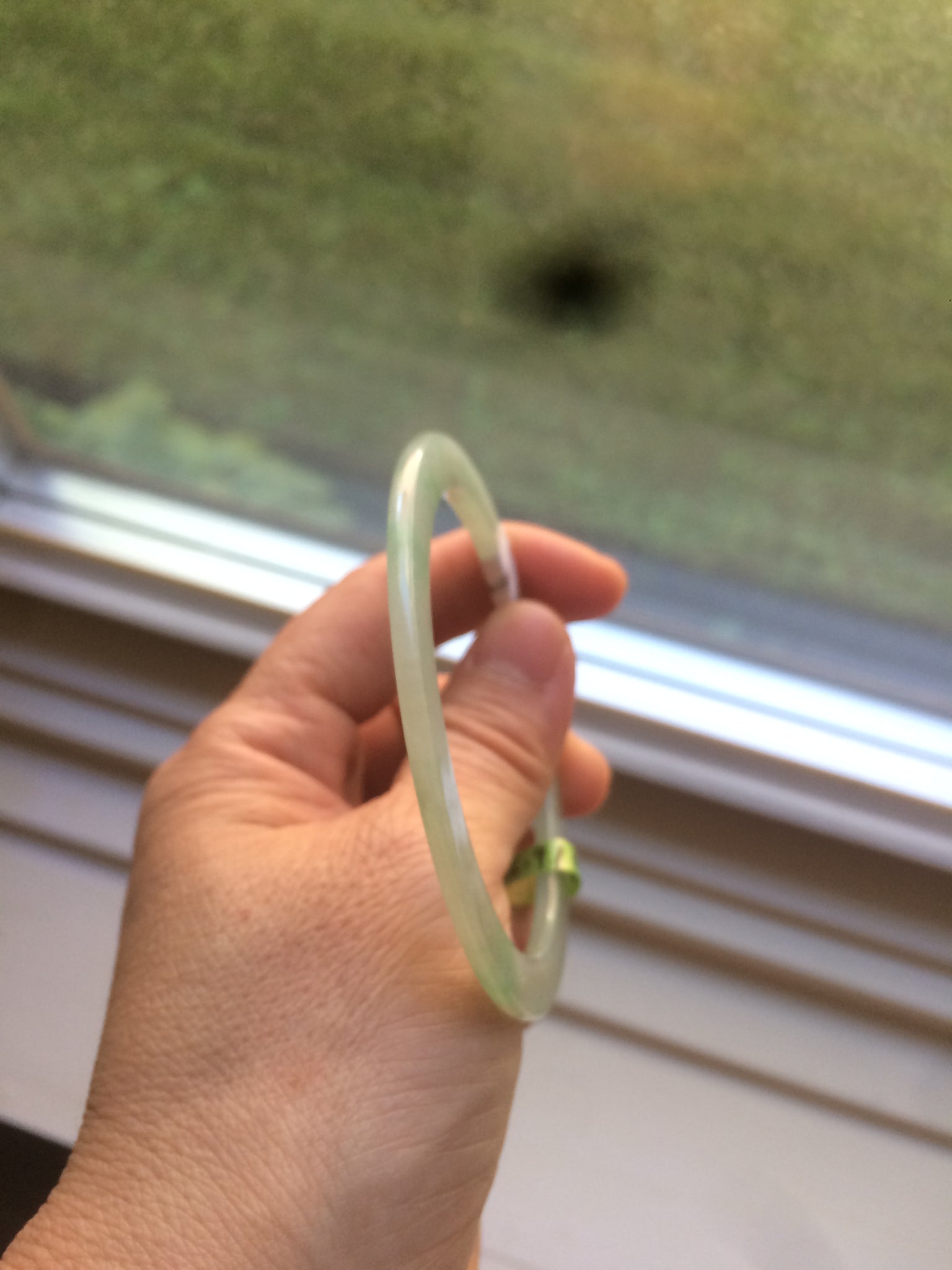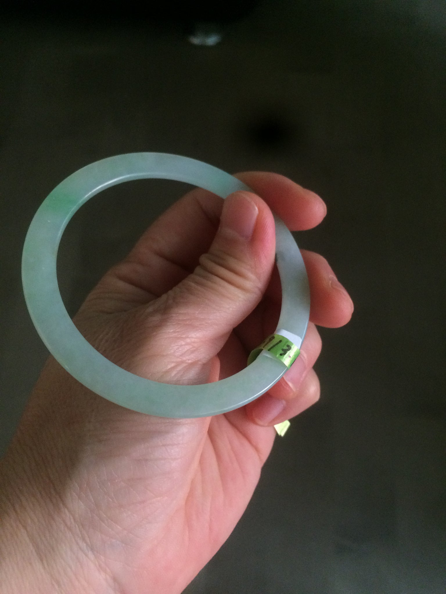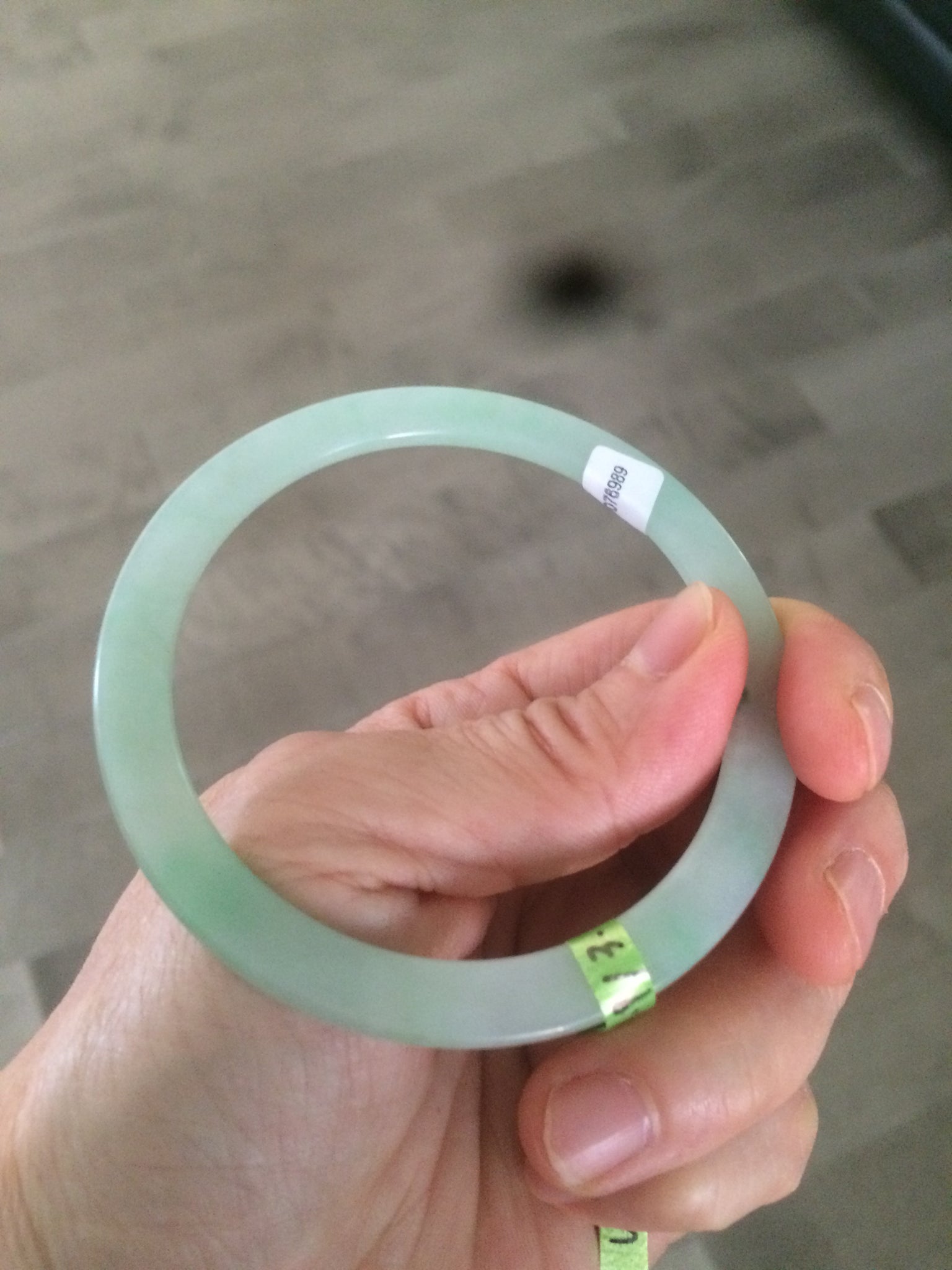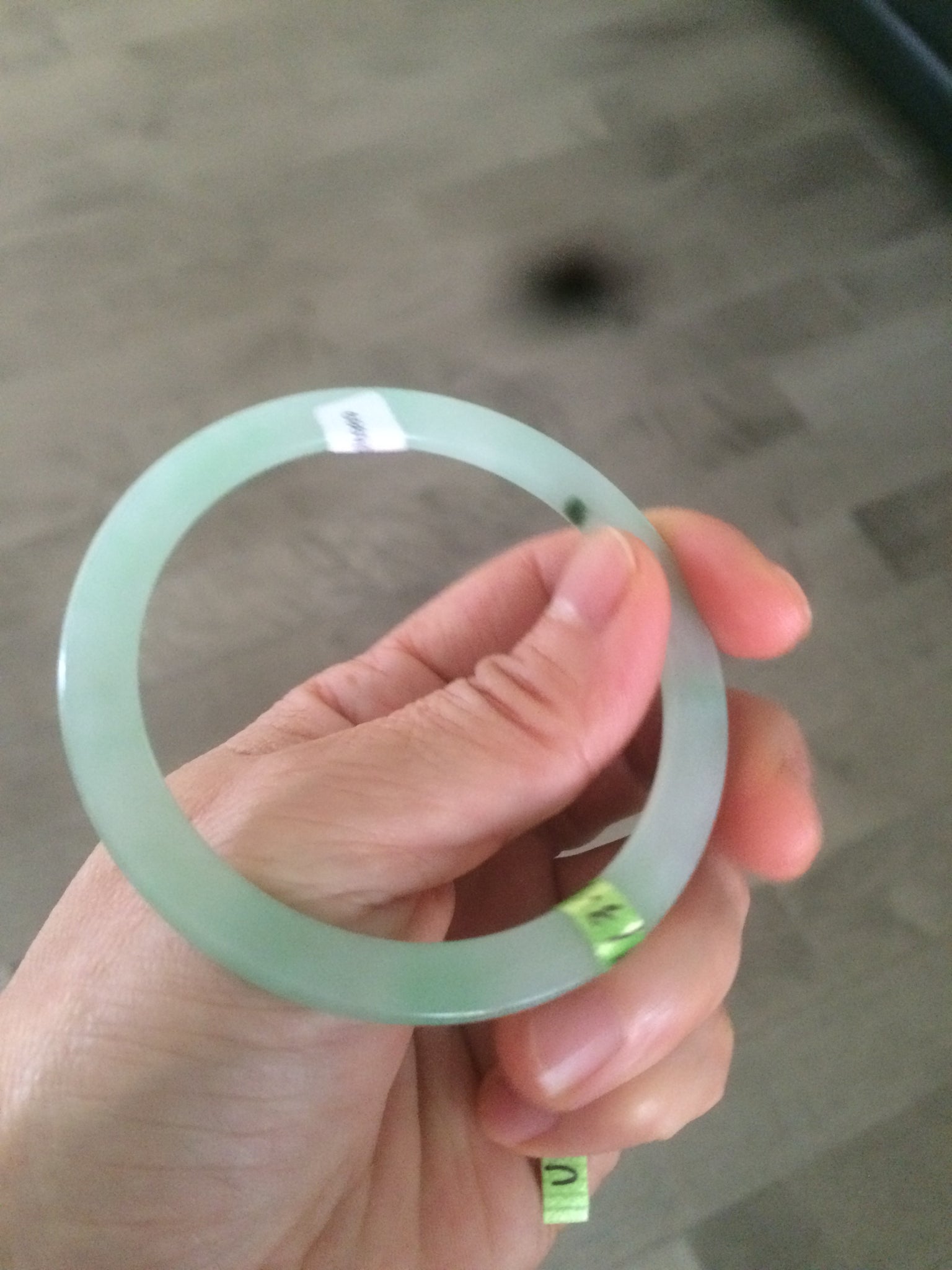 56.9mm Certified Type A 100% Natural icy sunny green super thin style Jadeite bangle U59-6989