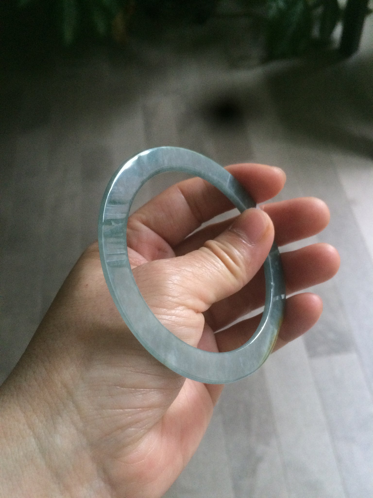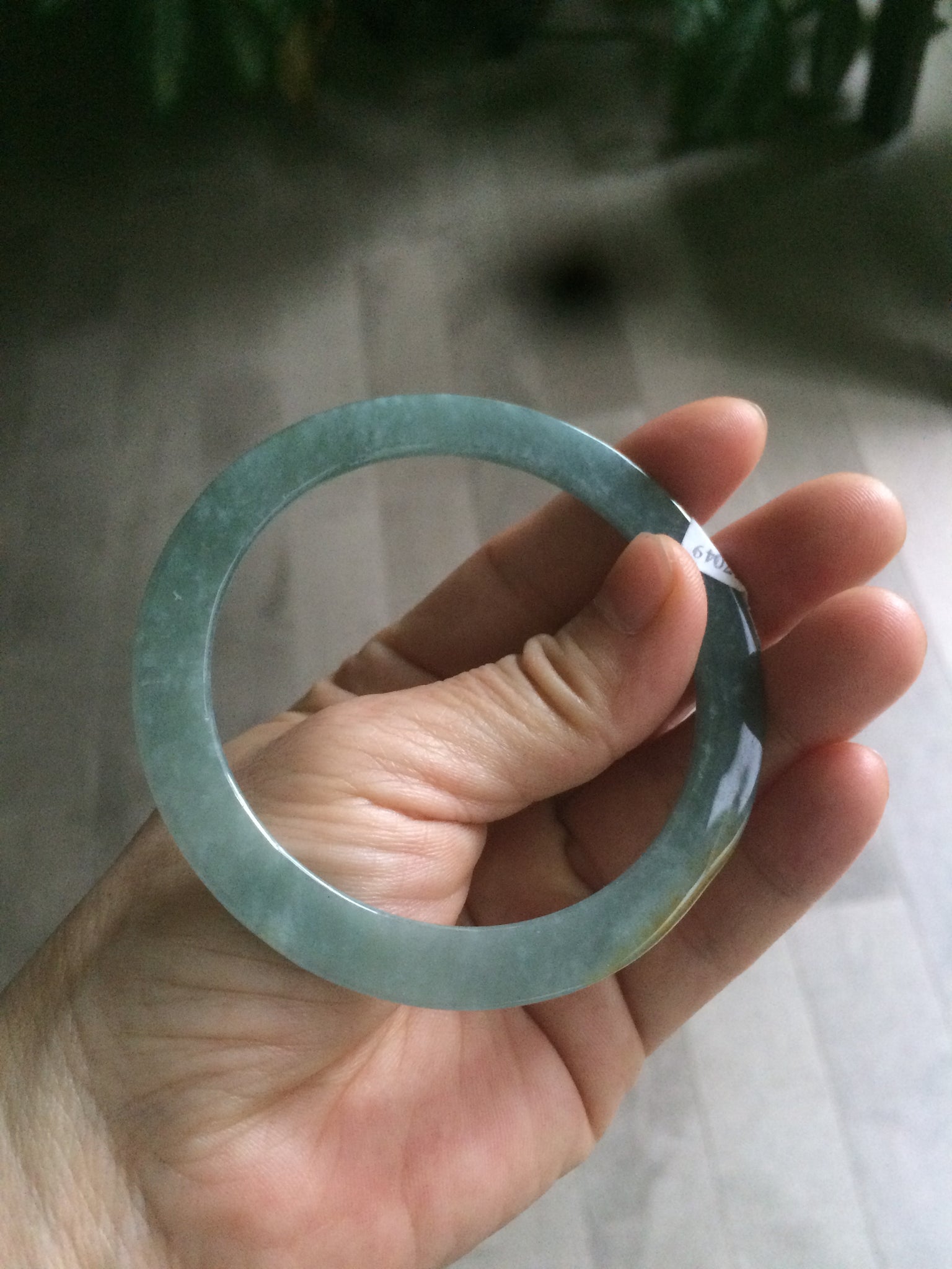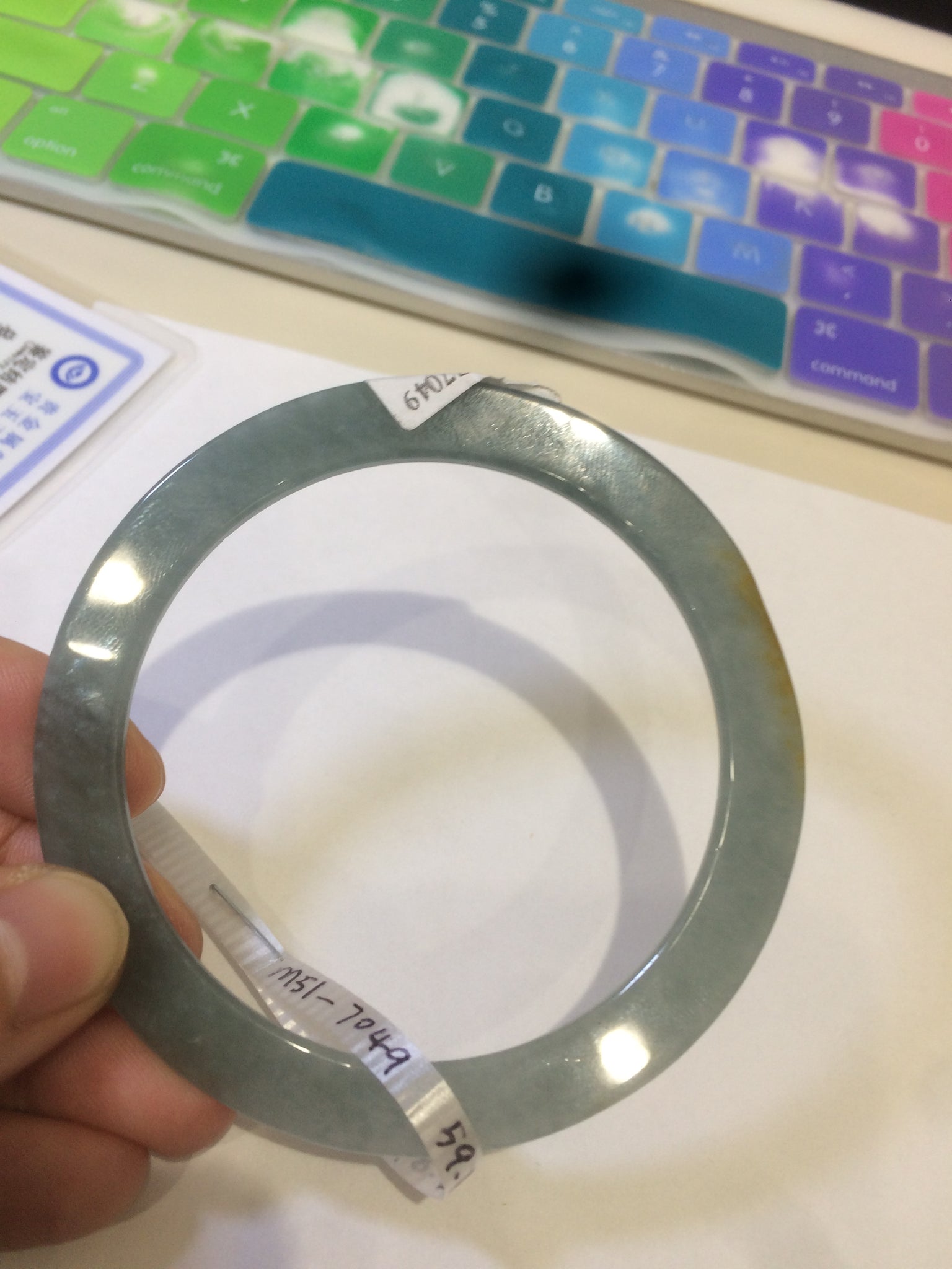 58.1mm Certified Type A 100% Natural green/blue/gray/yellow super thin style Guatemala Jadeite bangle M51-7049