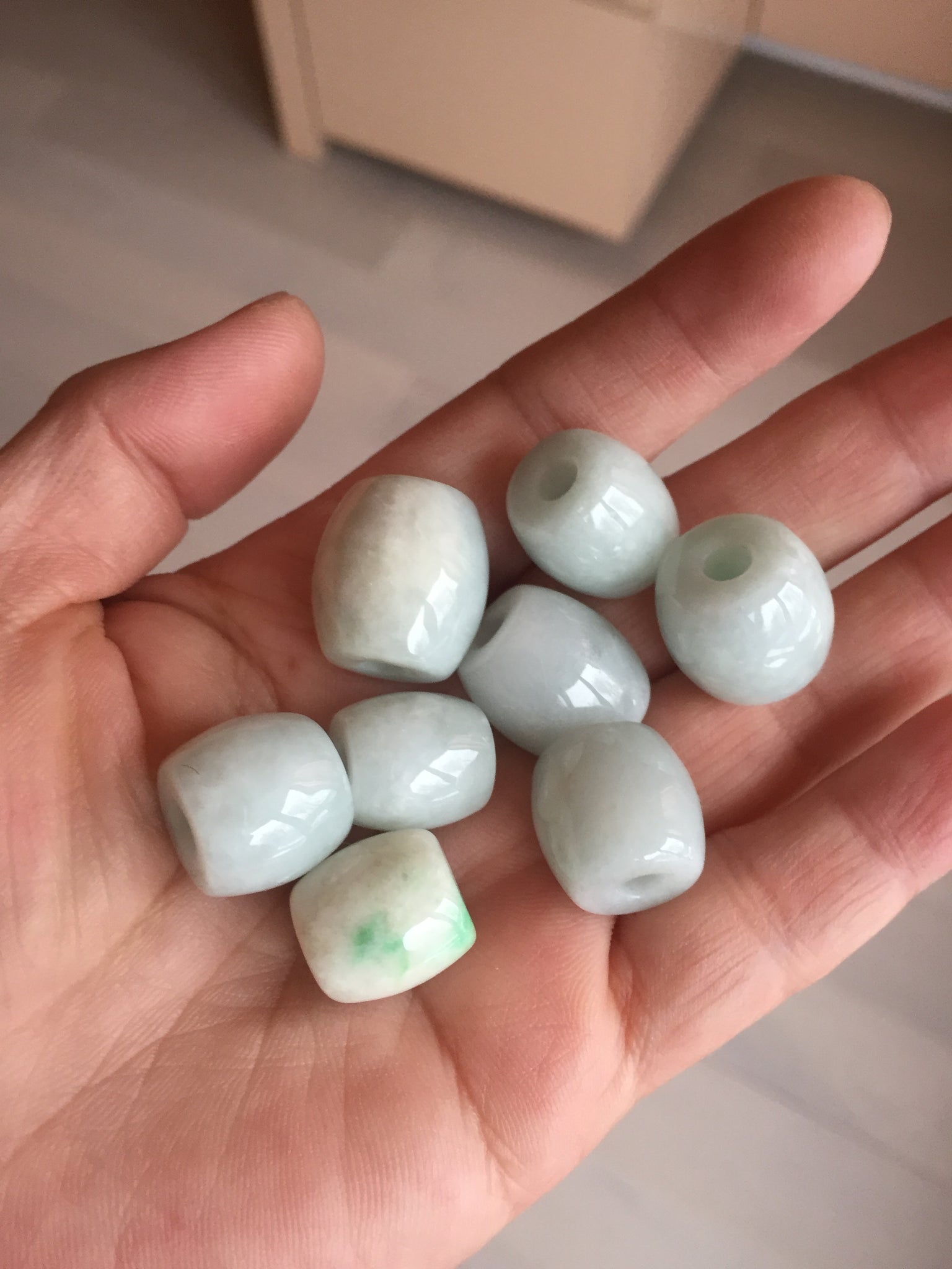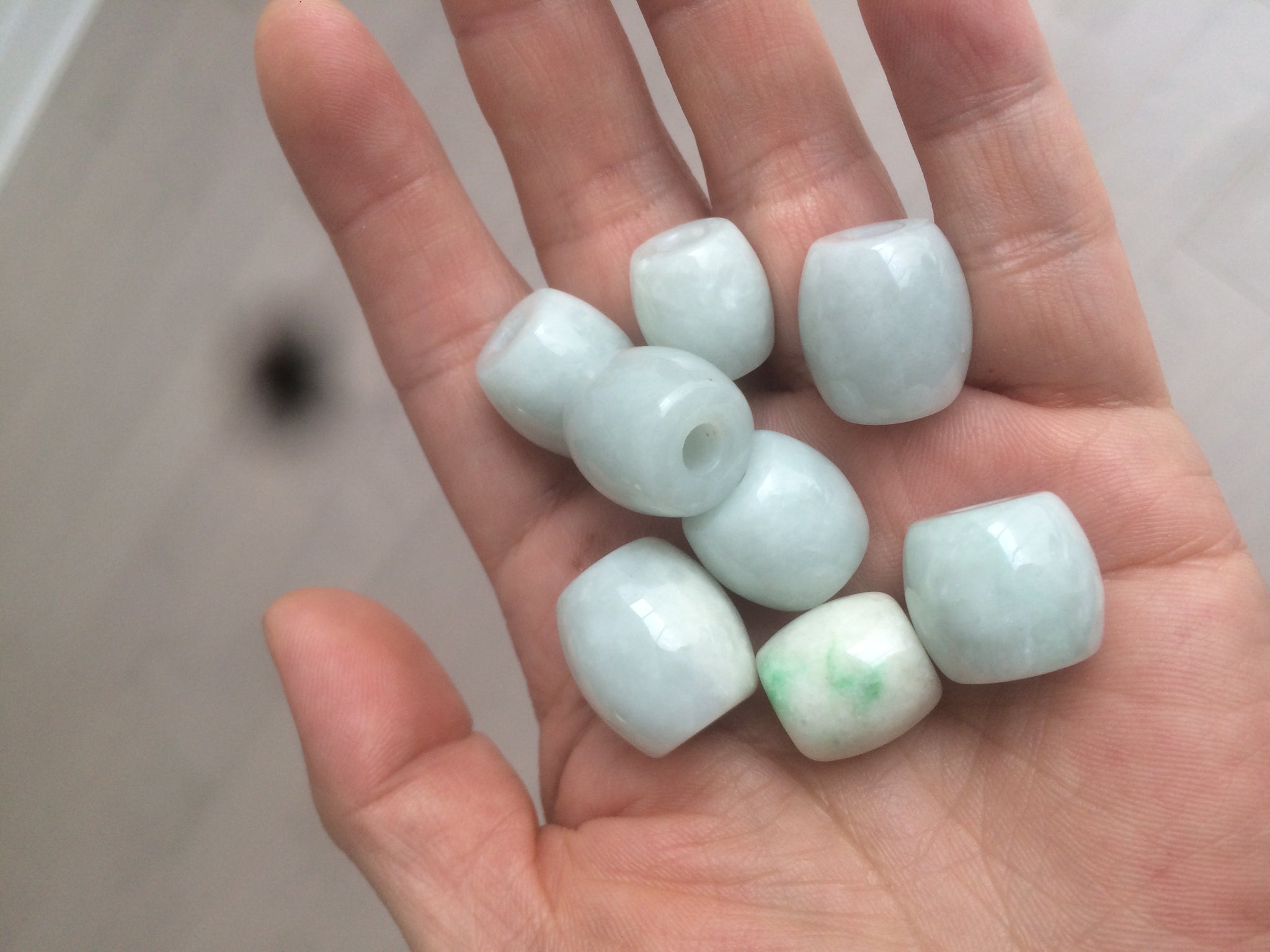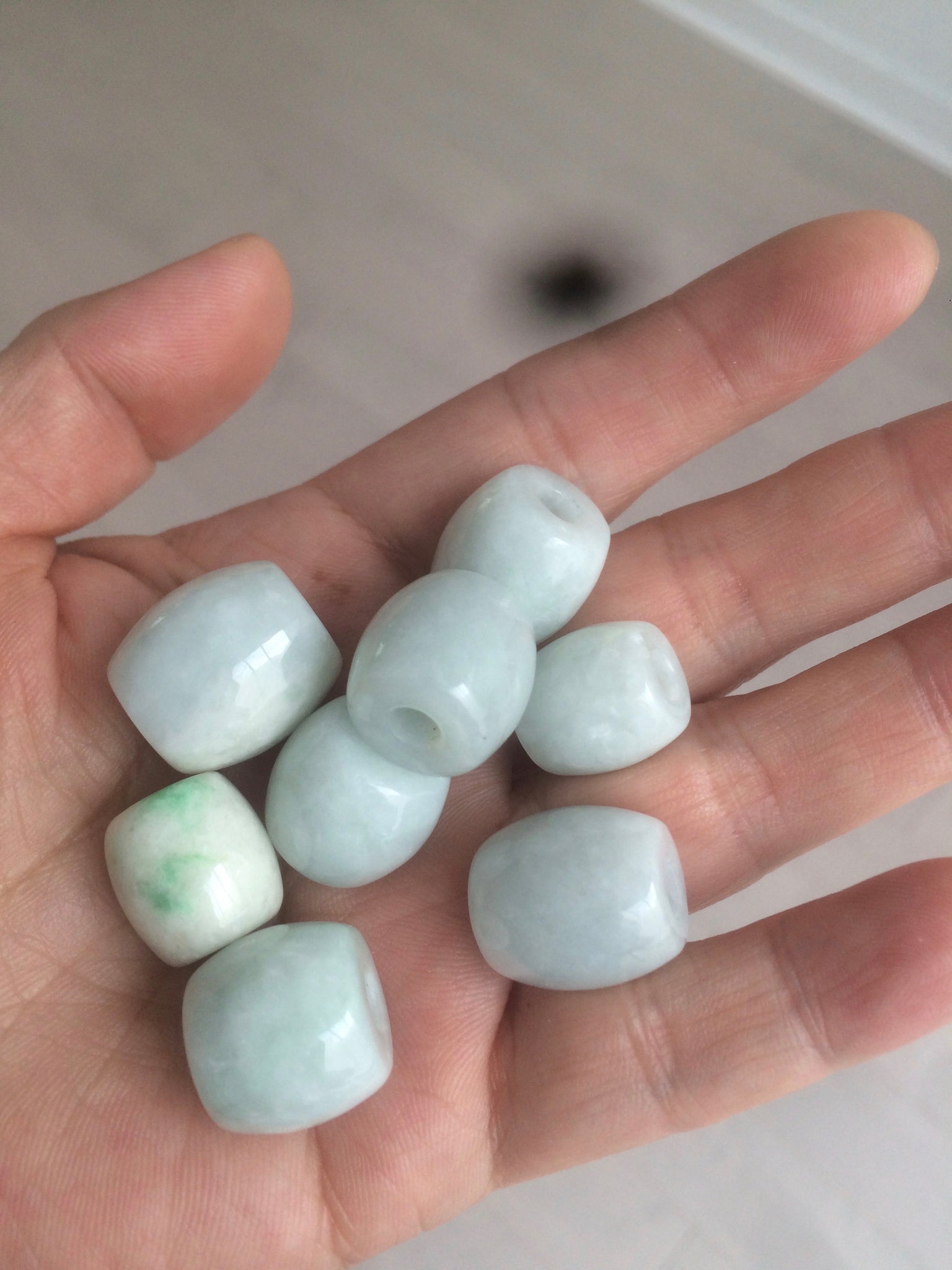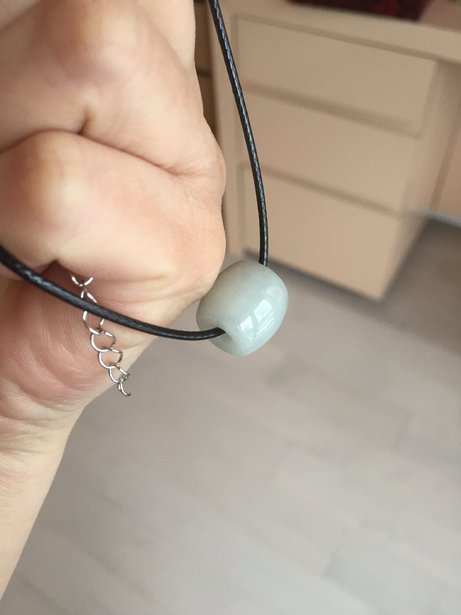 type A 100% Natural white/light green olive shape Jadeite Jade LuluTong (Every road is smooth) bead pendant BK107