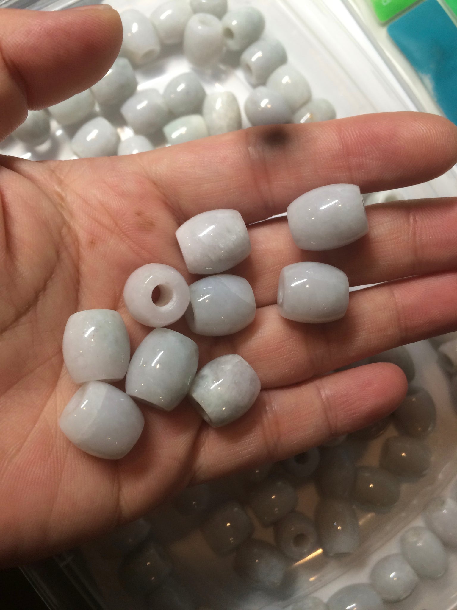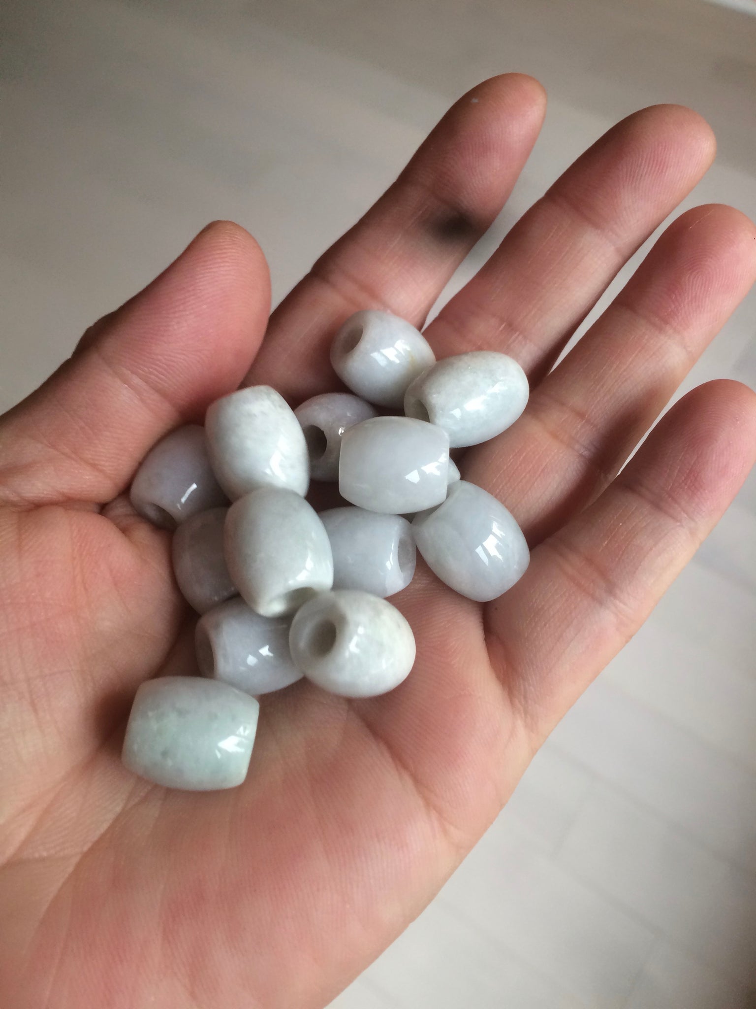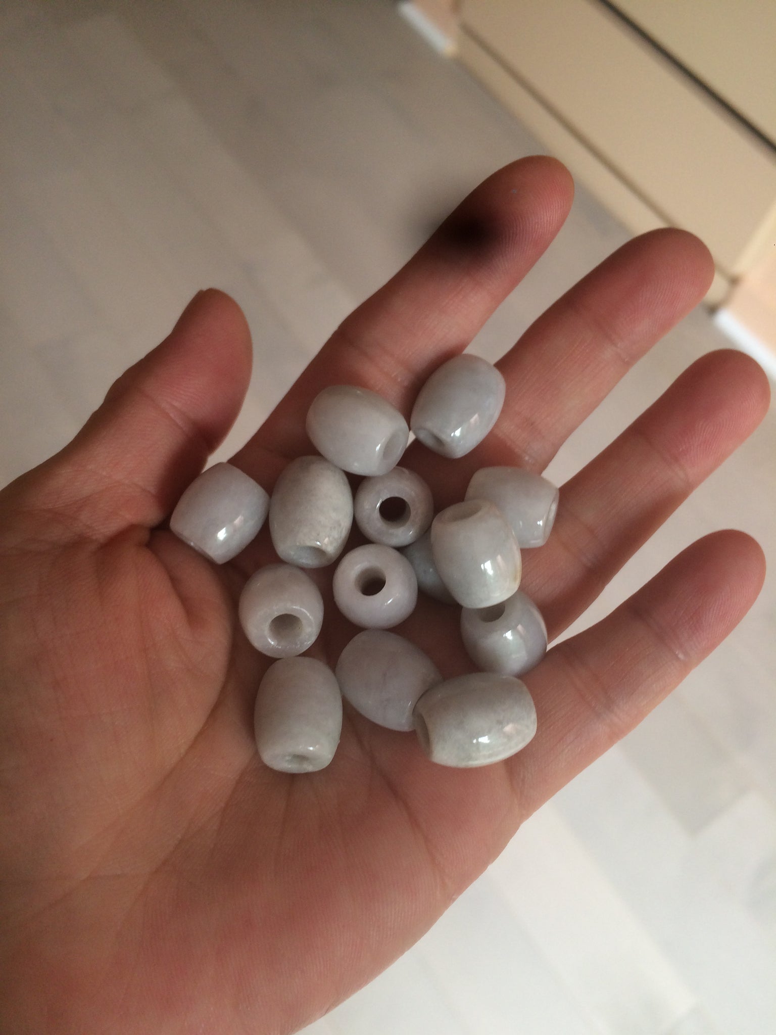 No the best quality of jade beads. No crack. But more or less has hairlines, relatively big cotton areas, cotton lines, rough surfaces, flat surfaces, and not watery. The purple is super light. Lighter than in photos.
