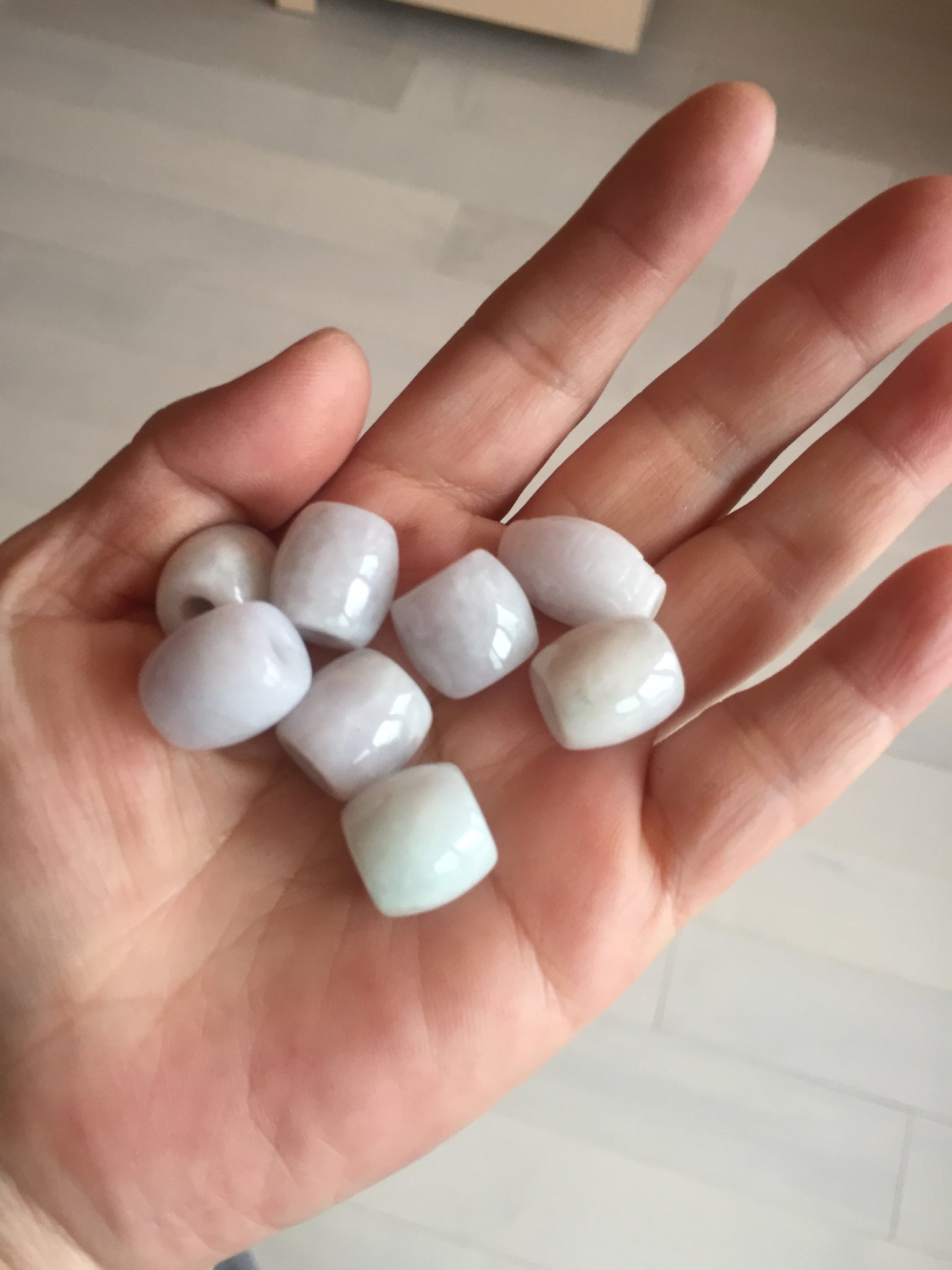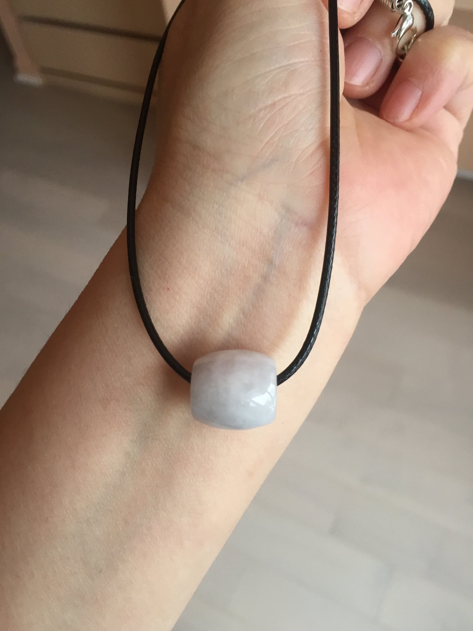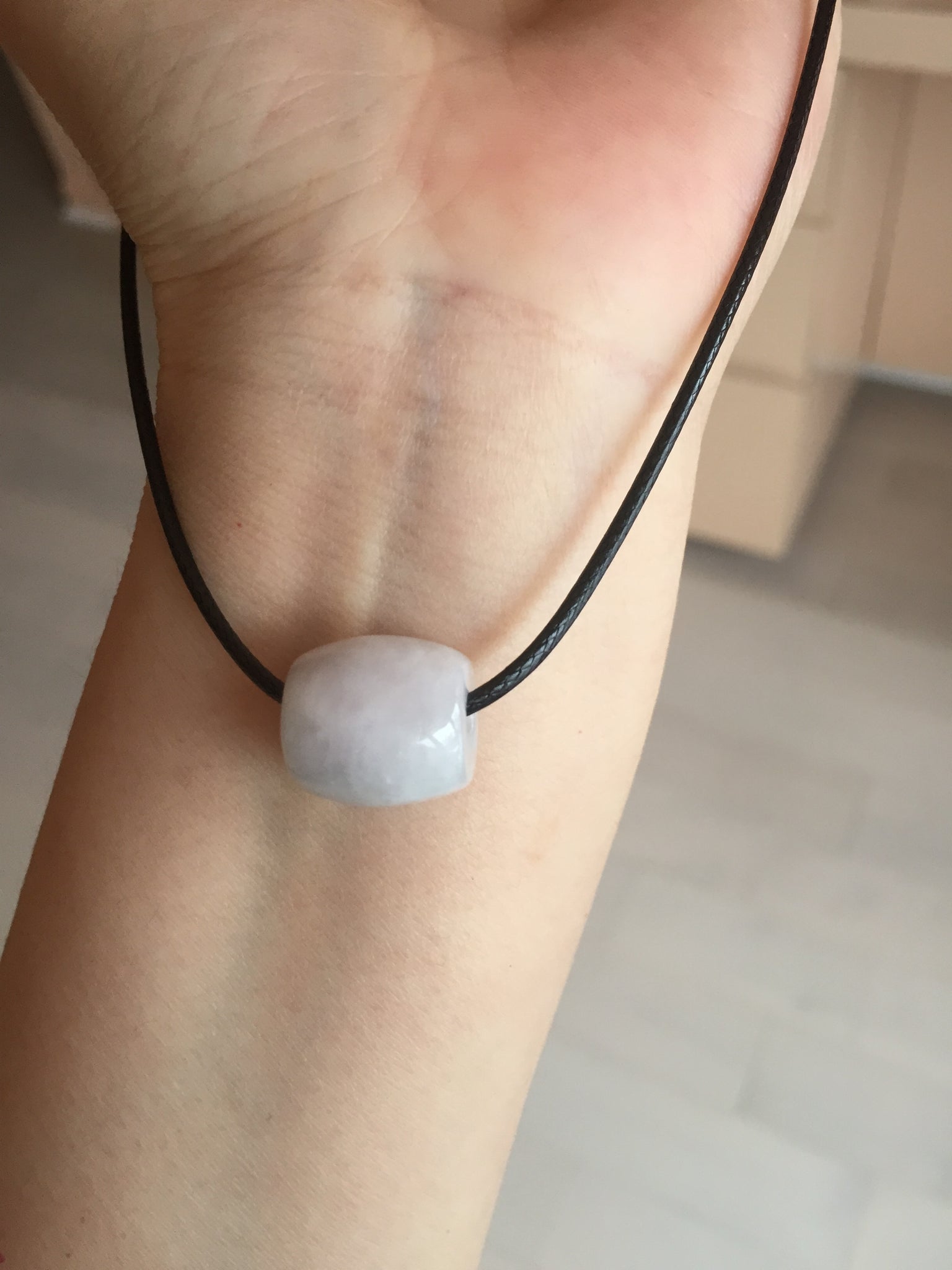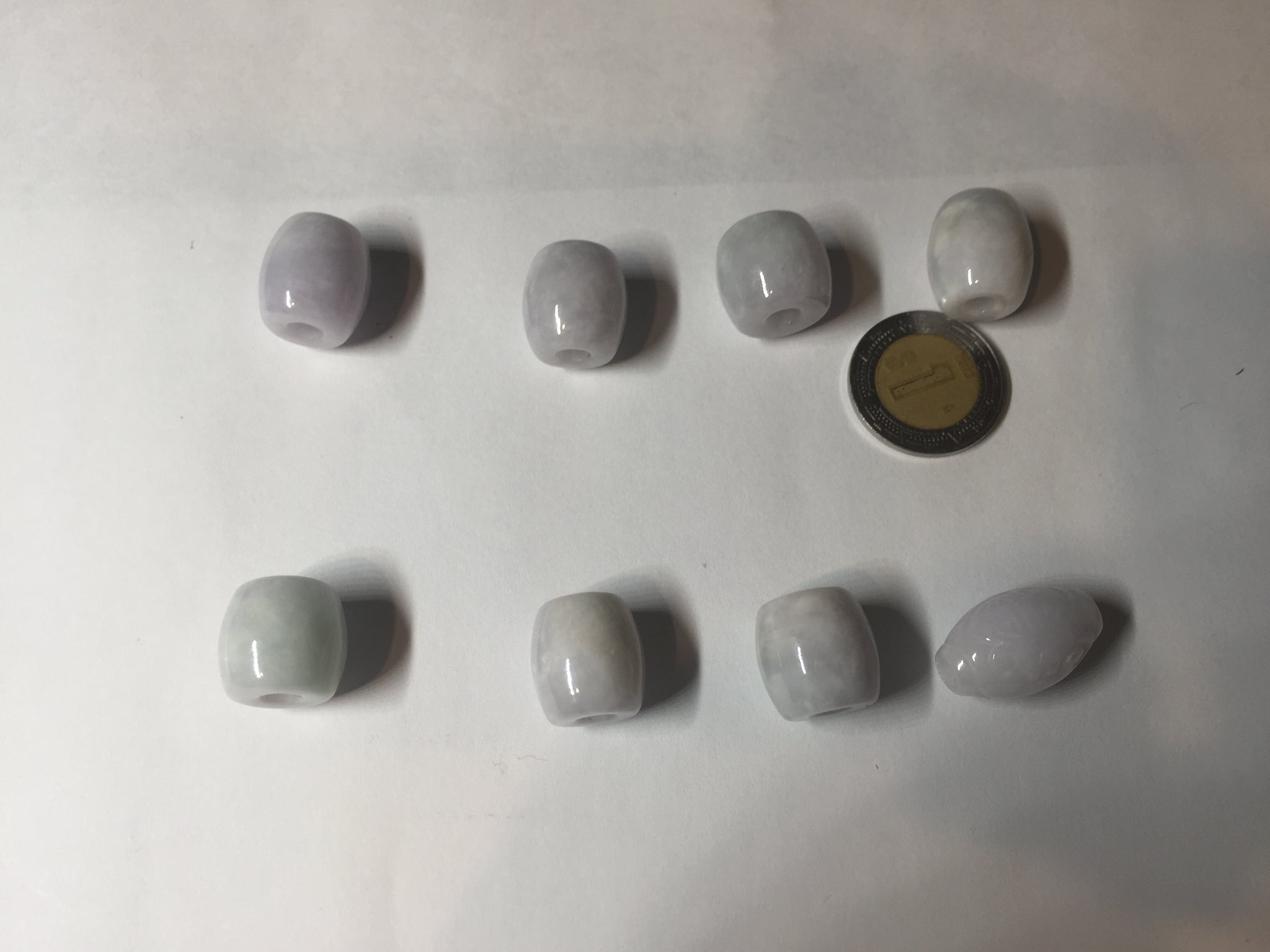Type A 100% Natural white/light purple olive shape Jadeite Jade LuluTong (Every road is smooth) bead pendant BK108