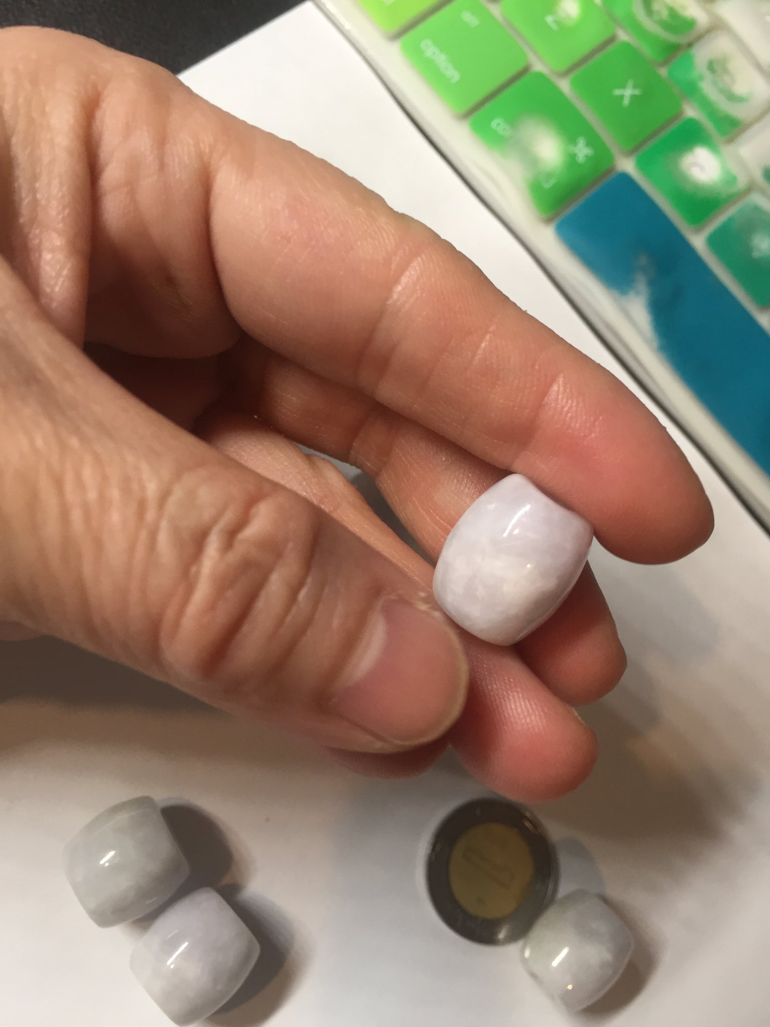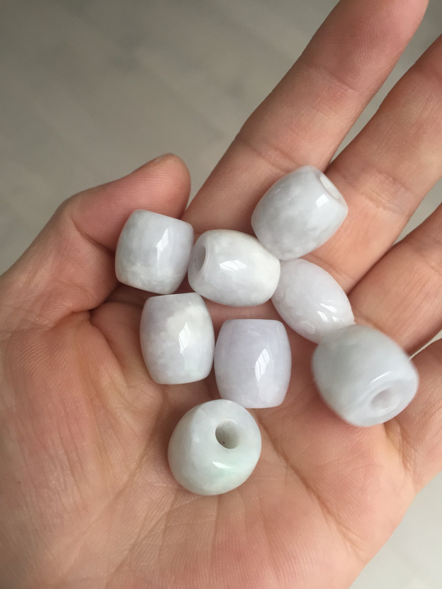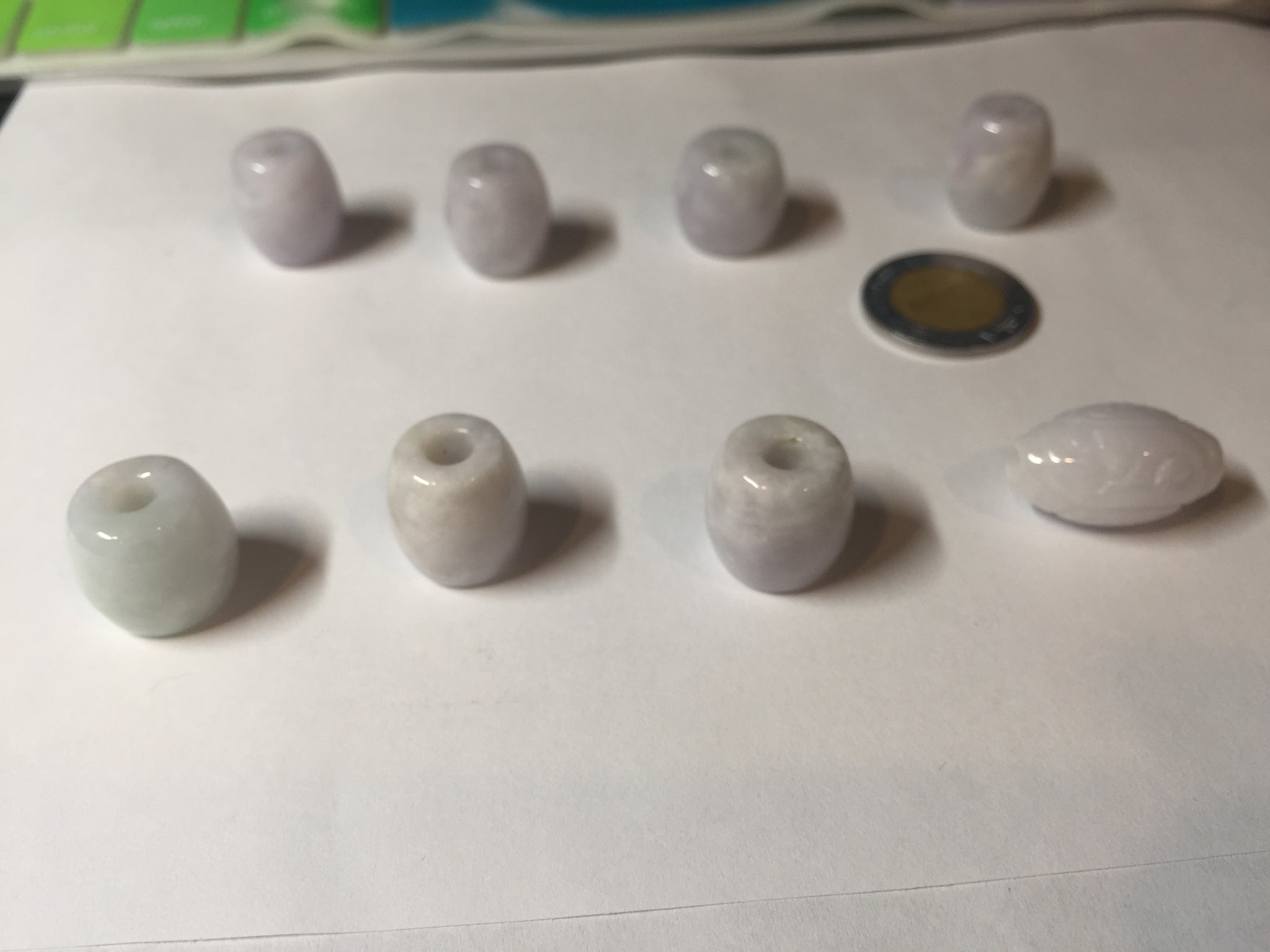 • Load image into Gallery viewer, Type A 100% Natural white/light purple olive shape Jadeite Jade LuluTong (Every road is smooth) bead pendant BK108