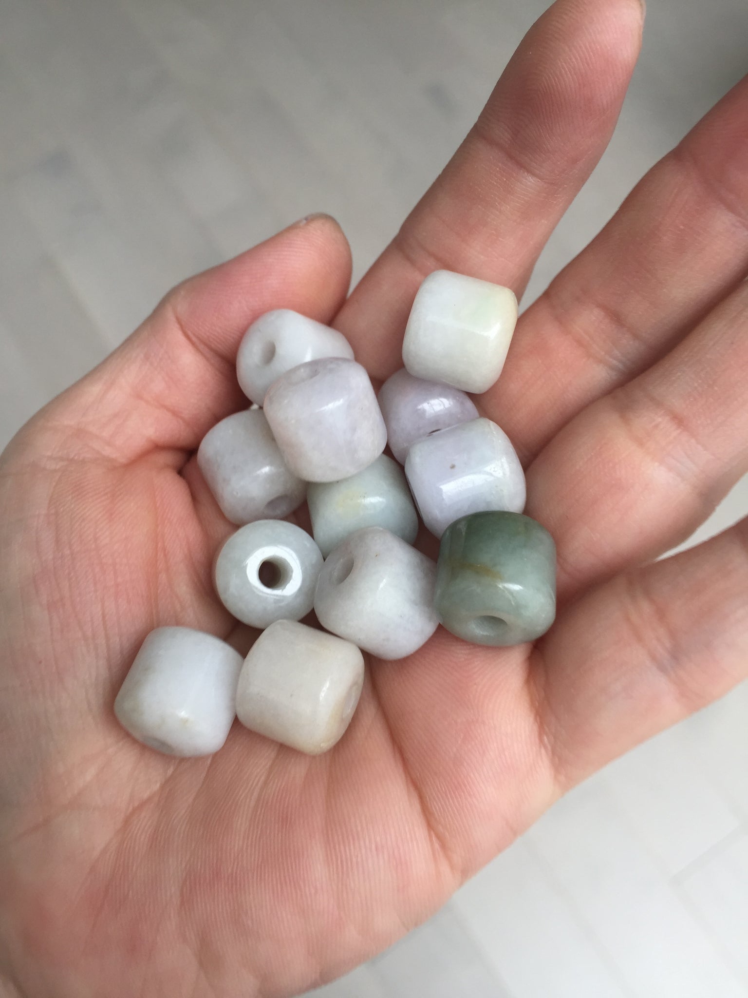 No crack. No hairlines. They have some cotton areas or cotton lines. They may have rough surfaces. The hole is not perfect in the center. Not a perfect cylinder. Not transparent. Not watery. The purple is lighter than in the photos.