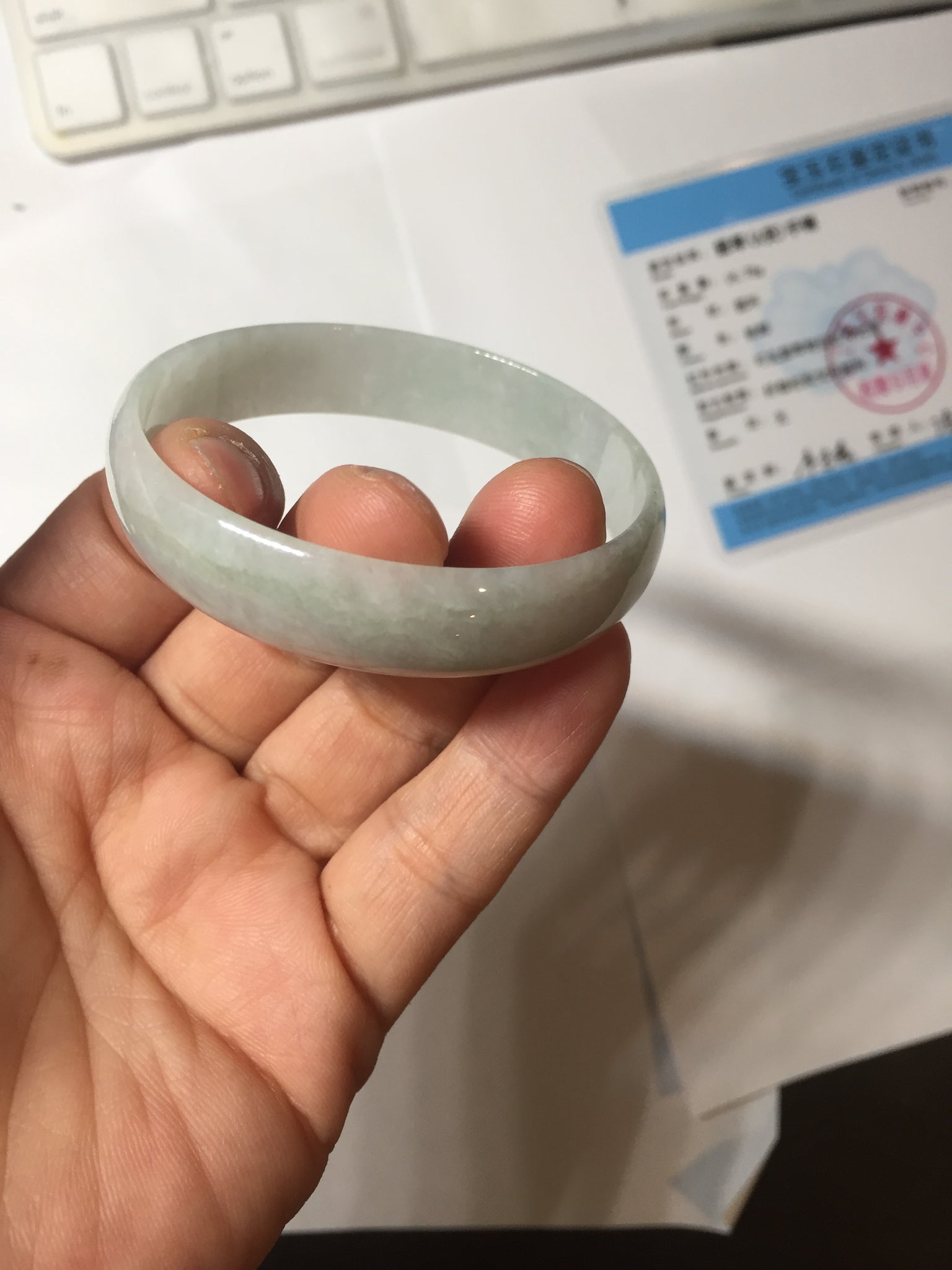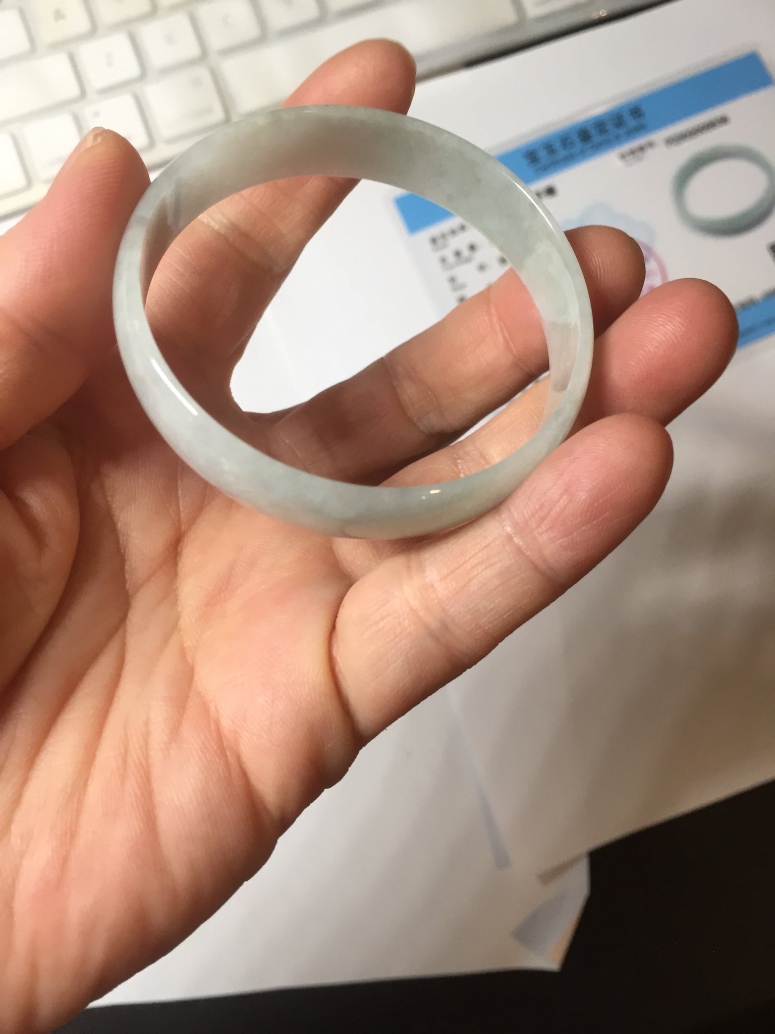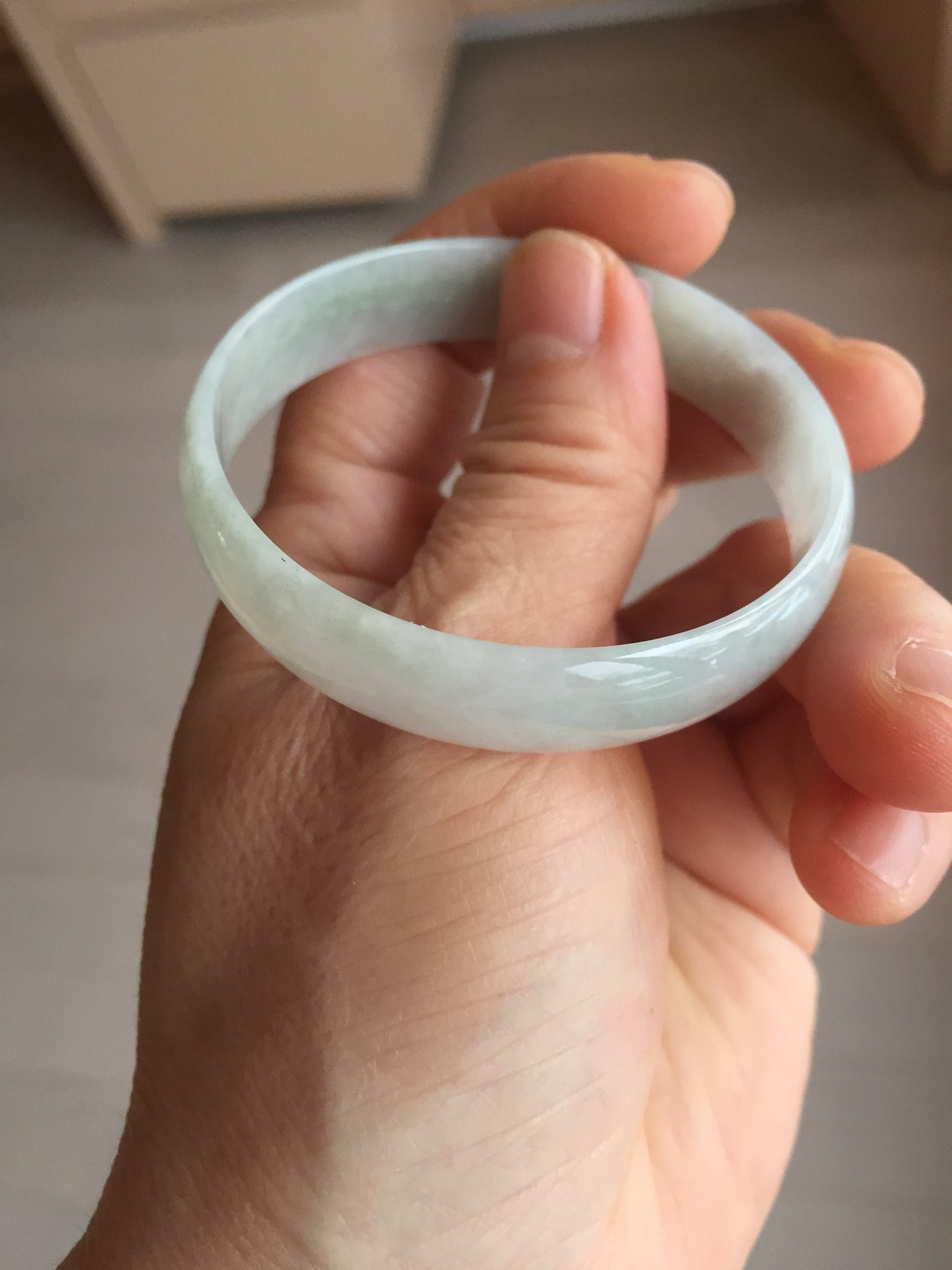 51.5mm certified Type A 100% Natural icy light green clear white thin style Jadeite jade bangle PH46-9636