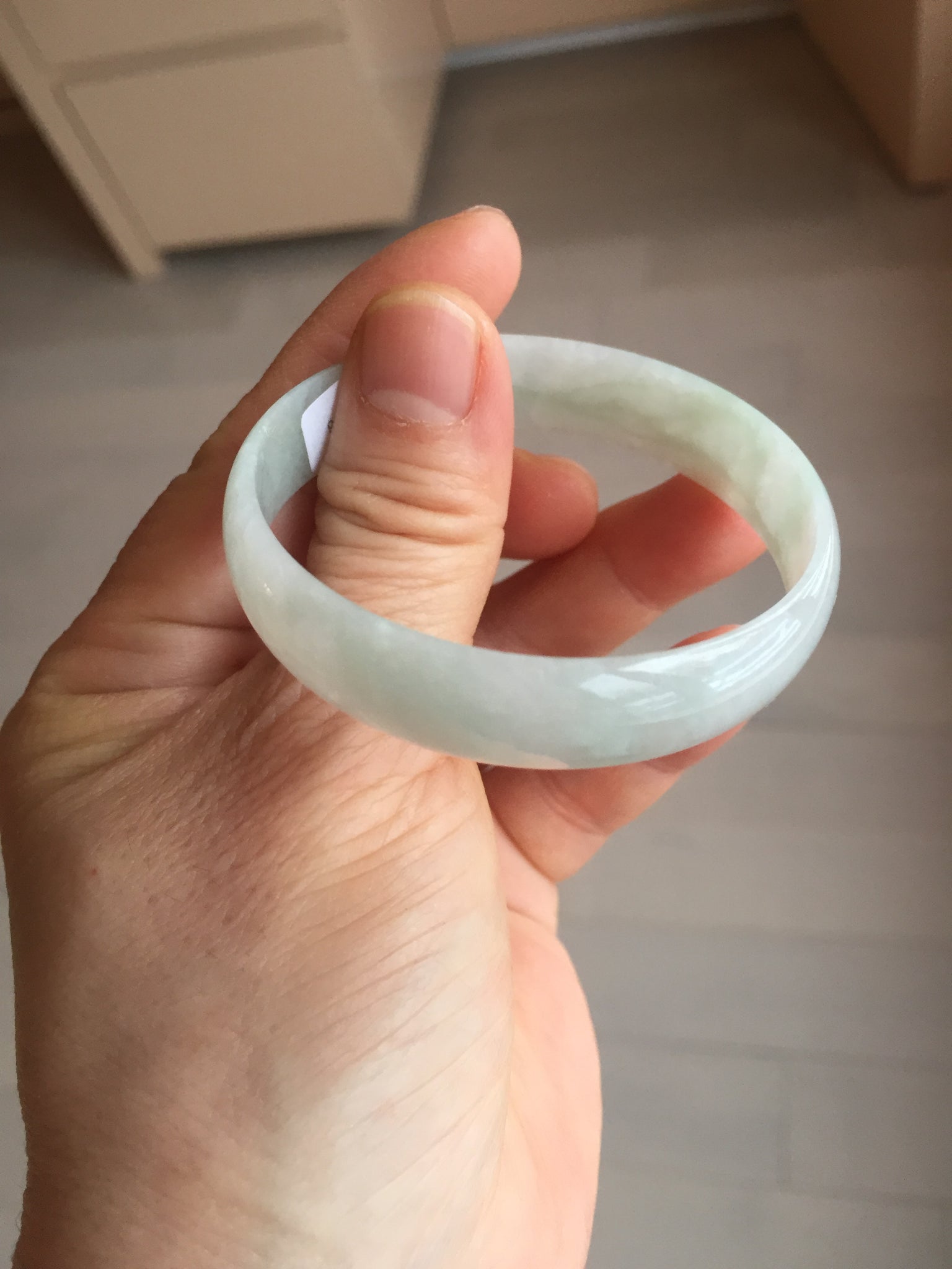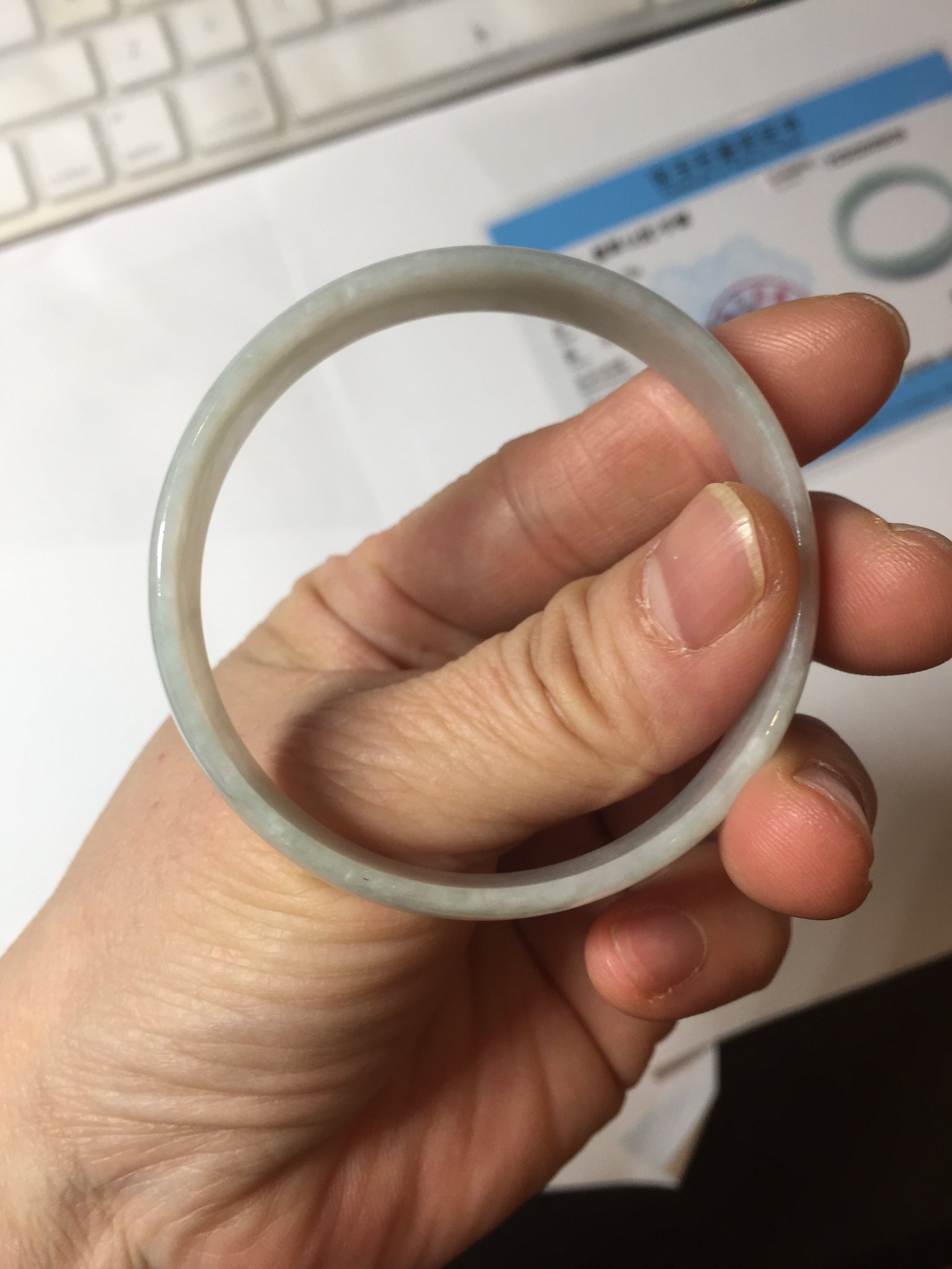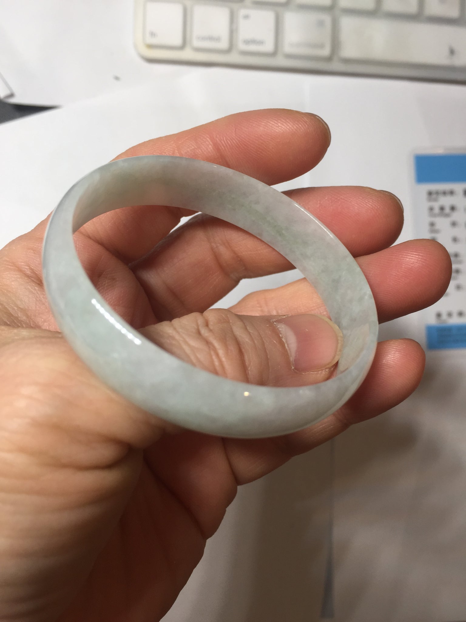 51.5mm certified Type A 100% Natural icy light green clear white thin style Jadeite jade bangle PH46-9636
