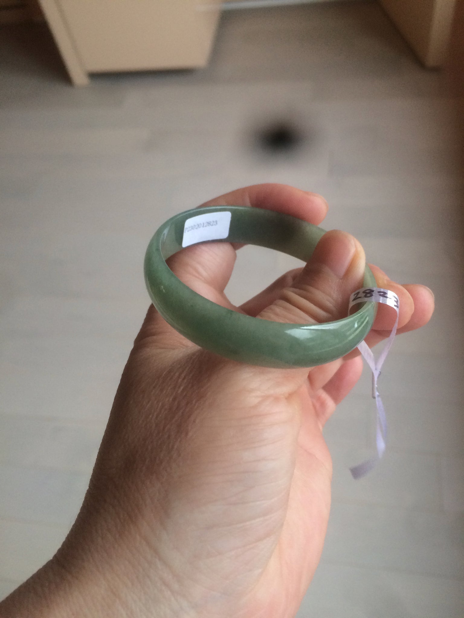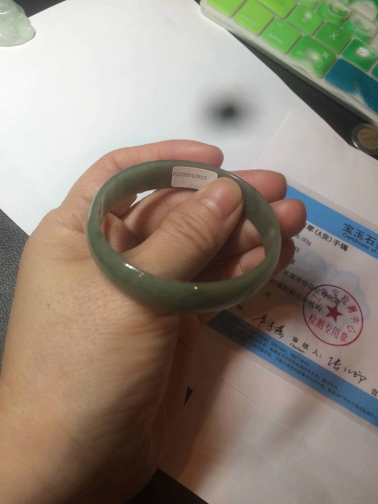51.6mm certified Type A 100% Natural oily dark green thin style Jadeite jade bangle AM72-2823