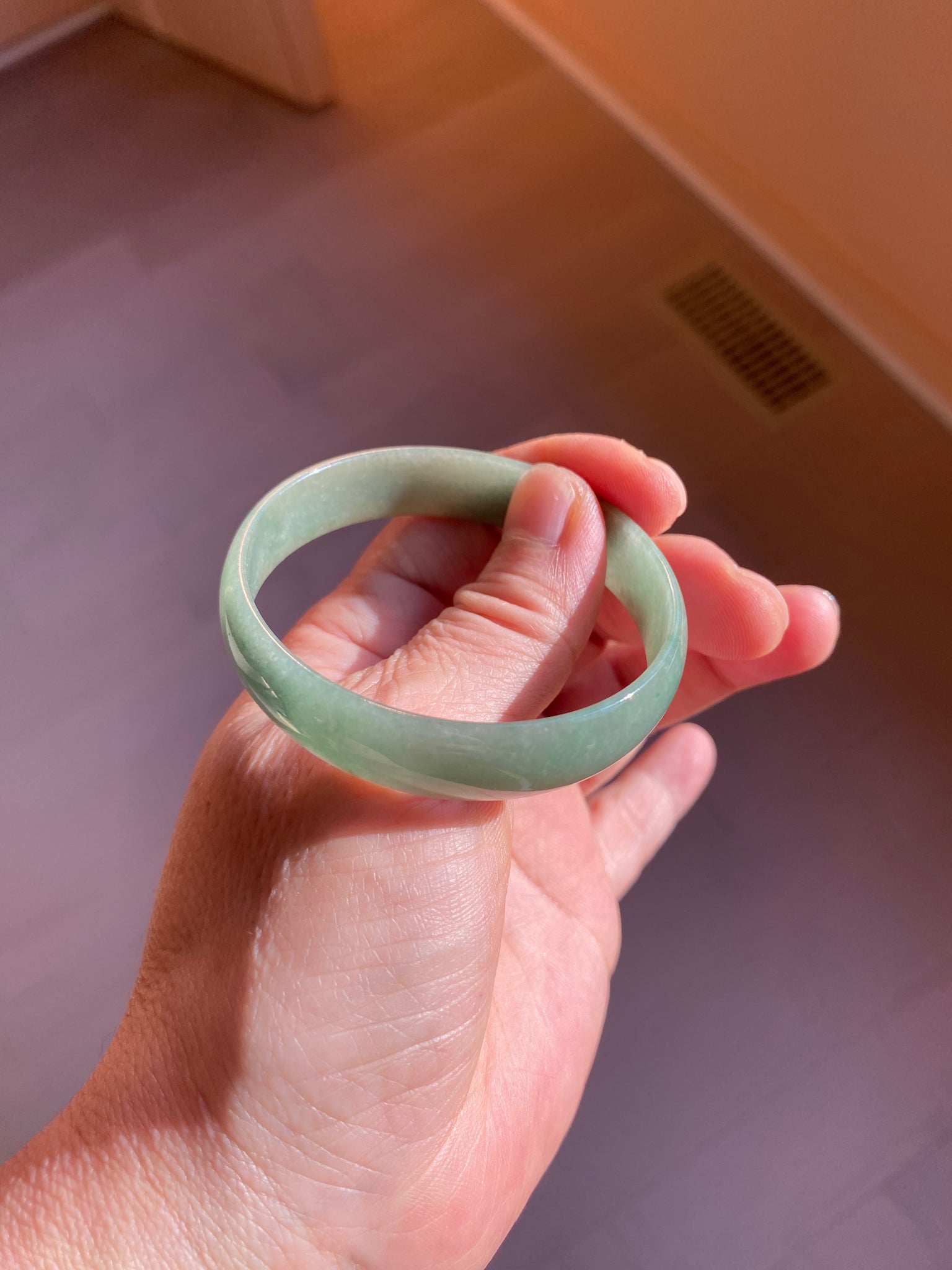 51.6mm certified Type A 100% Natural oily dark green  thin style Jadeite jade bangle AM72-2823