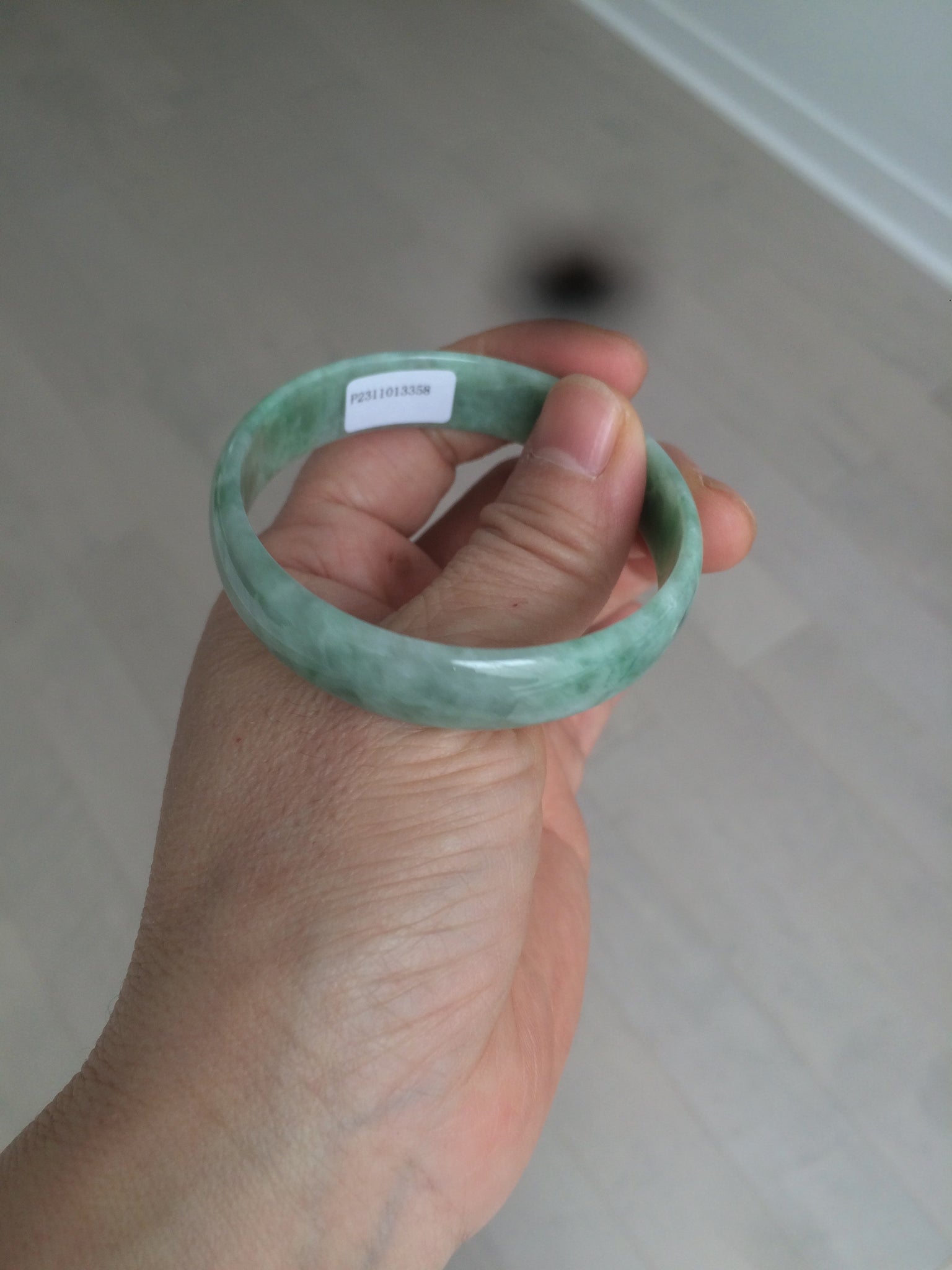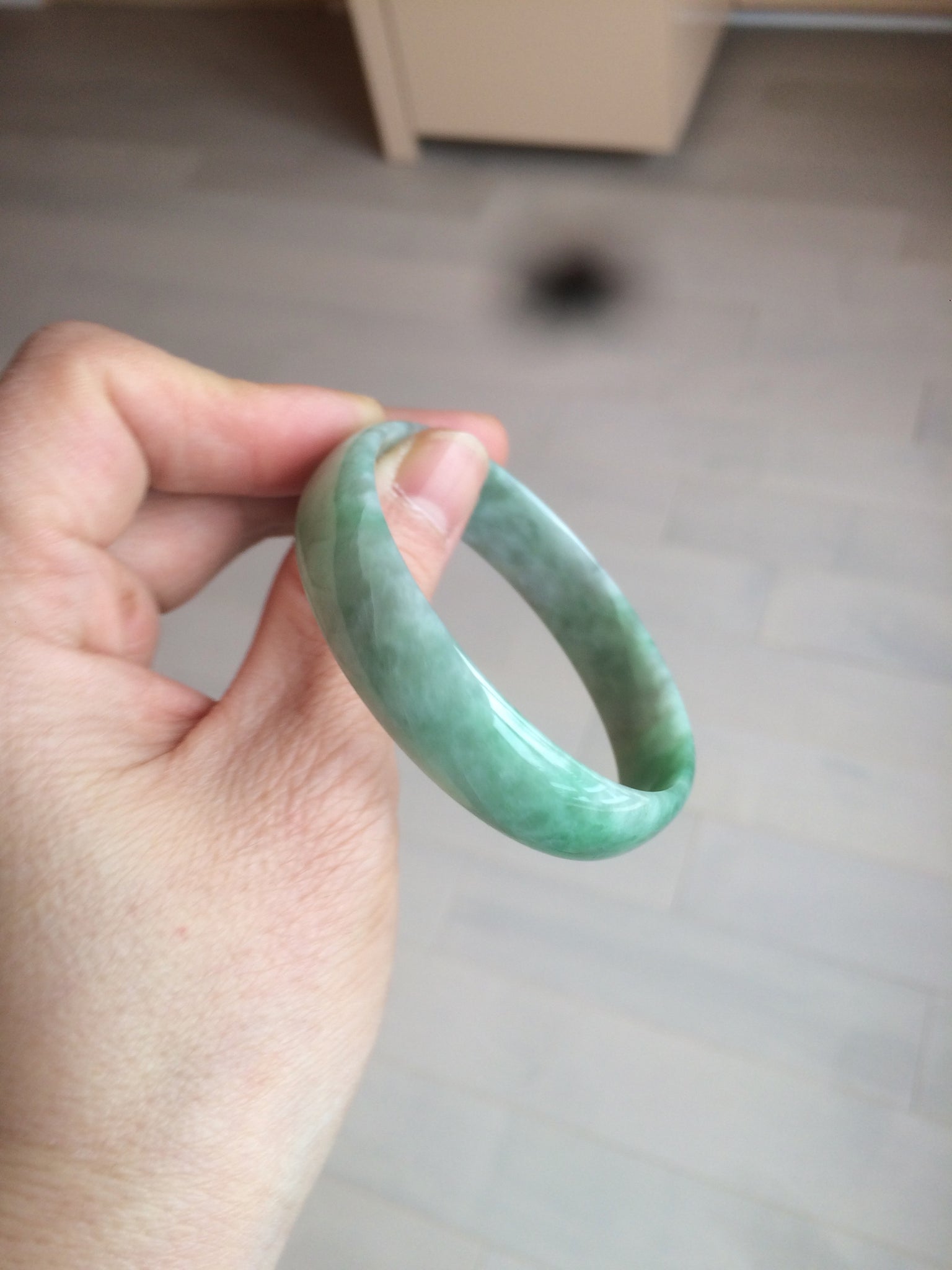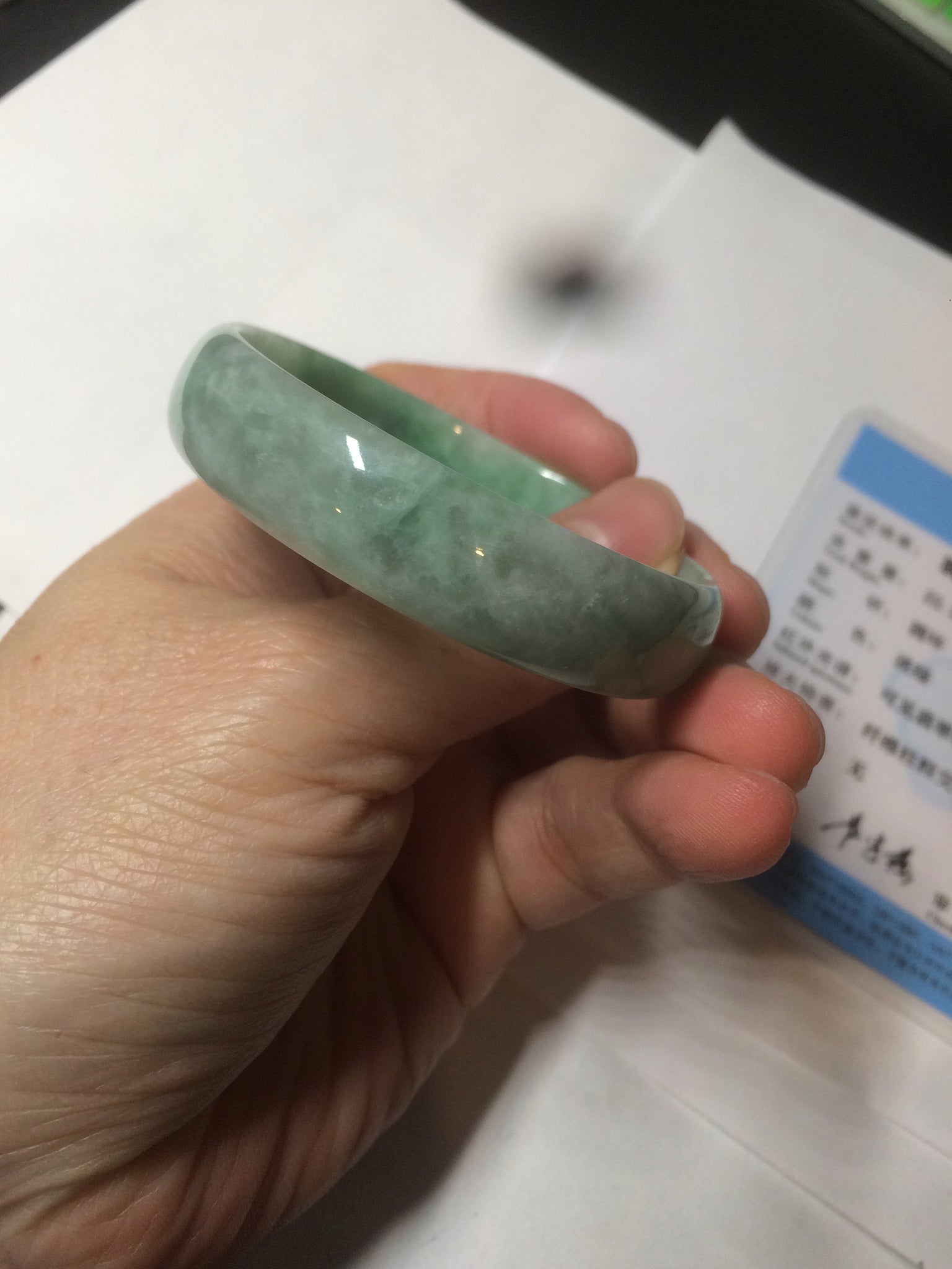 51.7mm certified 100% natural Type A sunny green/gray jadeite jade bangle BK6-3358
