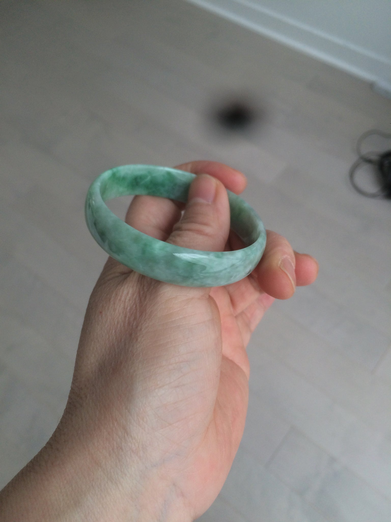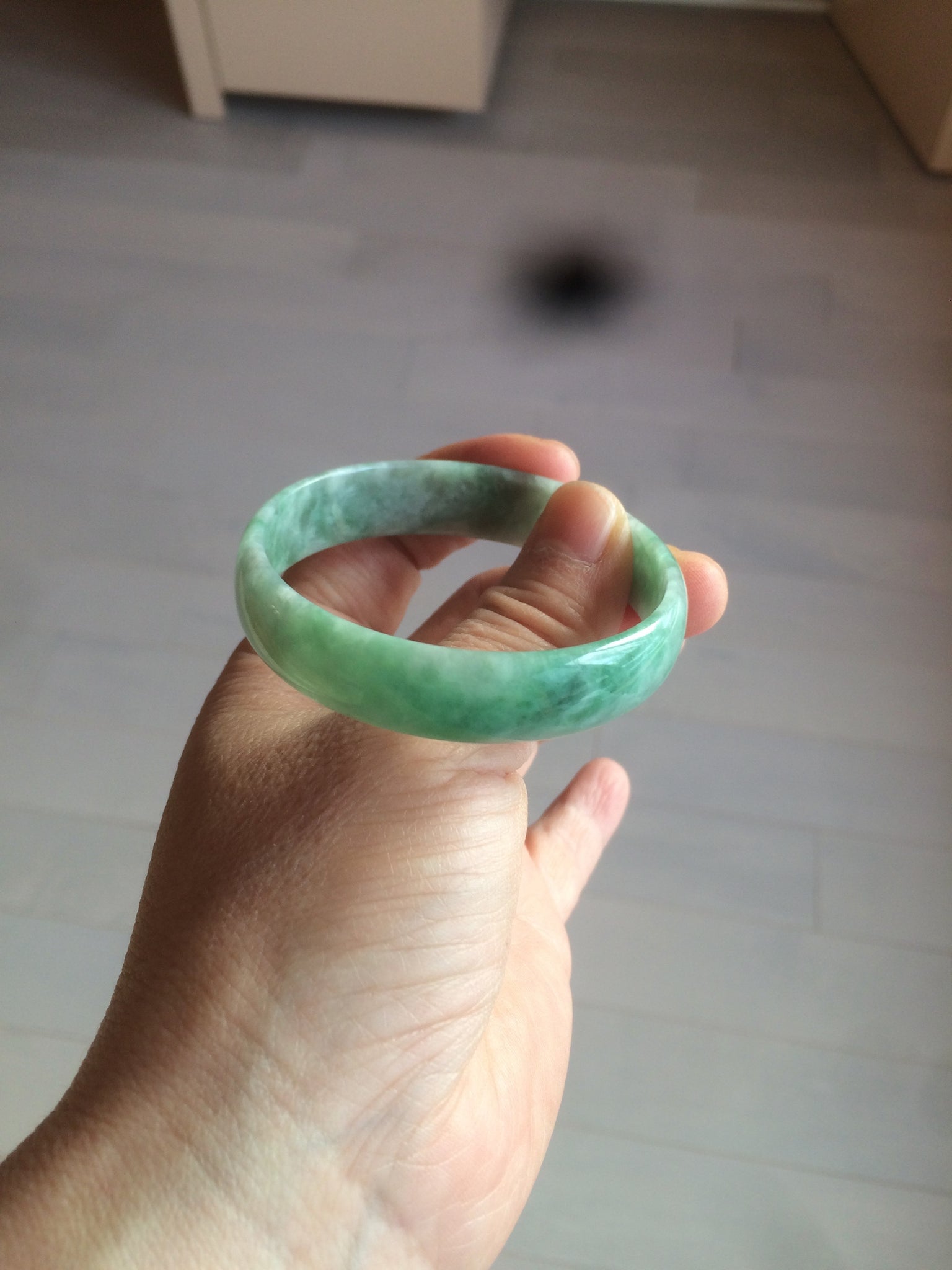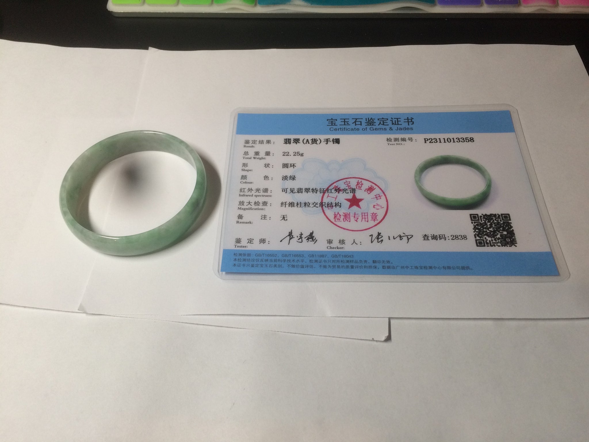 51.7mm certified 100% natural Type A sunny green/gray jadeite jade bangle BK6-3358