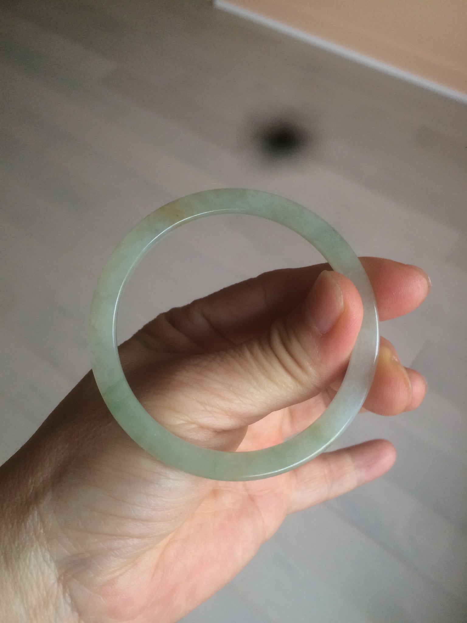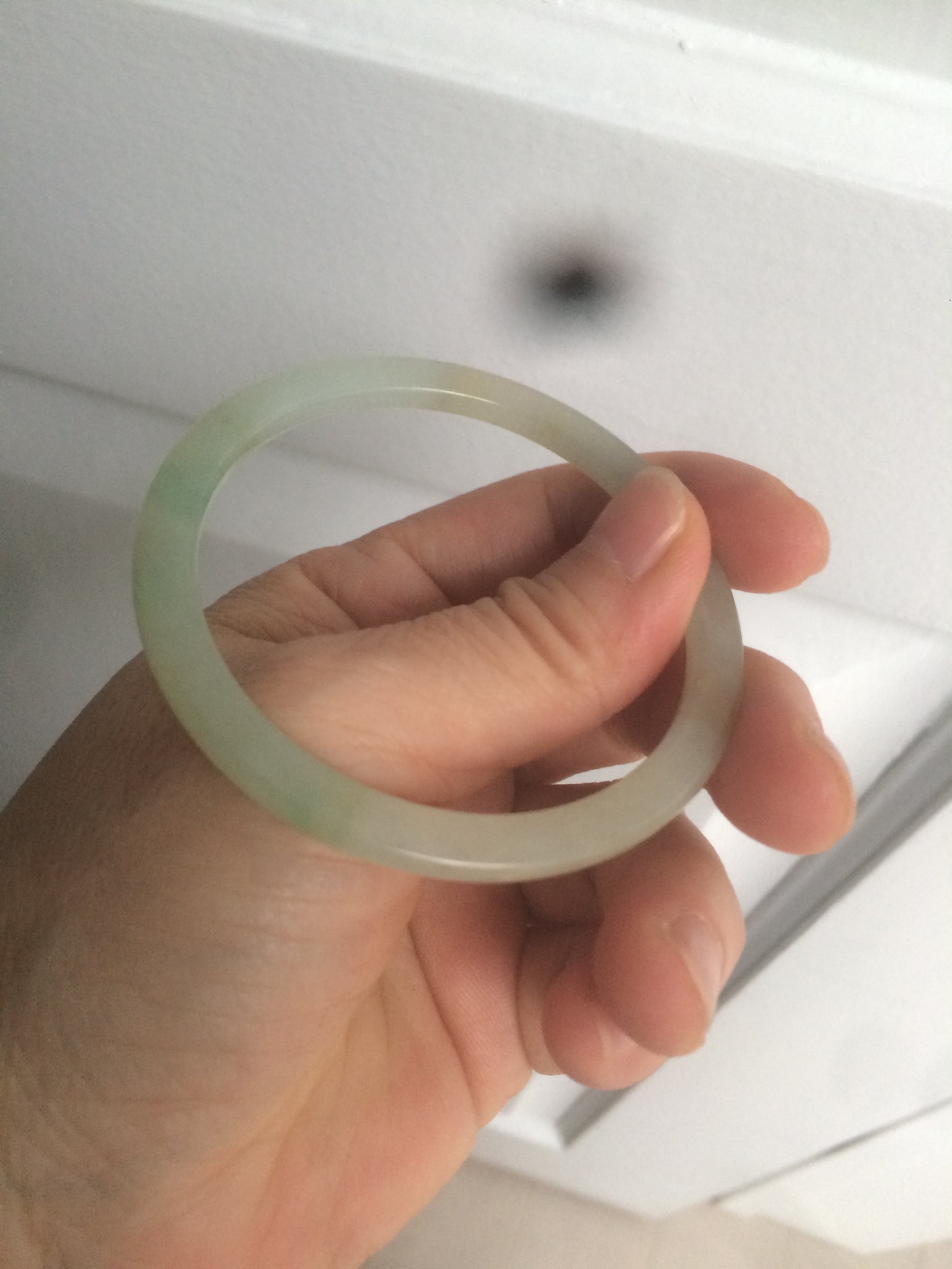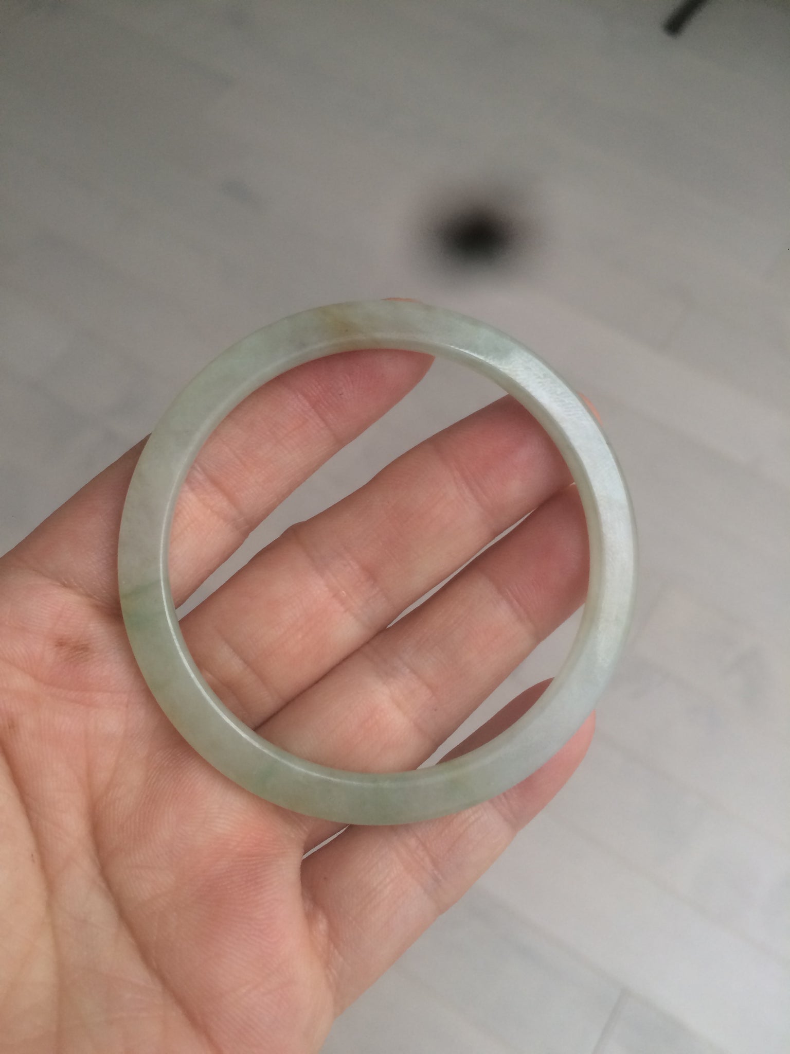 53.3/3.9/6.1mm icy watery. Thin flat style. Size down to 52mm since this kind of bangle is hard to put on.