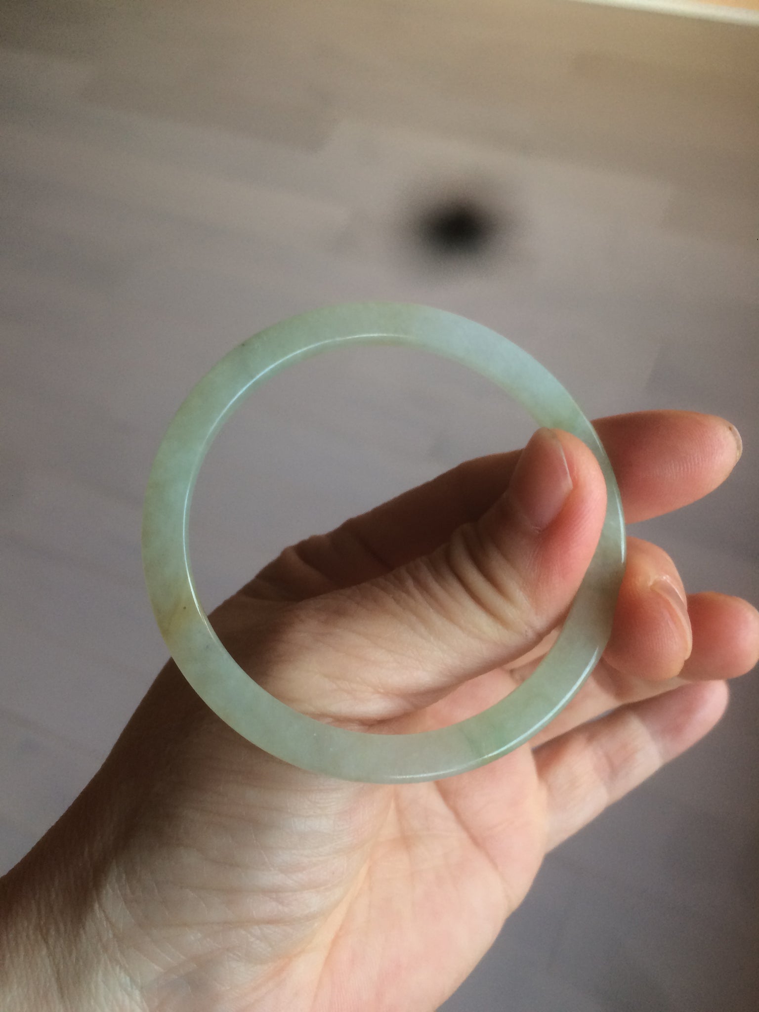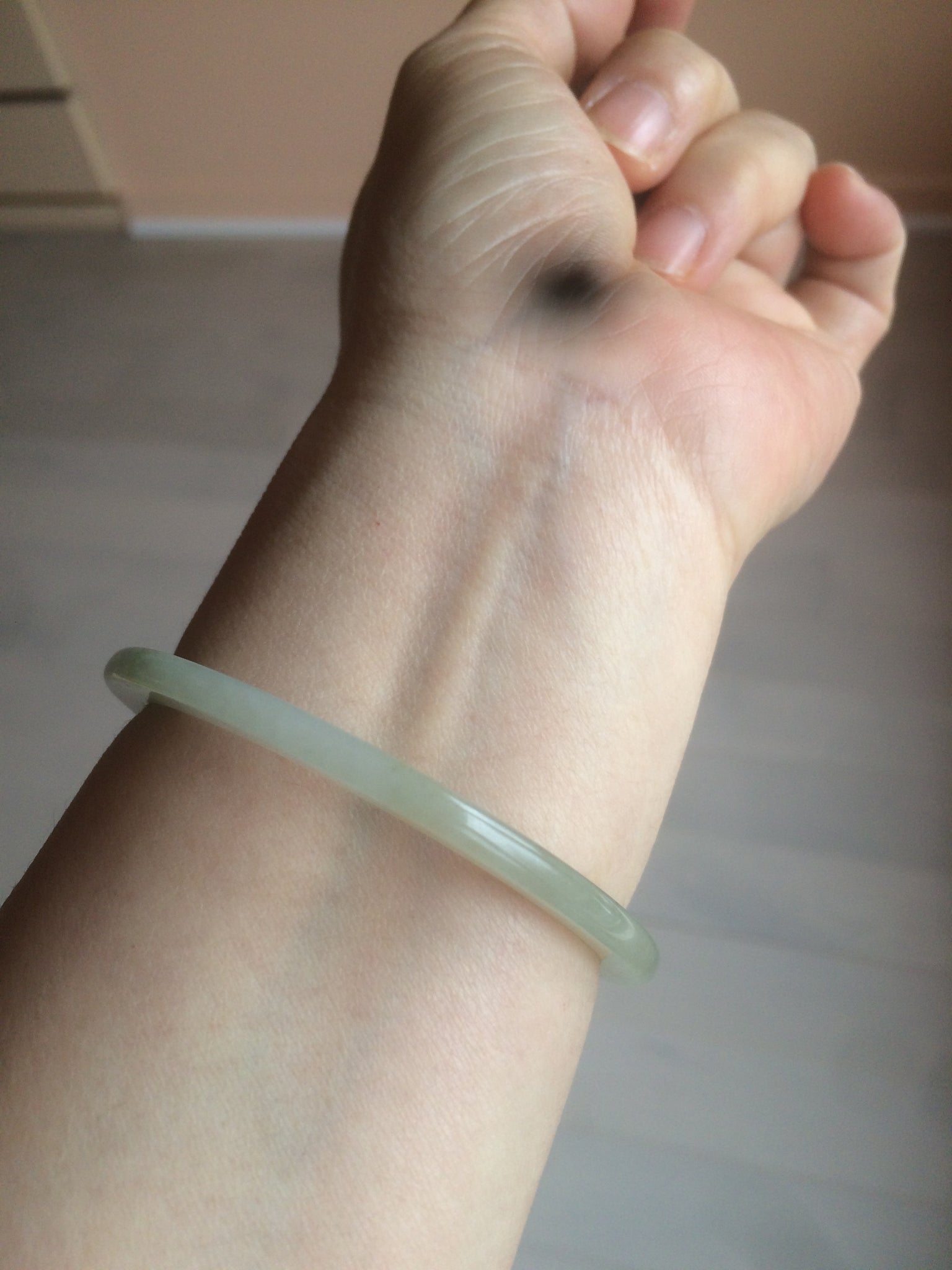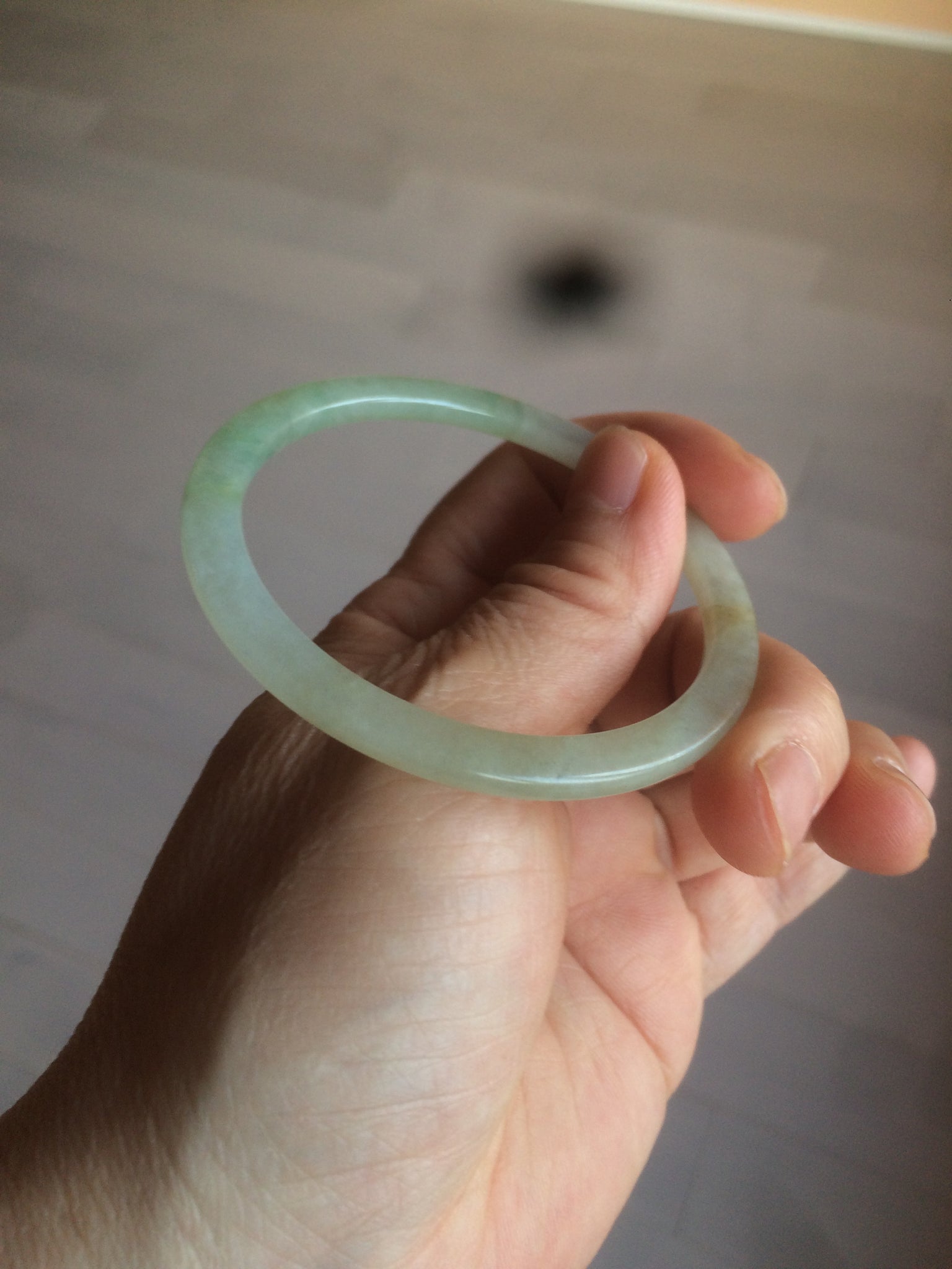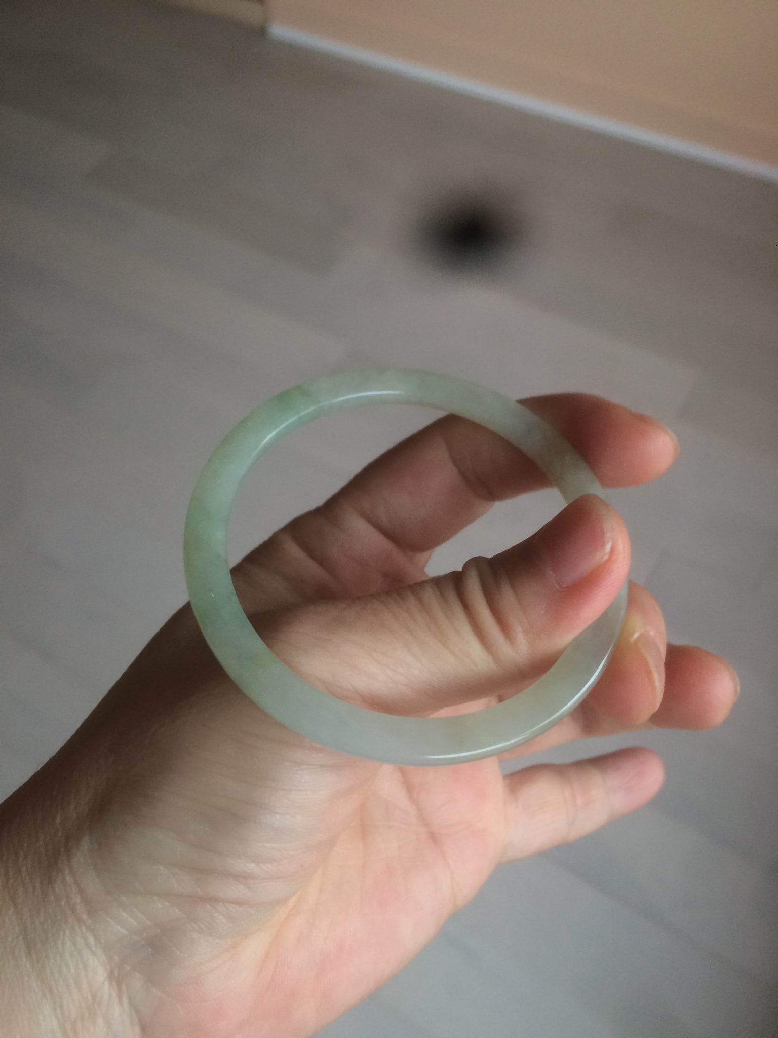 53.3/3.9/6.1mm icy watery. Thin flat style. Size down to 52mm since this kind of bangle is hard to put on.