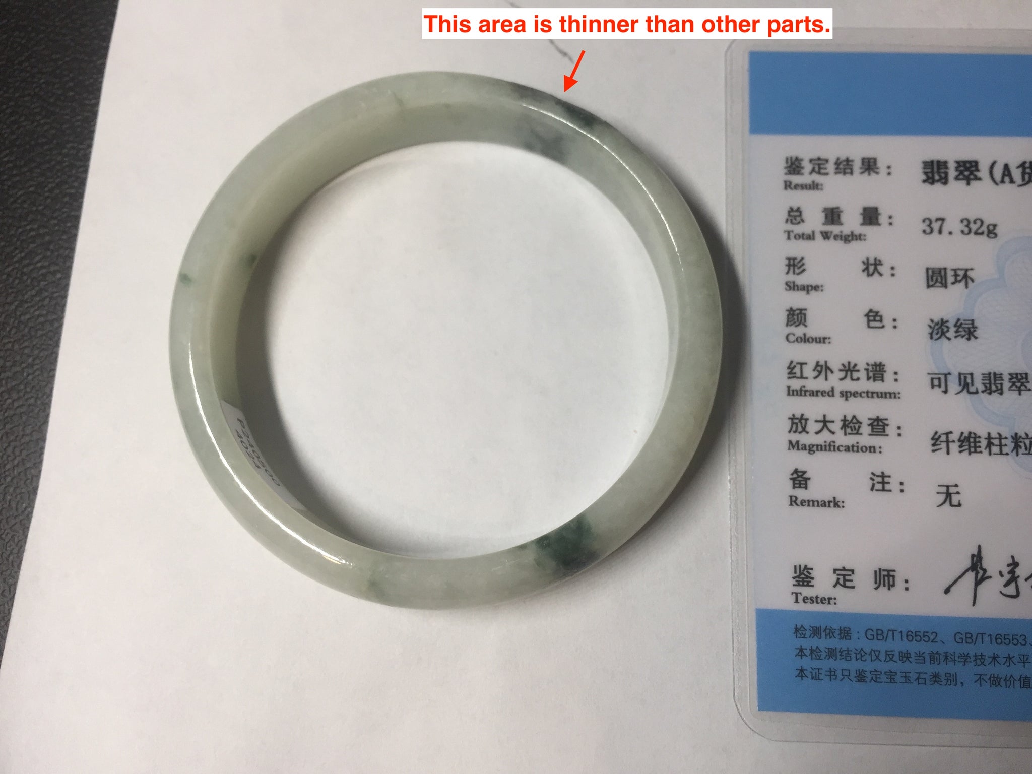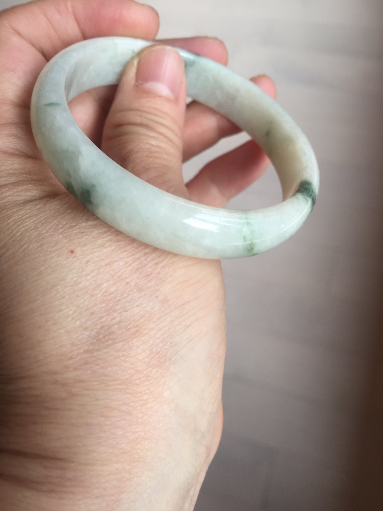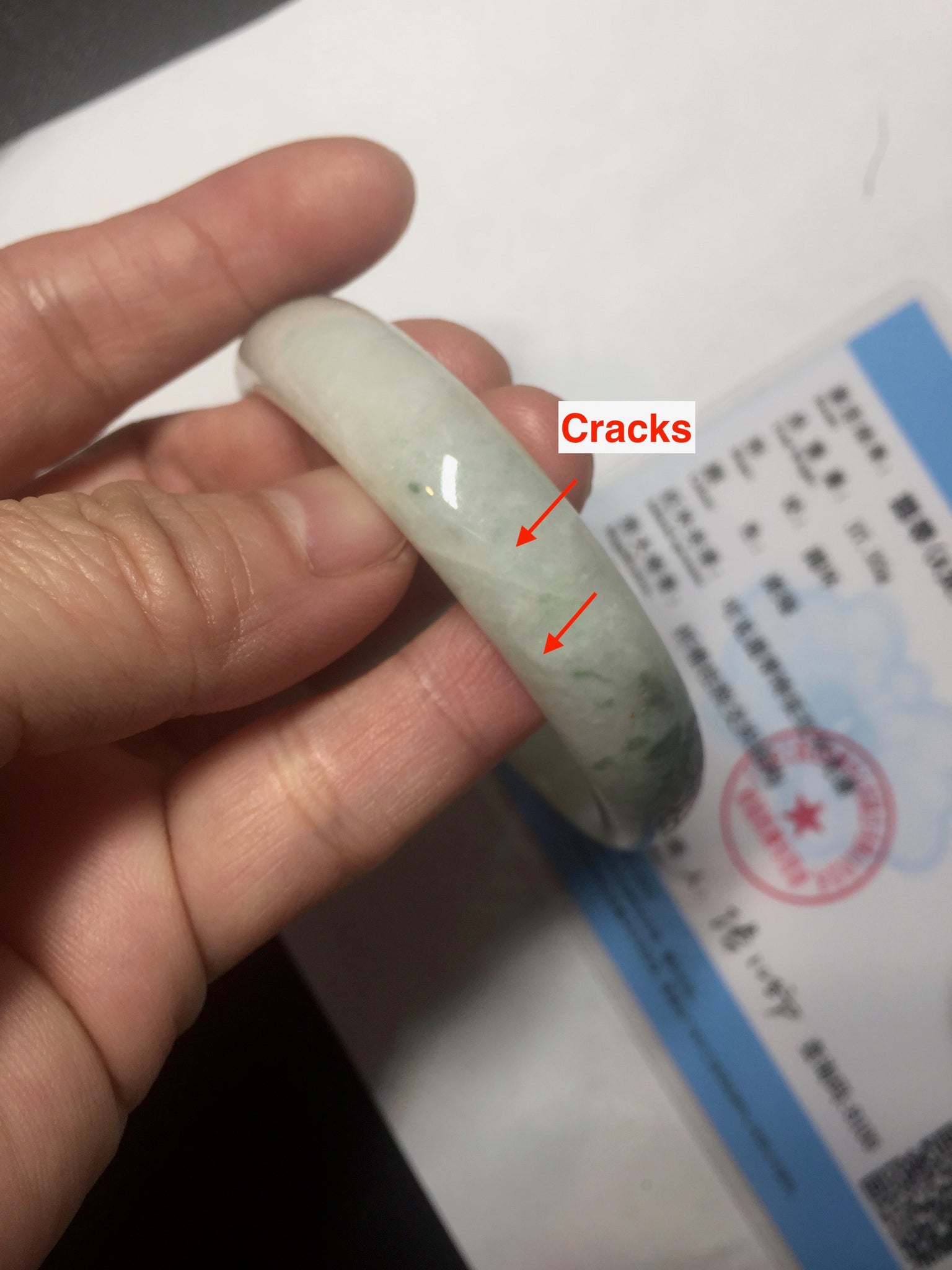 55.5mm Certified type A 100% Natural light green with green flying flowers Jadeite bangle D131-4024