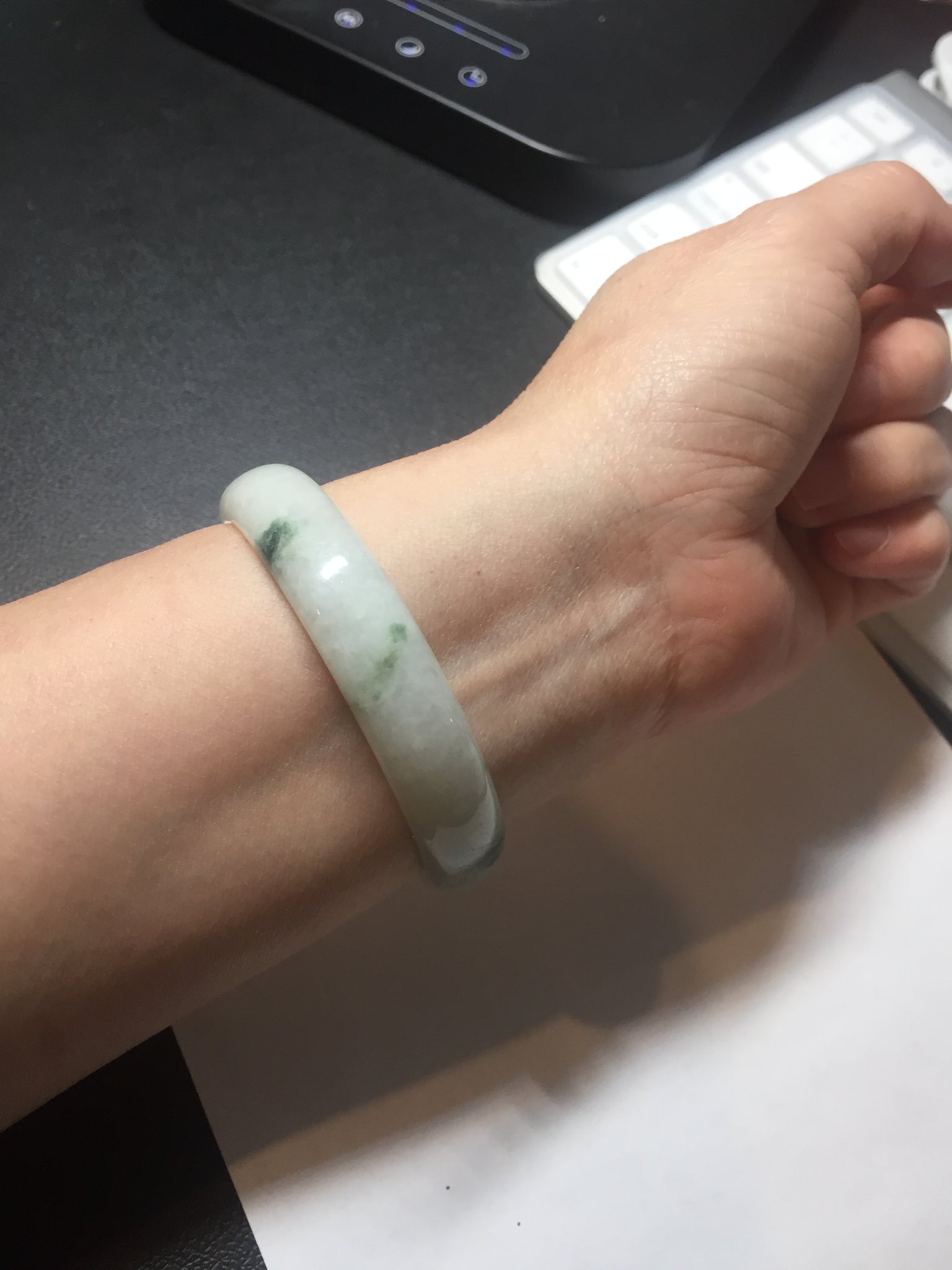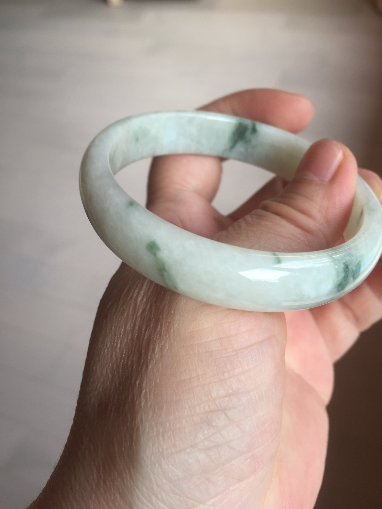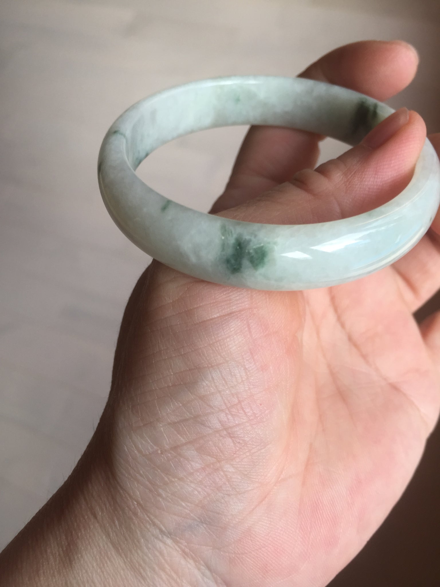 55.5mm Certified type A 100% Natural light green with green flying flowers Jadeite bangle D131-4024